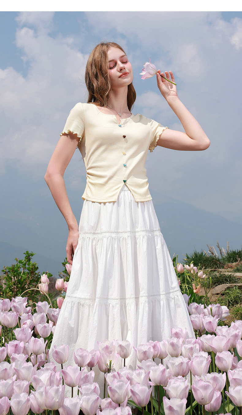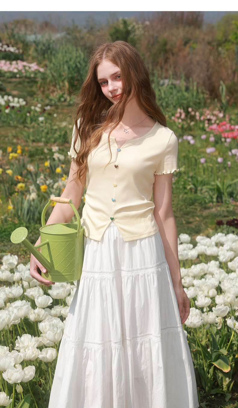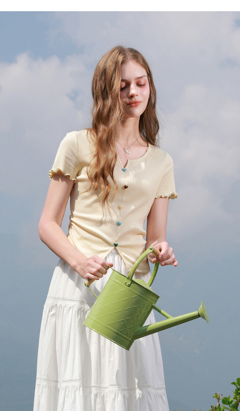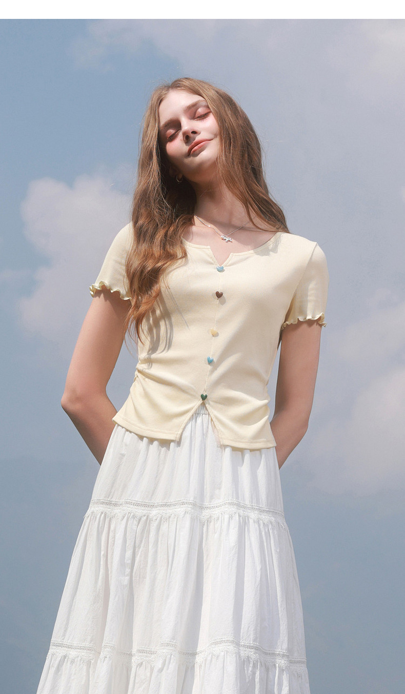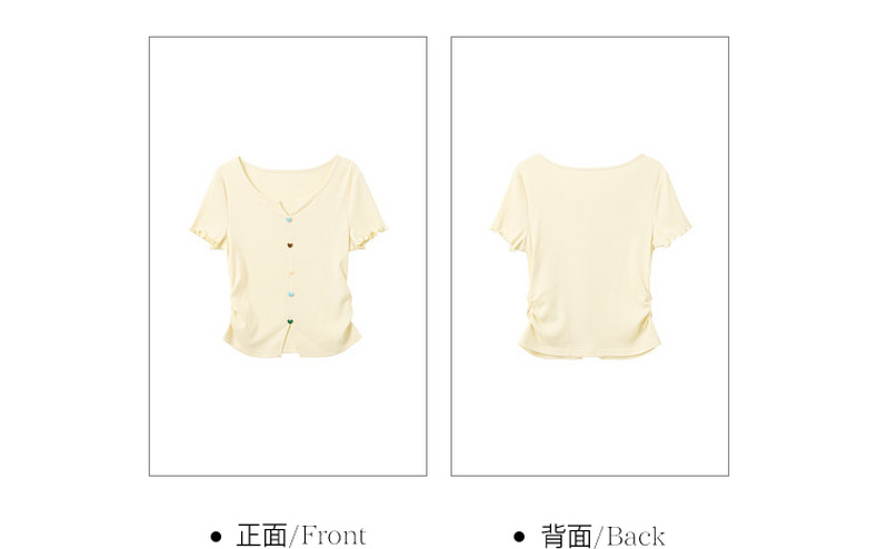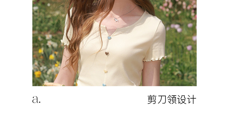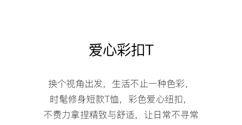 三彩2026夏季新款爱心扣剪刀领T恤短袖修身短款上衣套头显瘦M