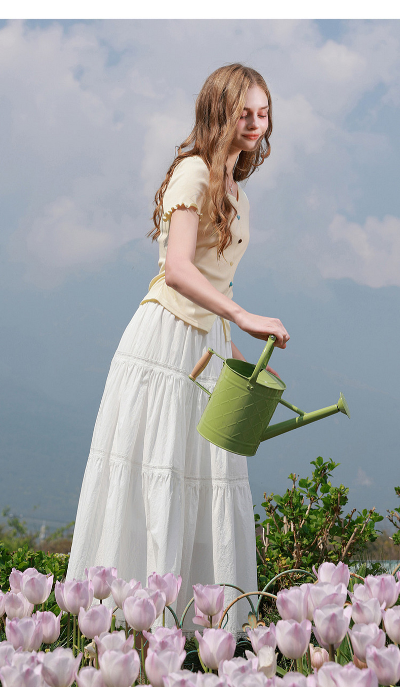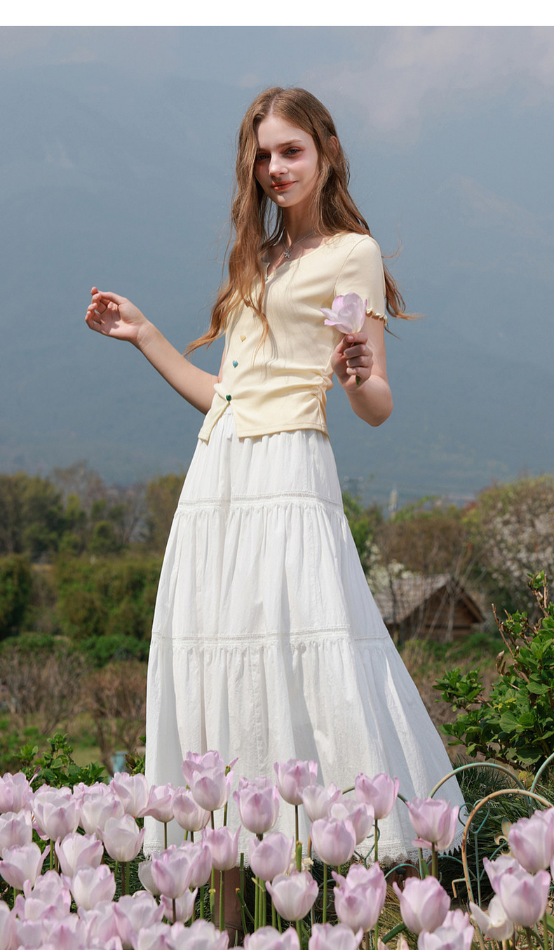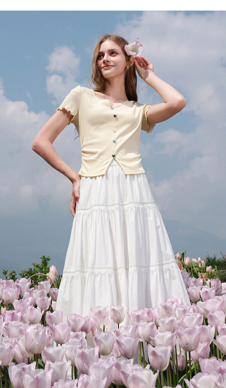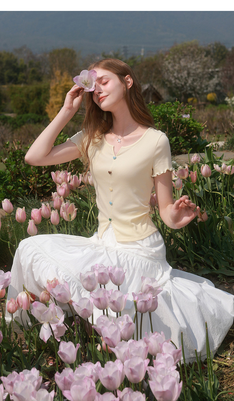 三彩2026夏季新款爱心扣剪刀领T恤短袖修身短款上衣套头显瘦M