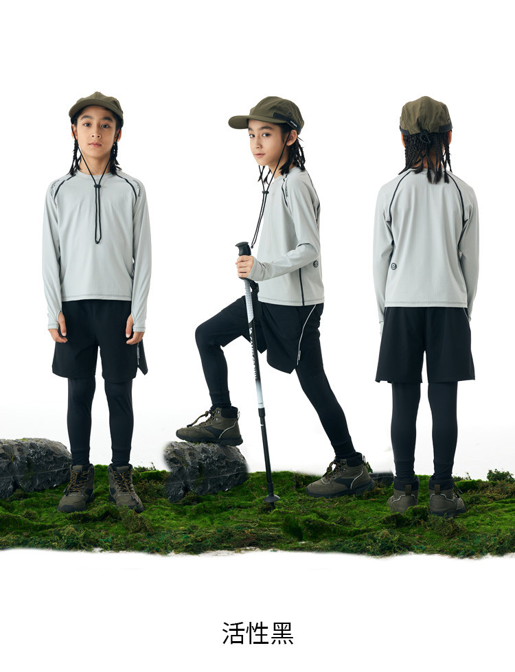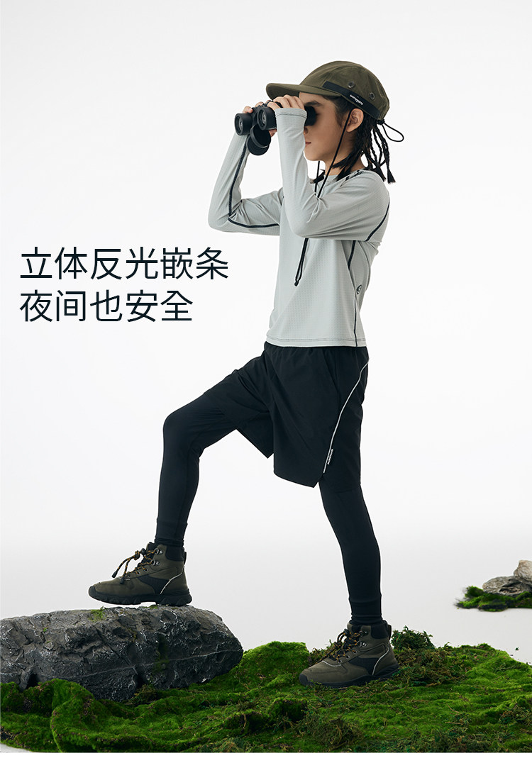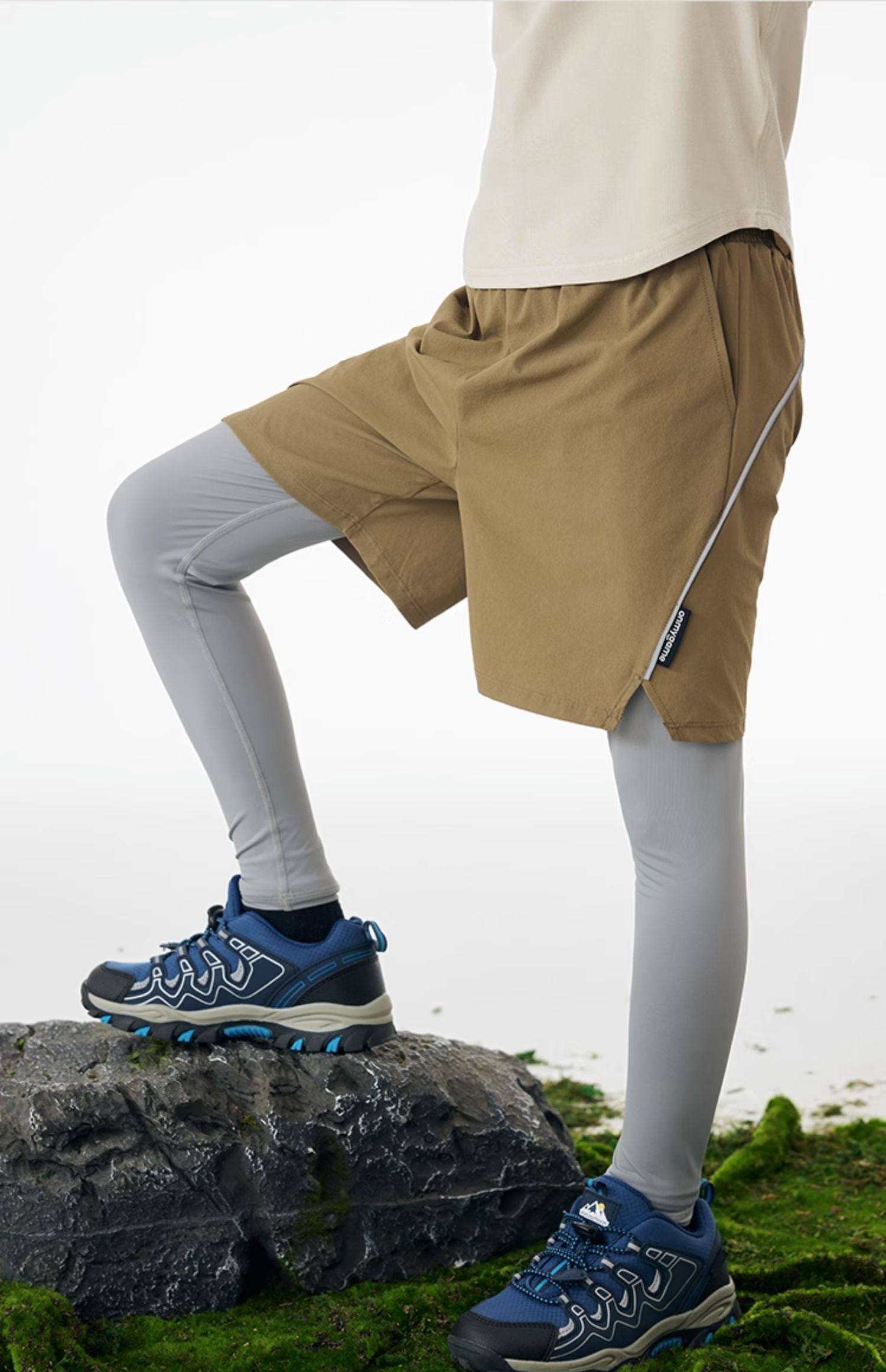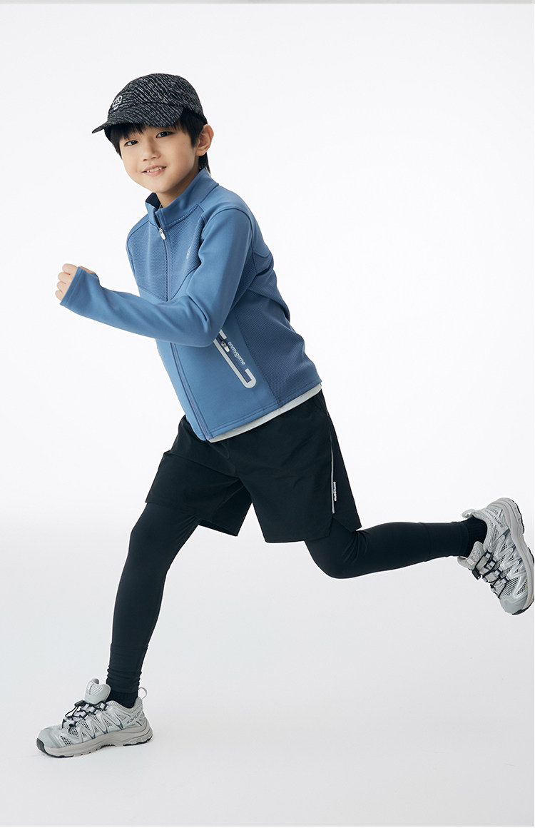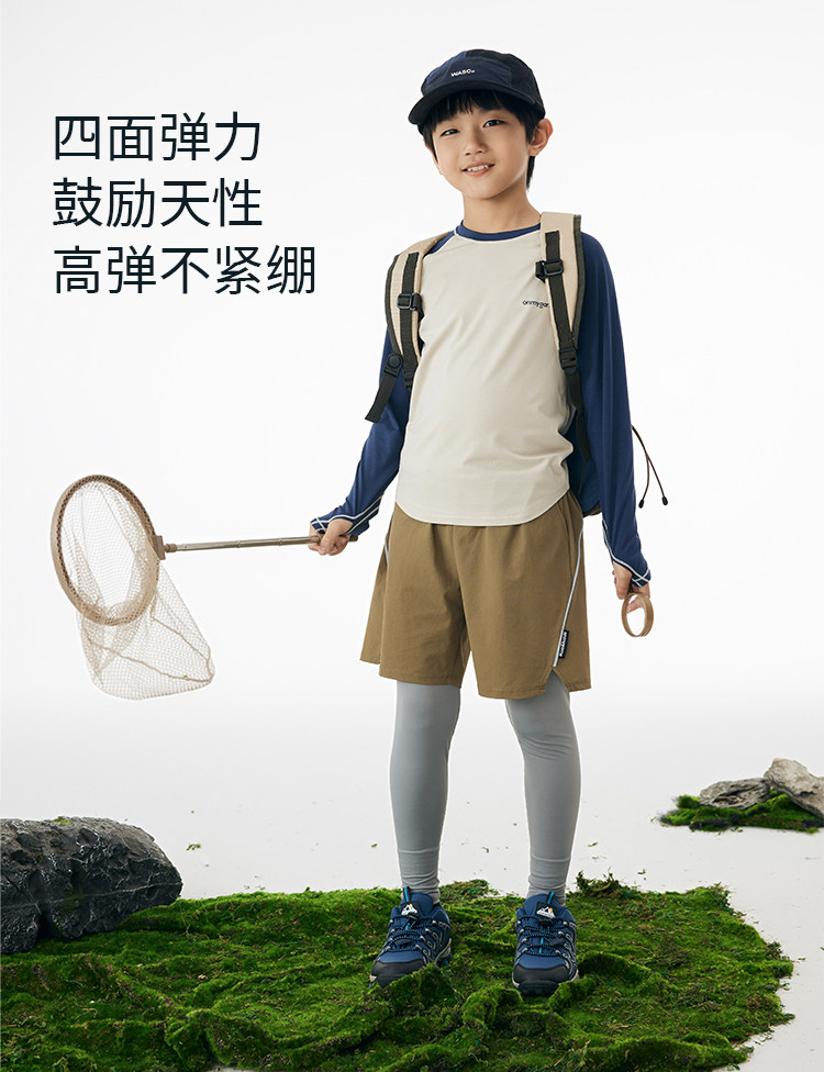 onmygame男童假两件运动裤春装儿童高弹力户外体能训练透气长裤