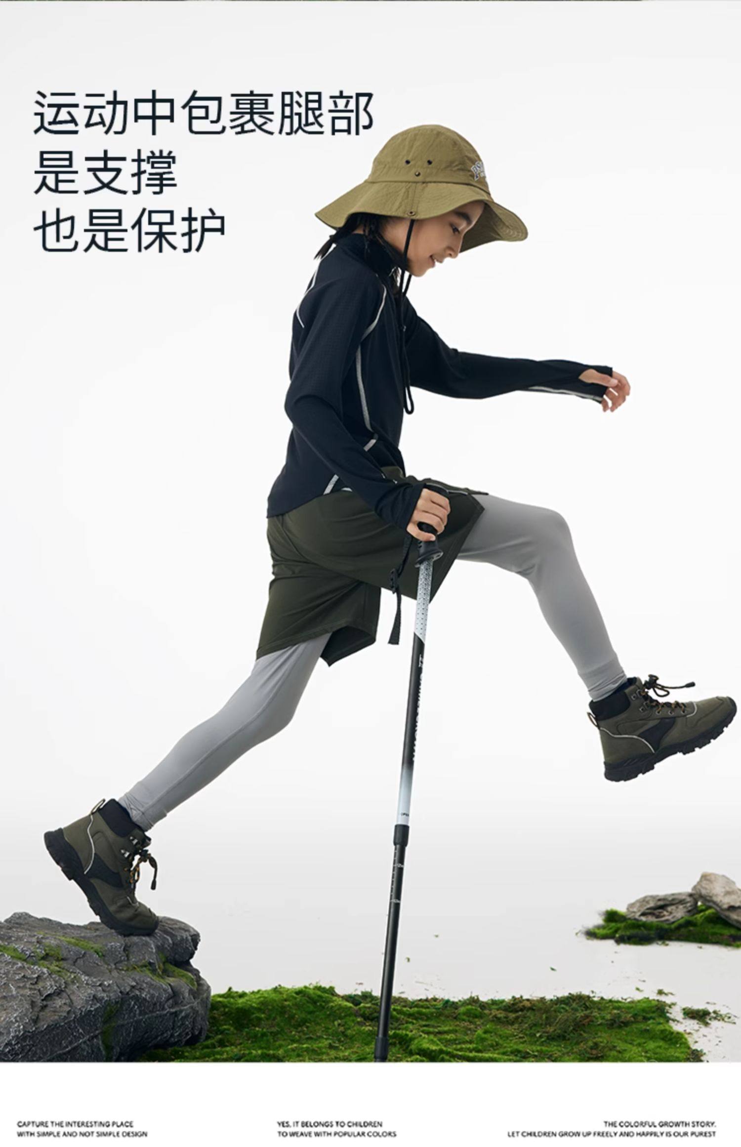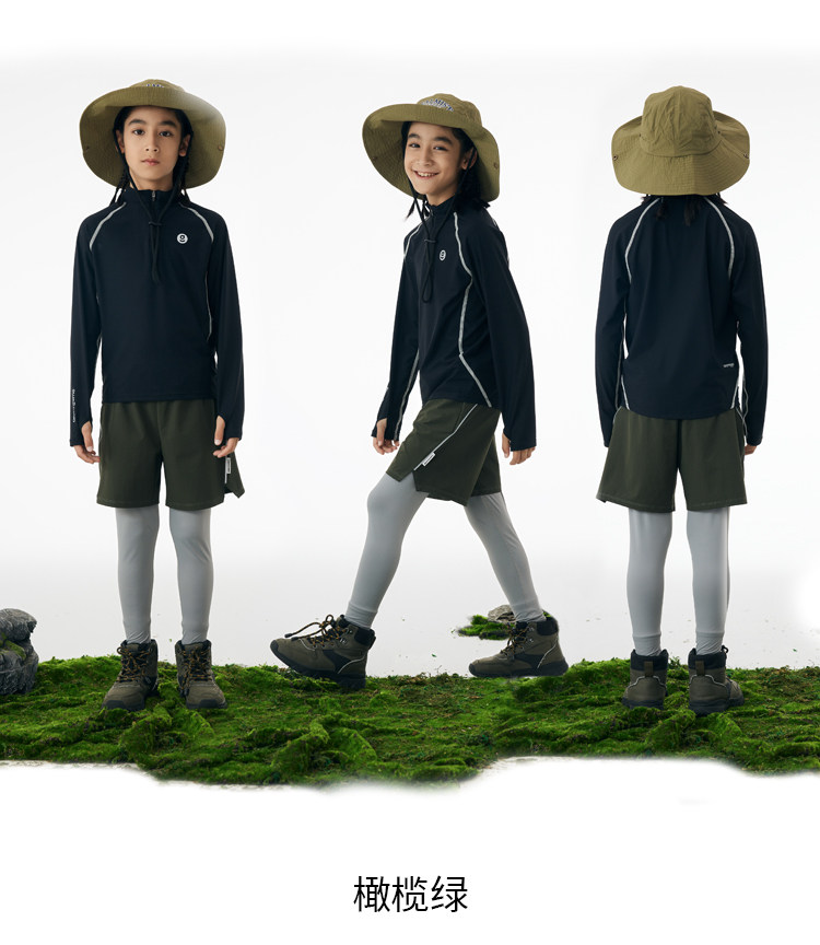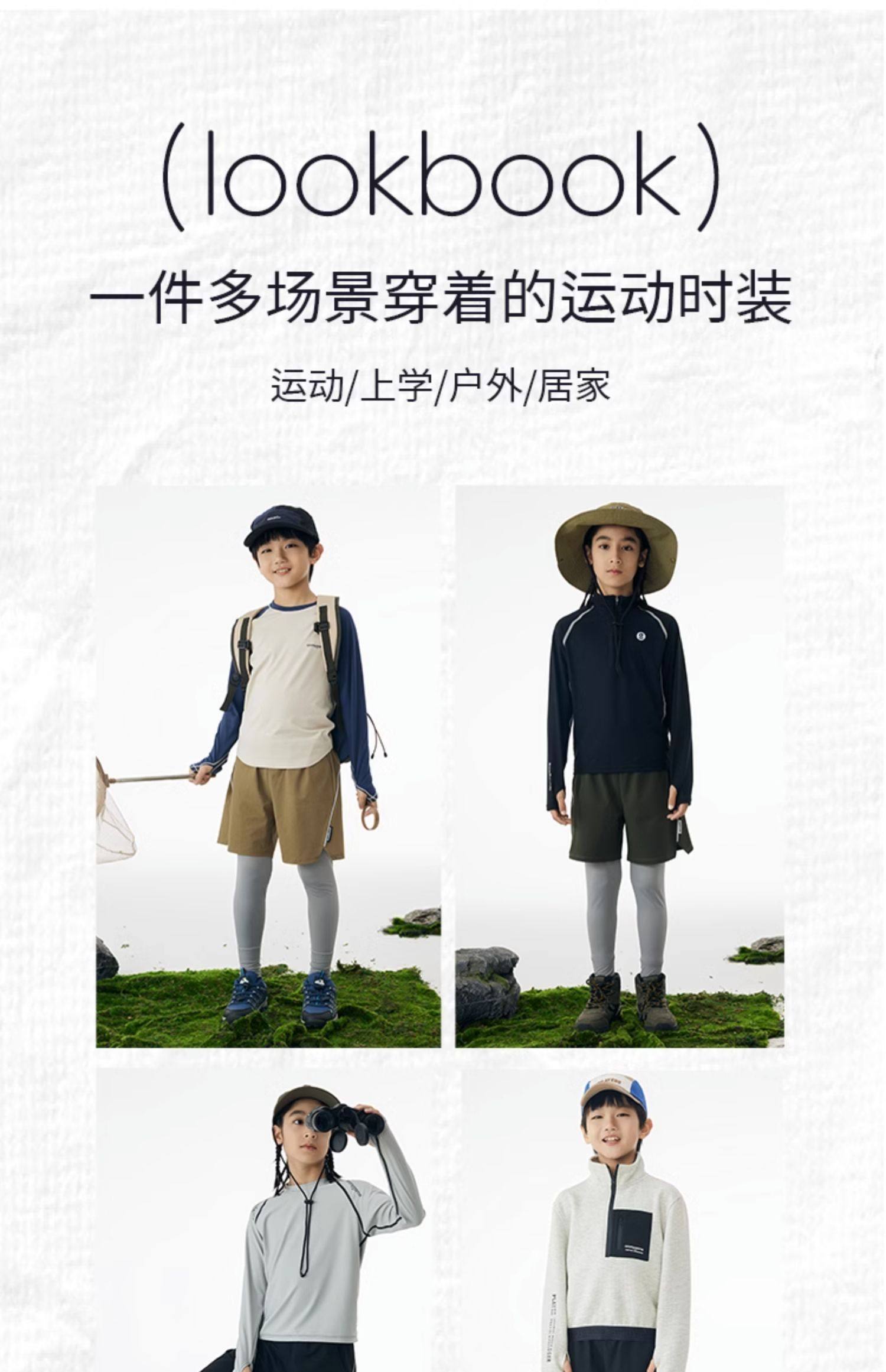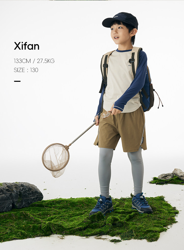 onmygame男童假两件运动裤春装儿童高弹力户外体能训练透气长裤