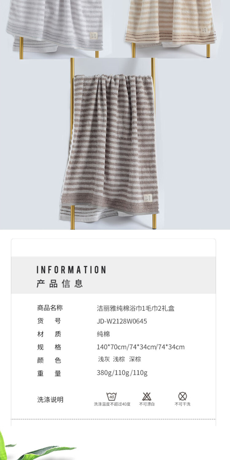 洁丽雅(Grace) 新疆棉抗菌毛浴巾三件套装W0846/W0640