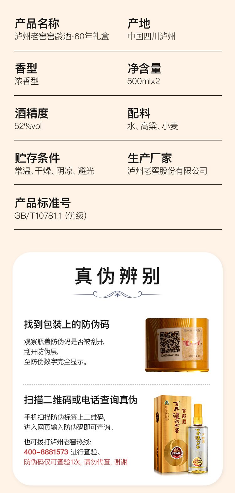 泸州老窖 窖龄60年 浓香型白酒 52度500ml 礼盒装