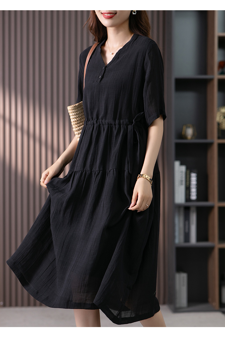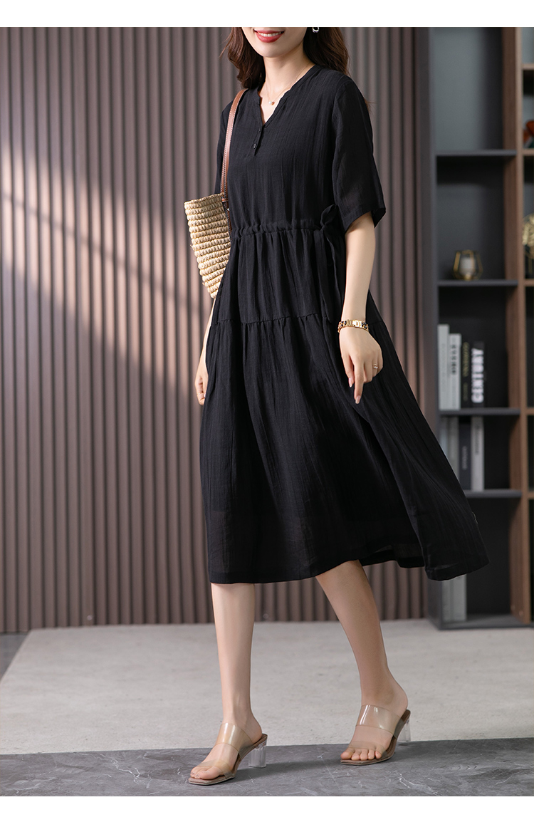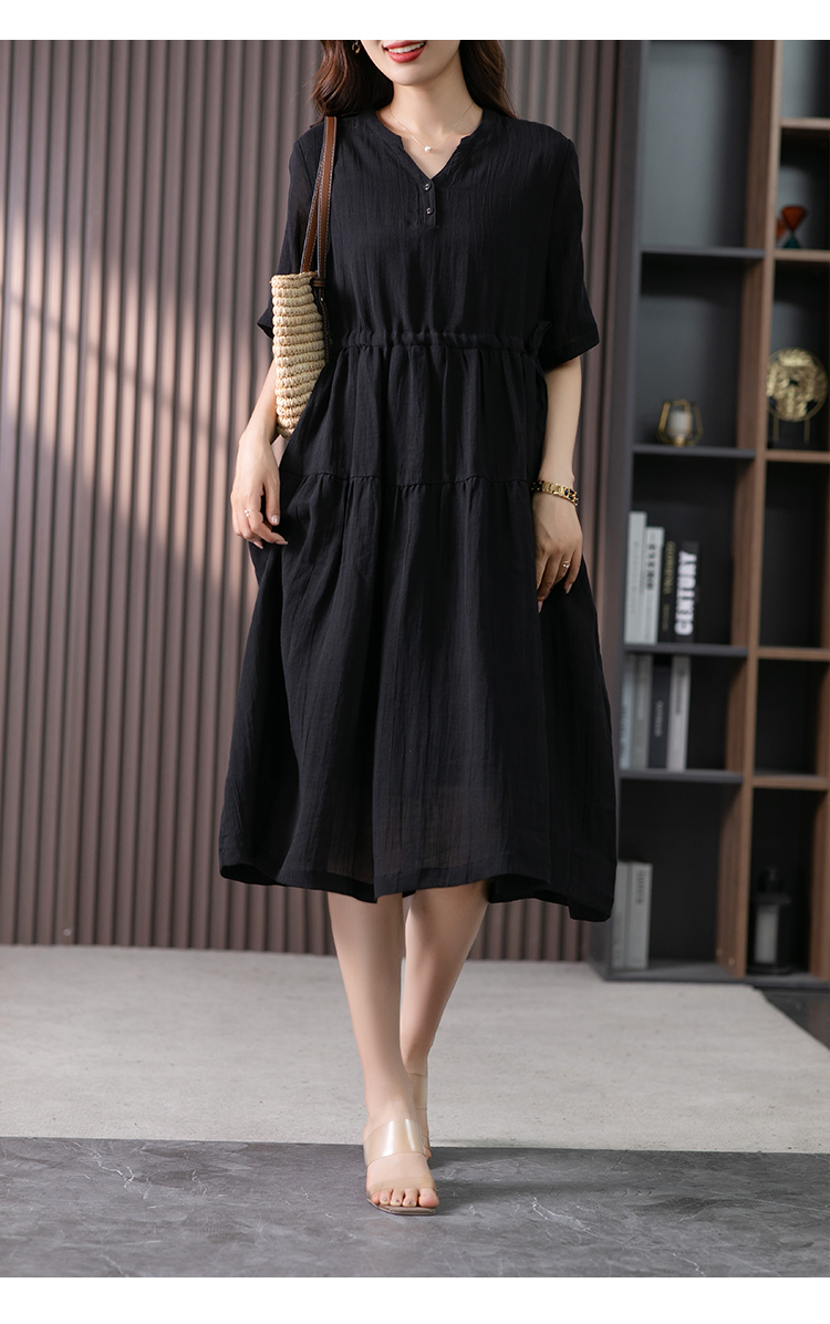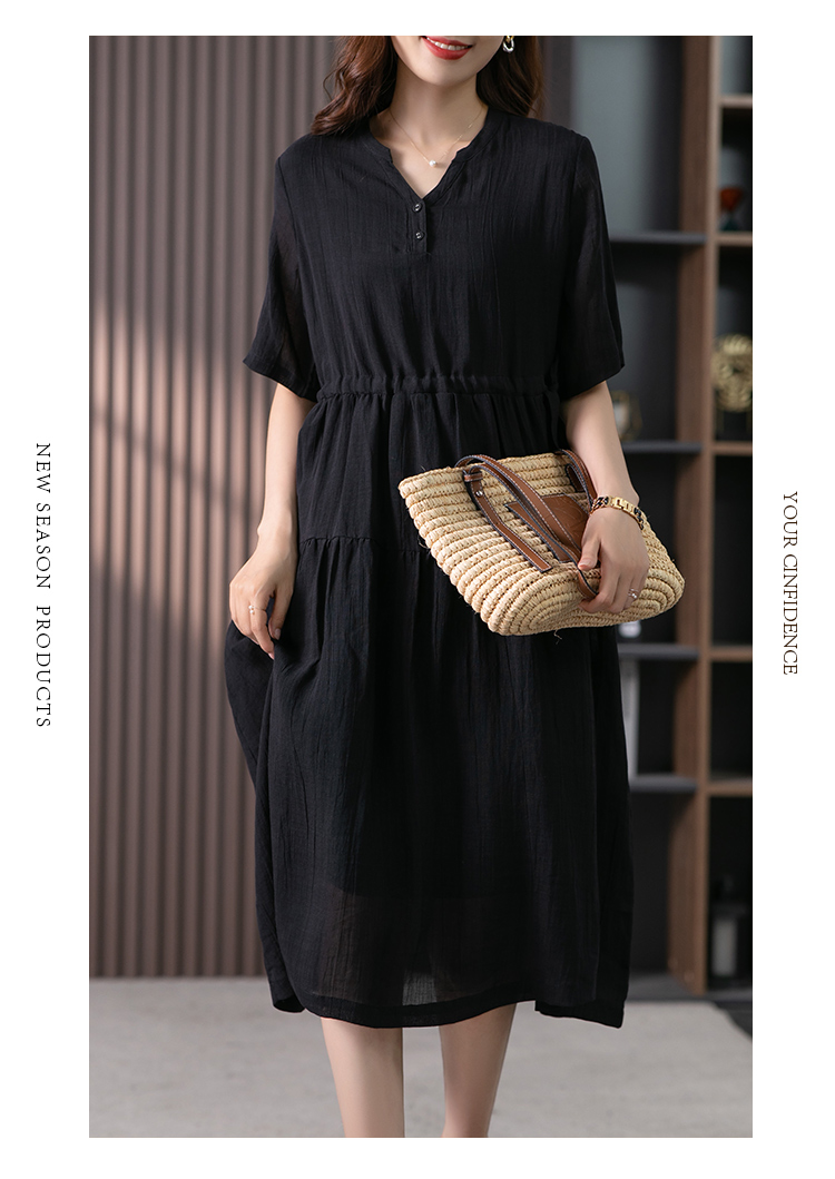 85856原形设计感苎麻V领连衣裙女夏2024新款韩版宽松高腰长裙子高级感