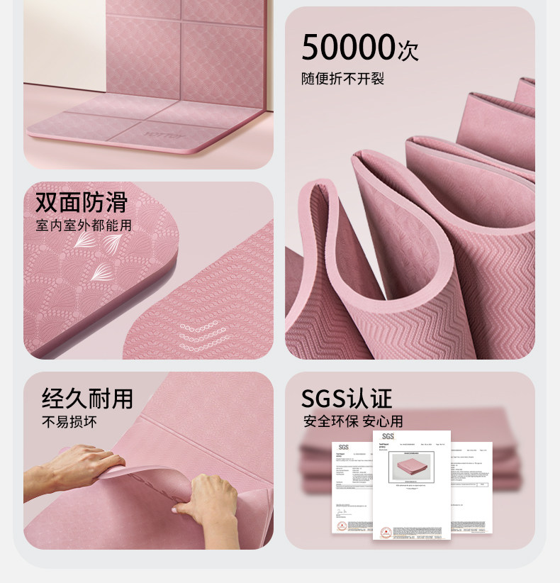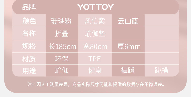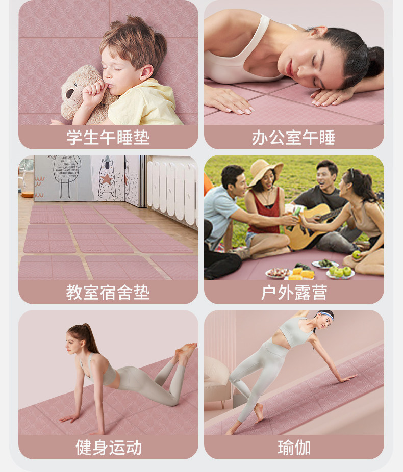 YOTTOY可折叠瑜伽垫便携式加宽防滑午睡午休地垫健身家用儿童舞蹈加厚垫