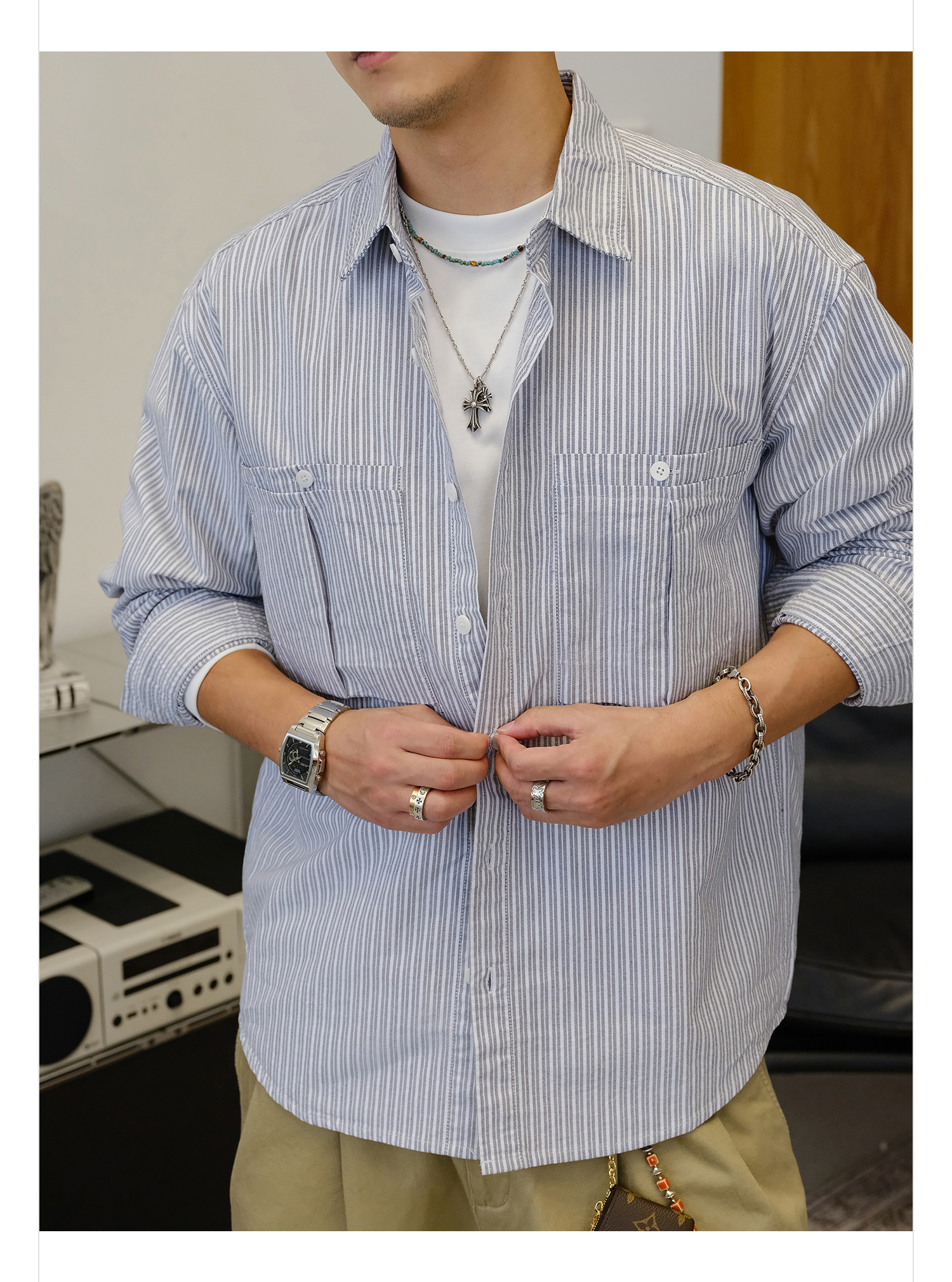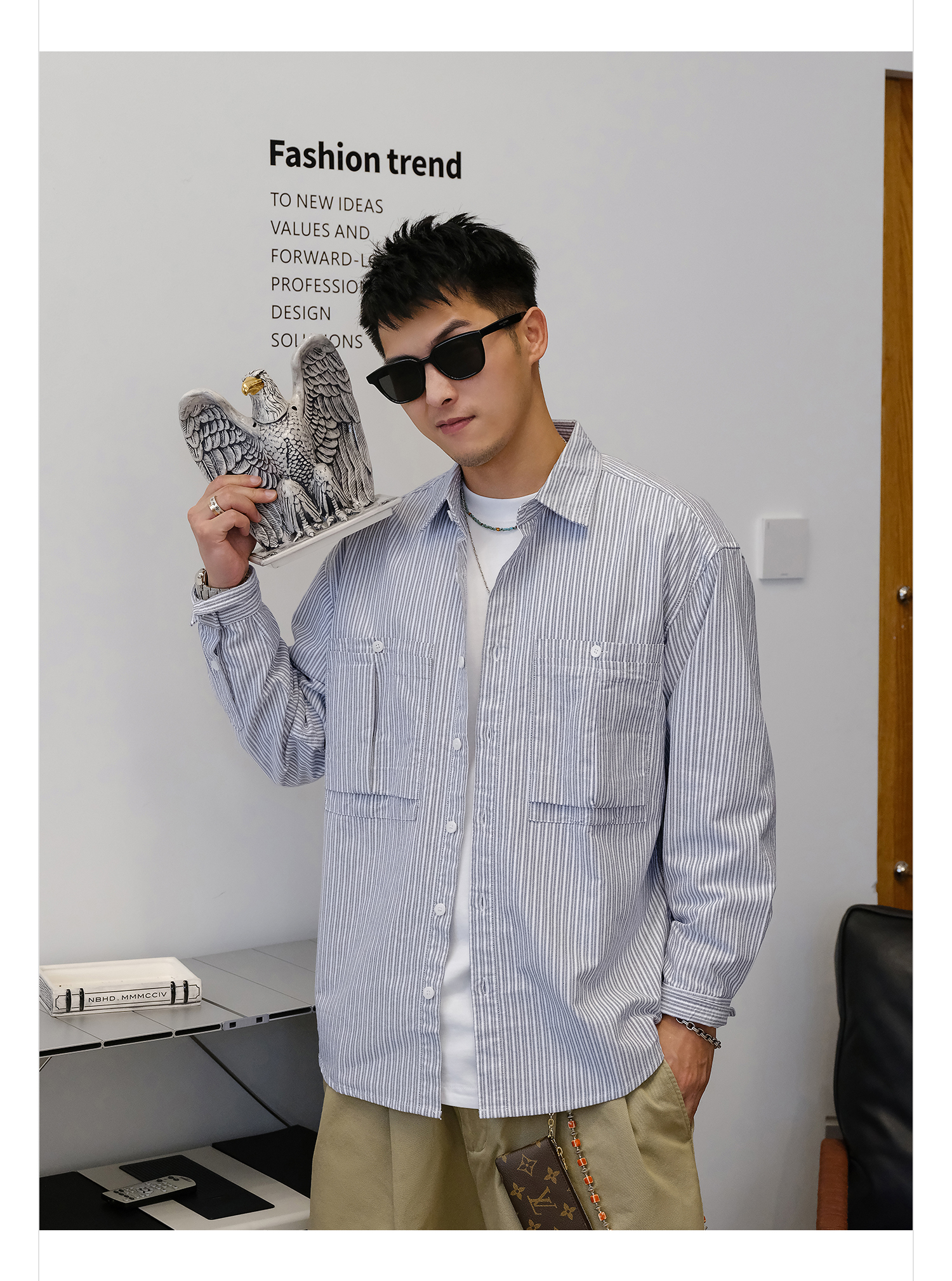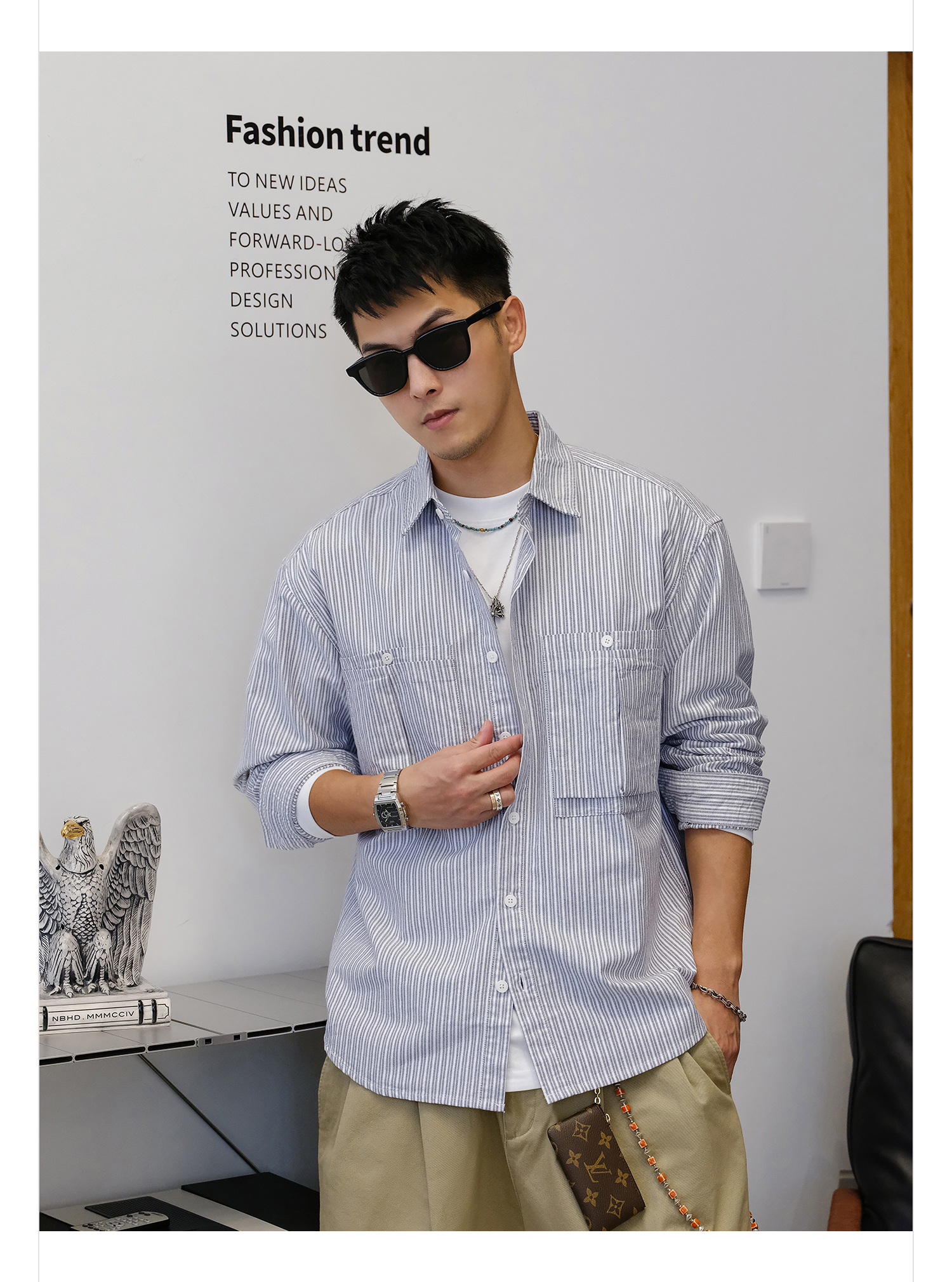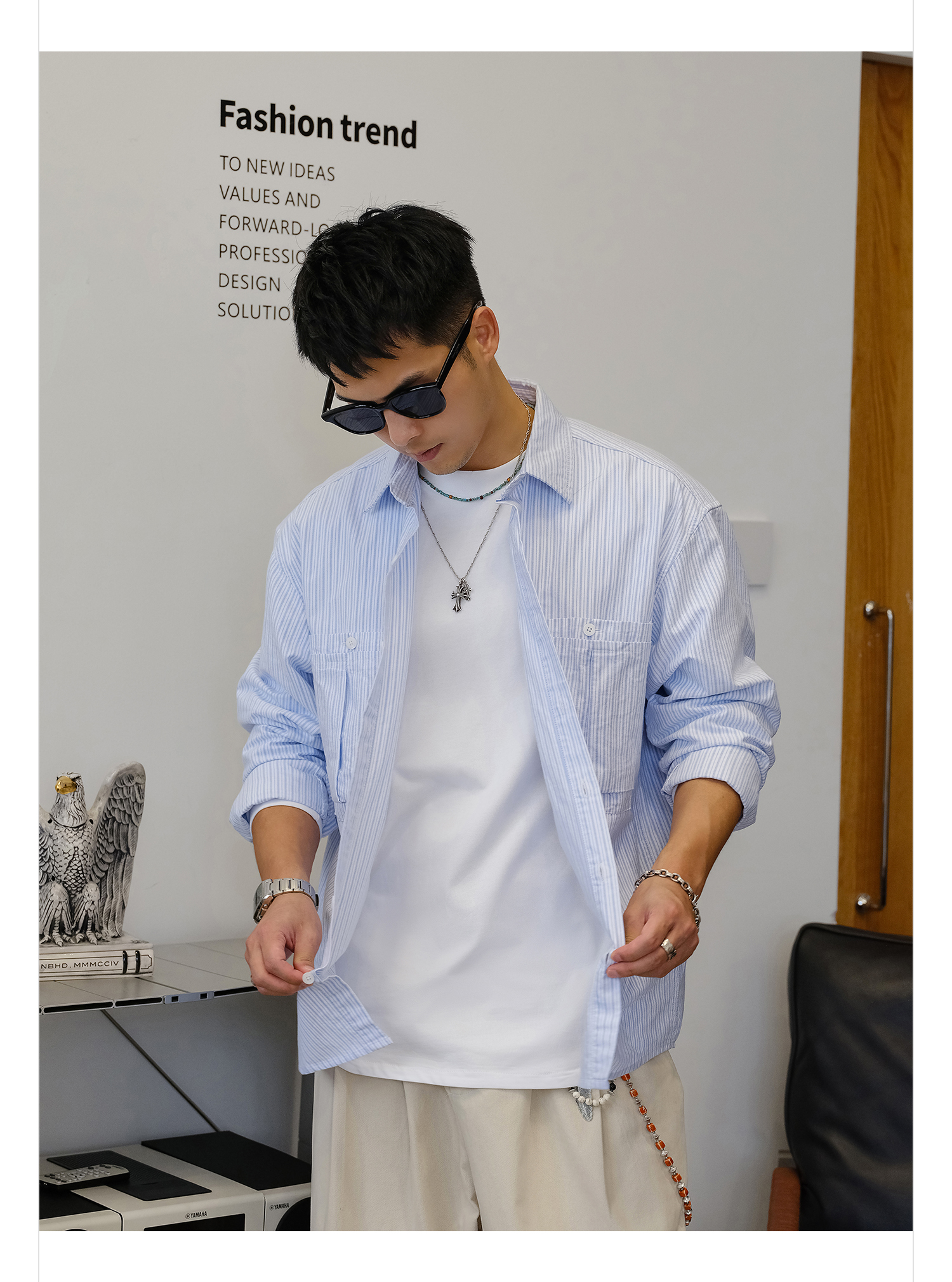 徐太浪170g竖条纹长袖衬衫男高级感痞帅2025新款秋季大码纯棉衬衣