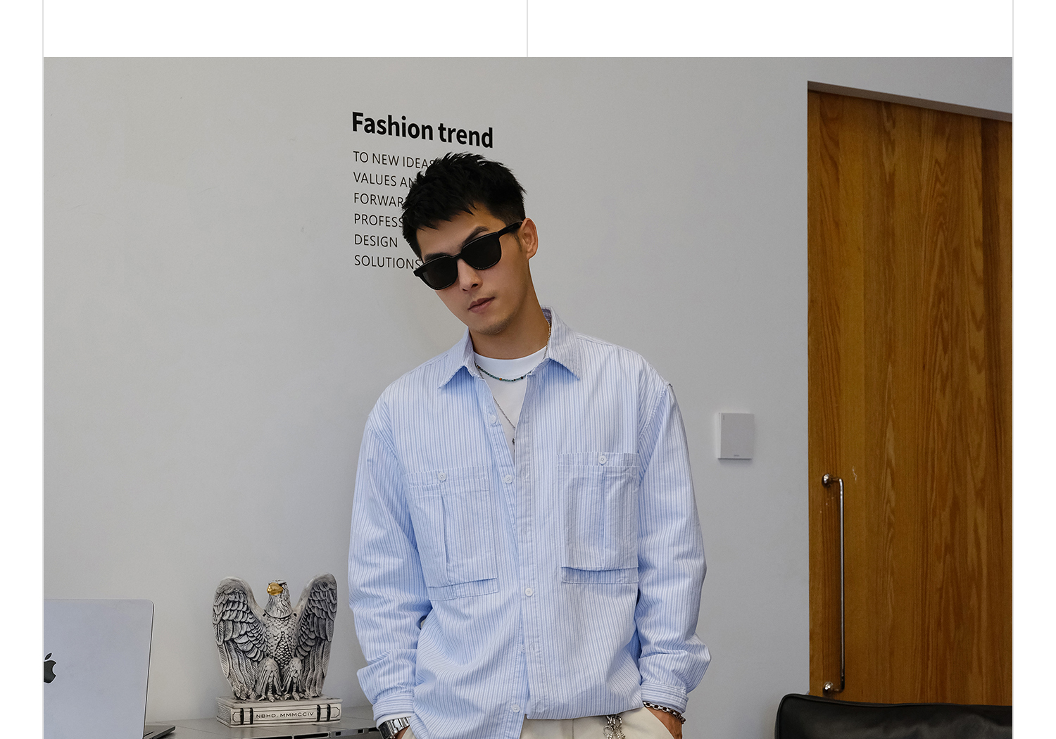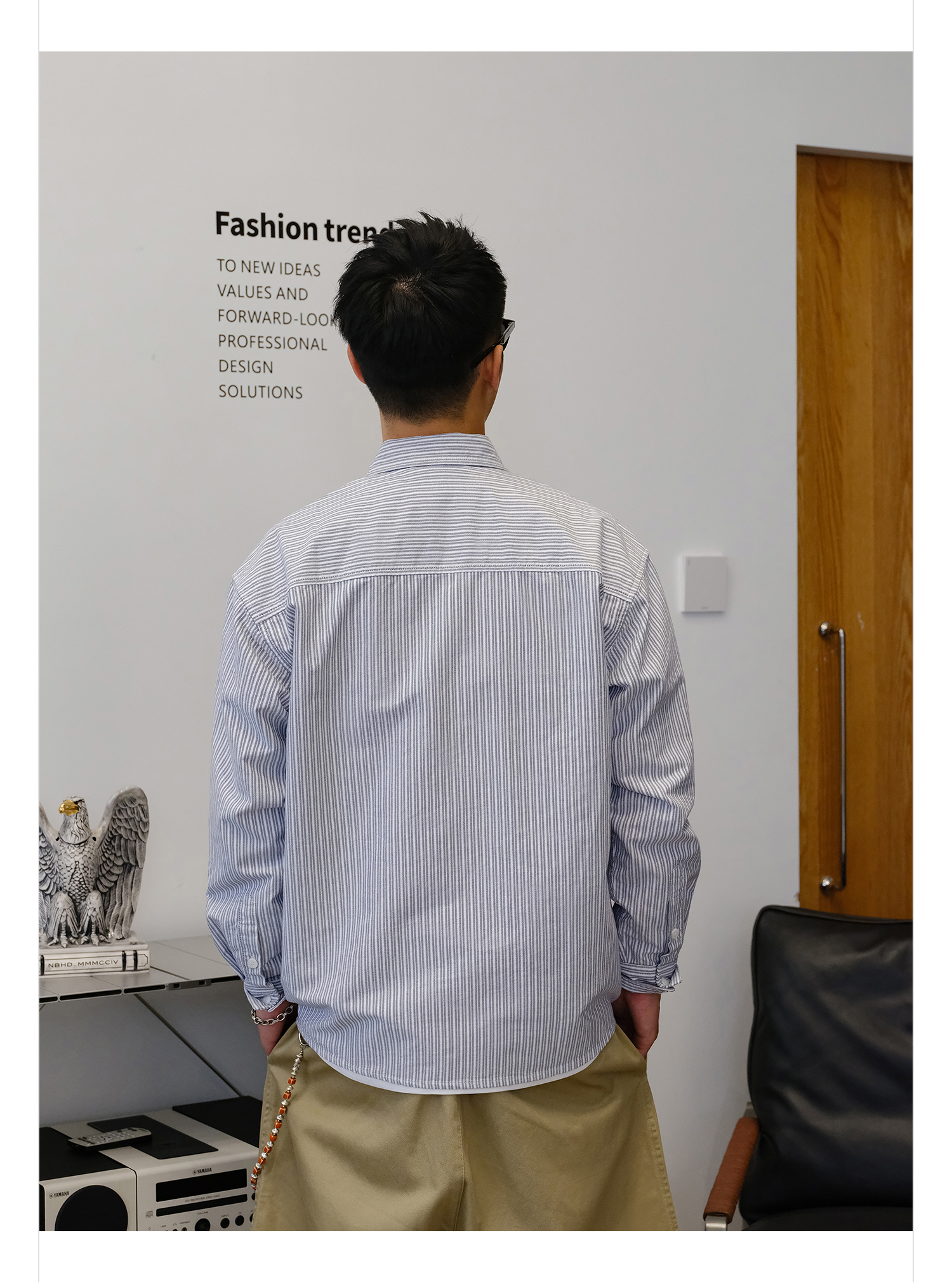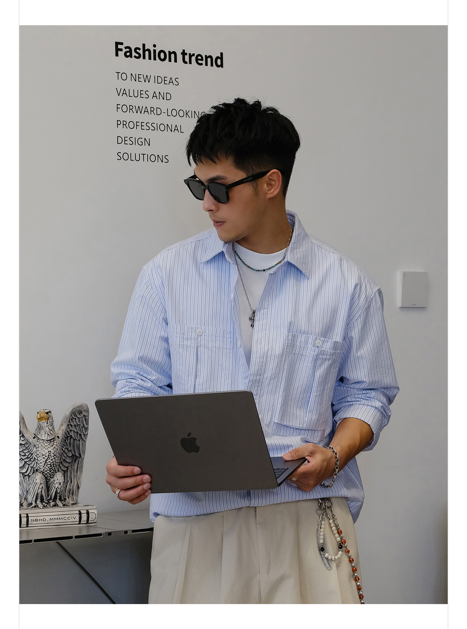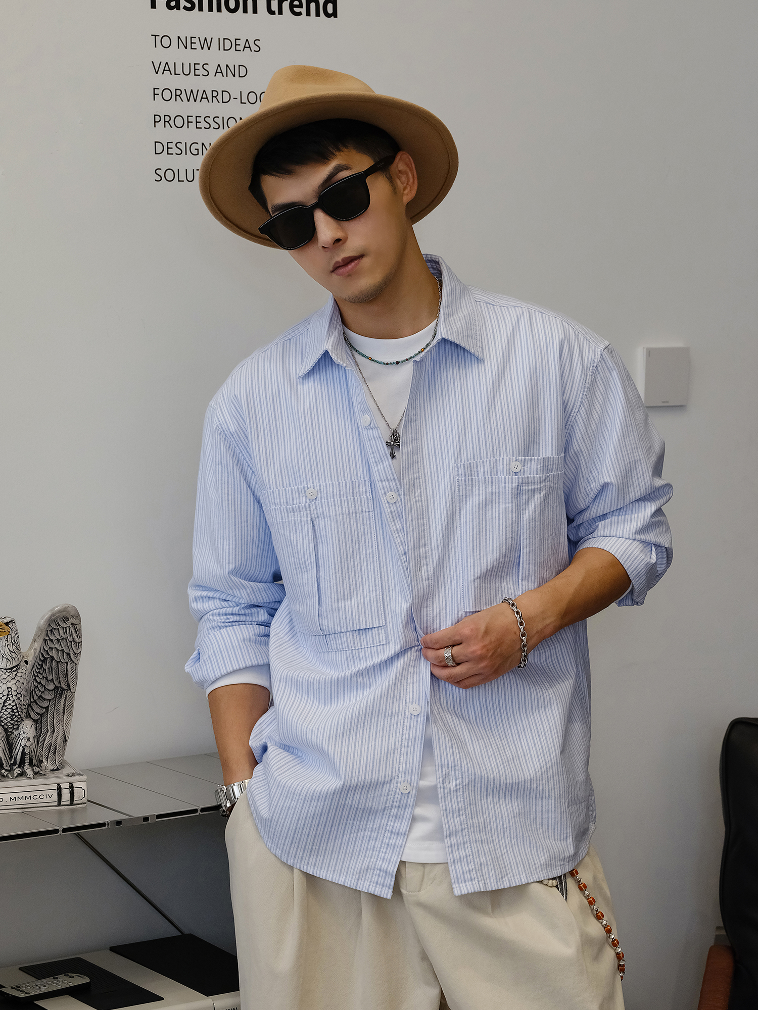 徐太浪170g竖条纹长袖衬衫男高级感痞帅2025新款秋季大码纯棉衬衣