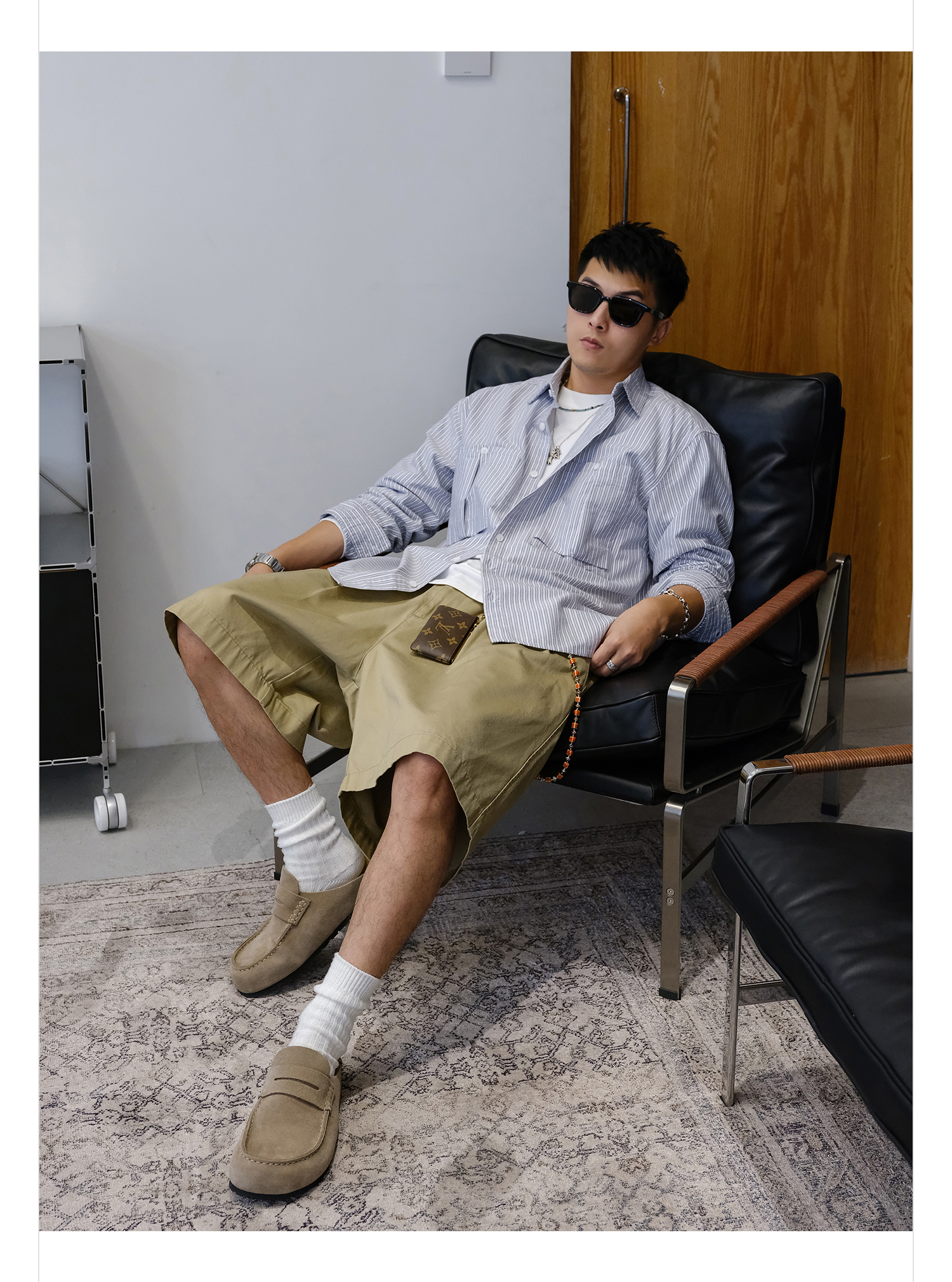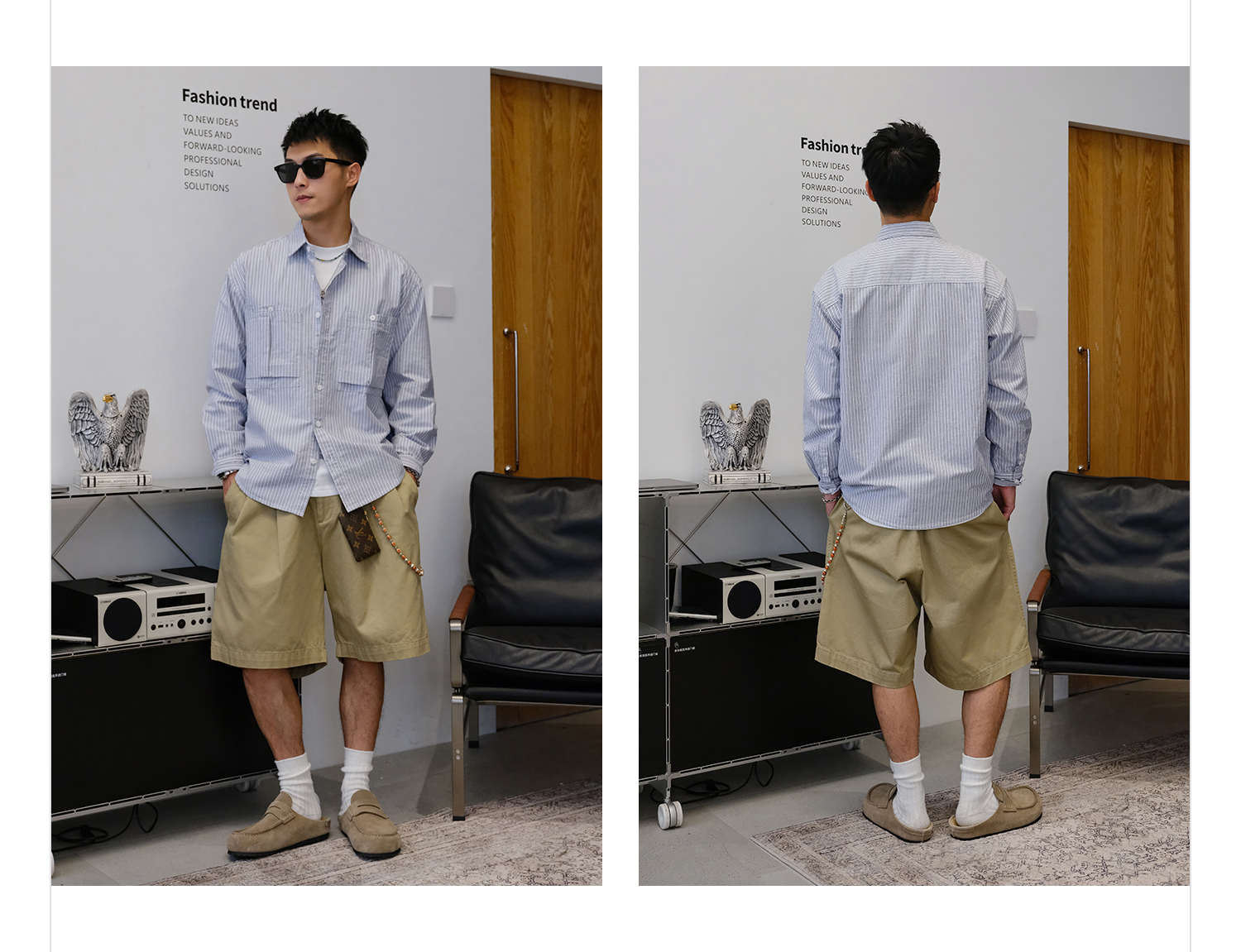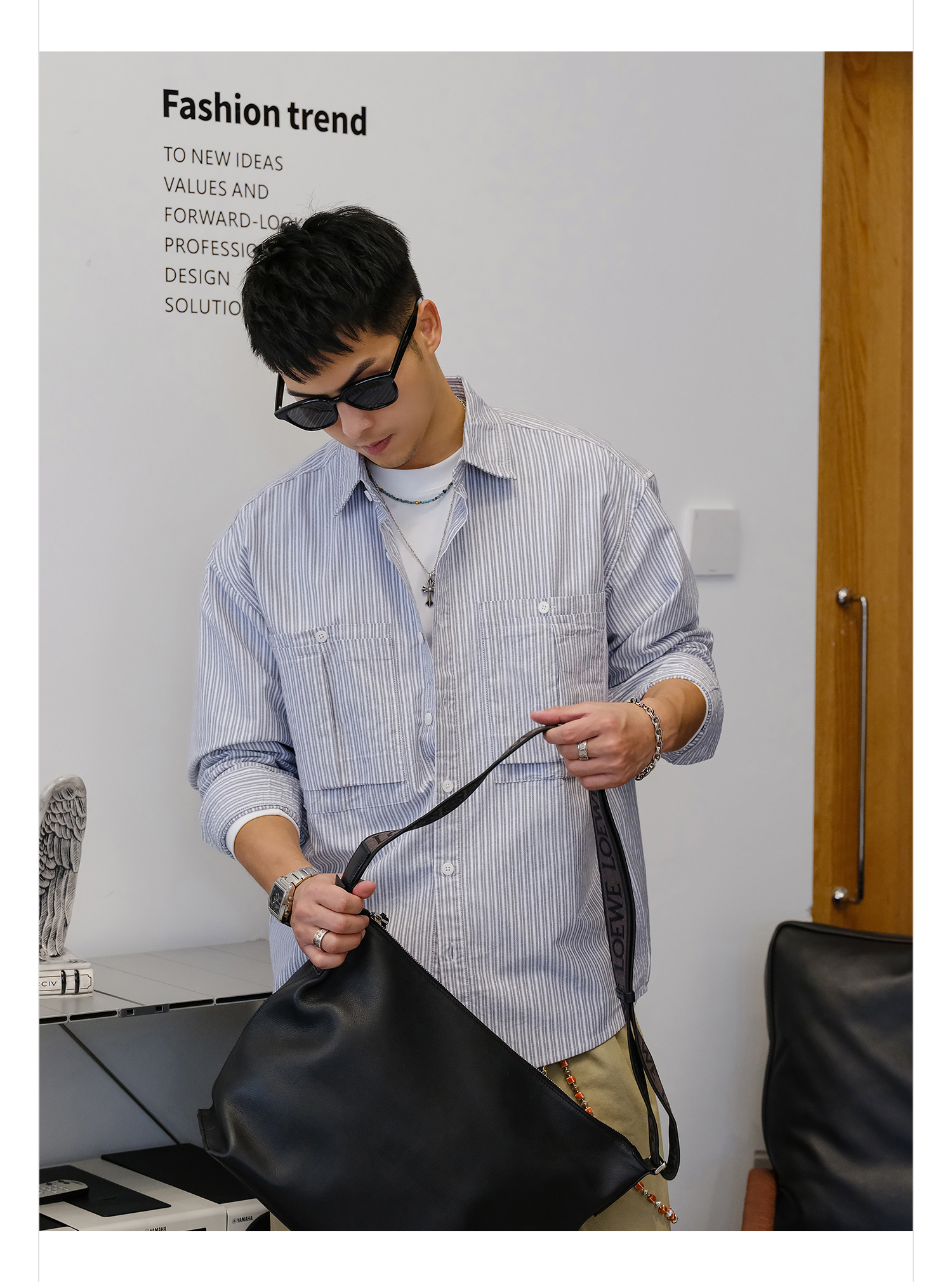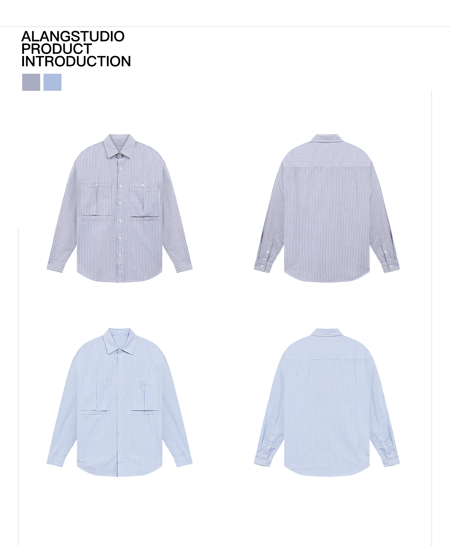 徐太浪170g竖条纹长袖衬衫男高级感痞帅2025新款秋季大码纯棉衬衣