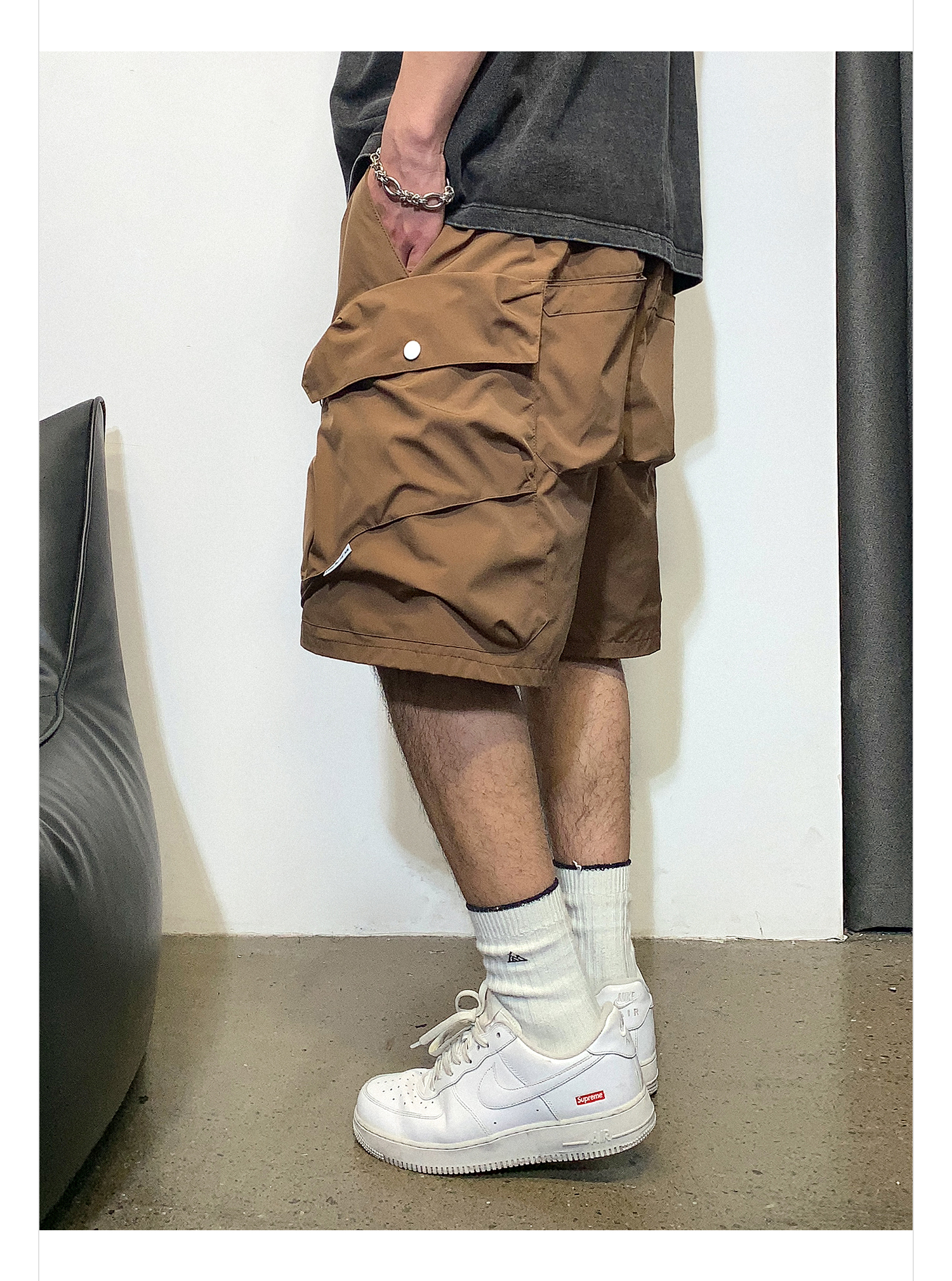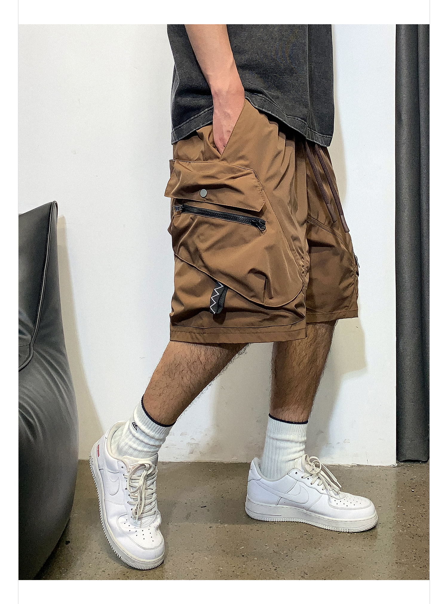 徐太浪多口袋机能风工装短裤男夏季潮牌休闲宽松直筒阔腿五分裤子