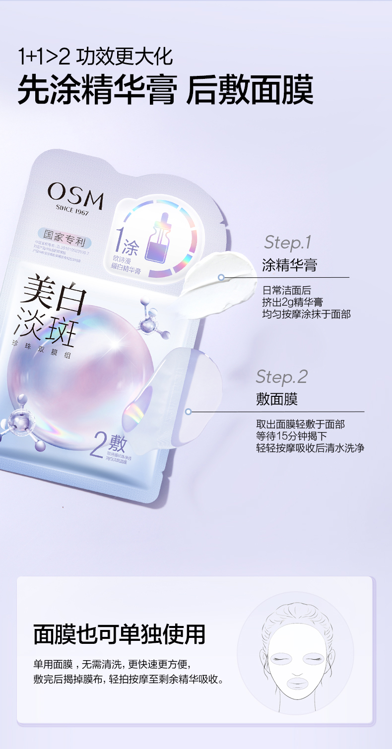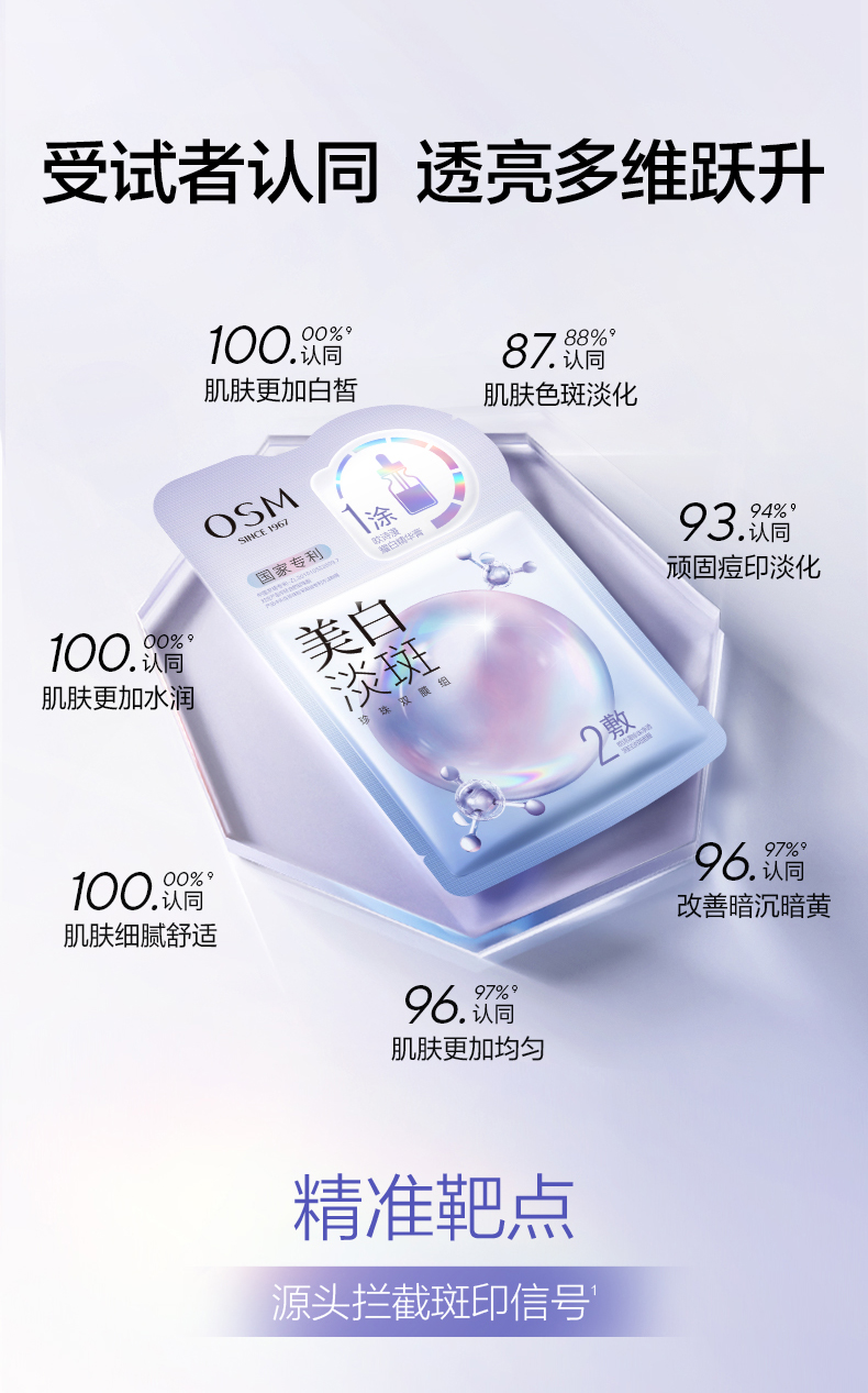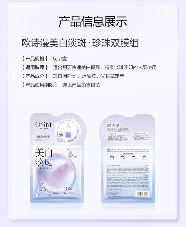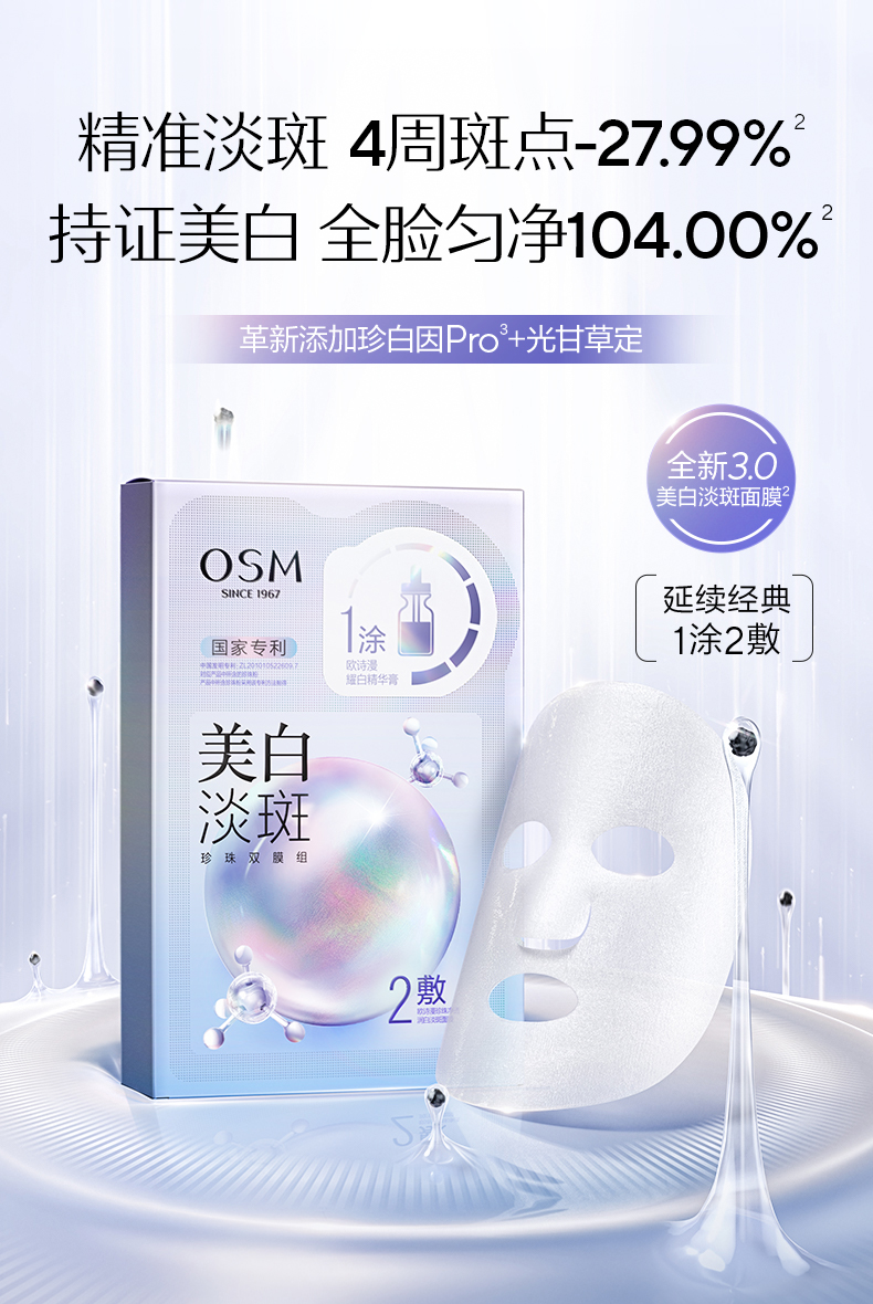 【持证美白淡斑】欧诗漫美白淡斑面膜-国家专利-黄黑皮必入-快速美白淡斑提亮