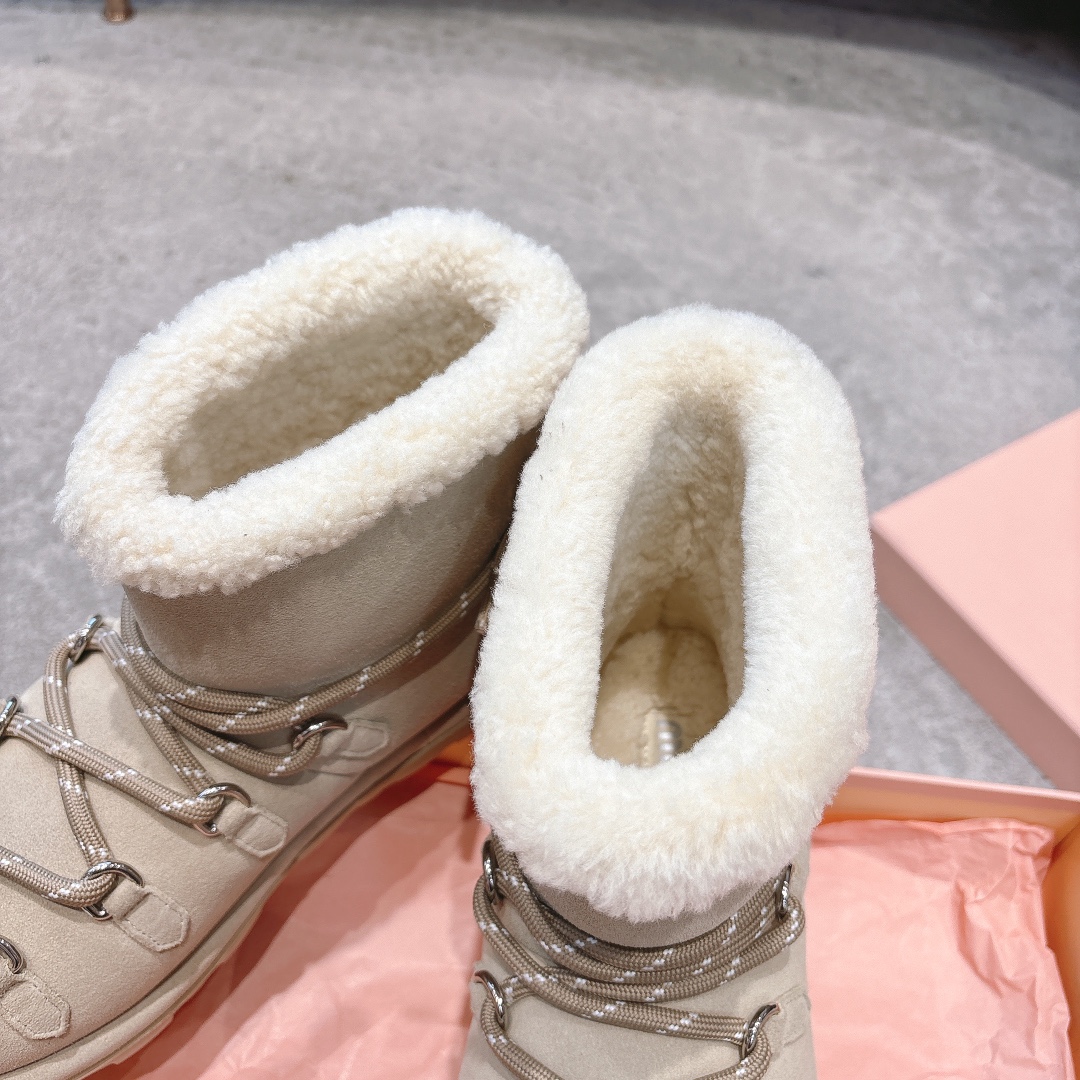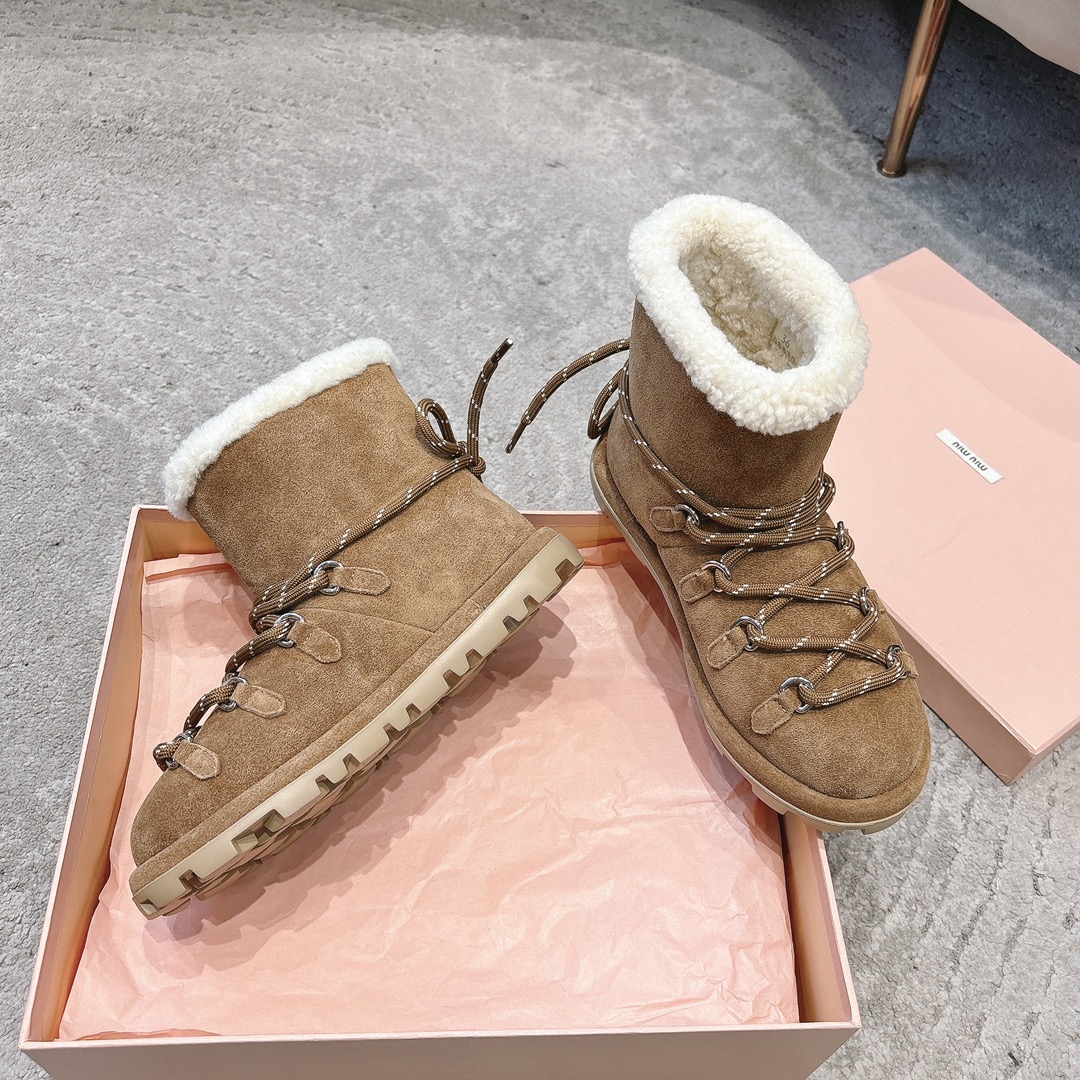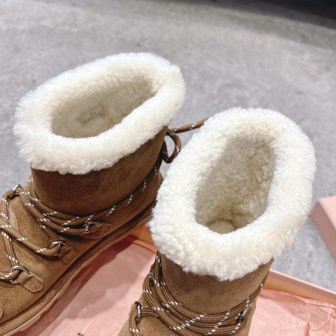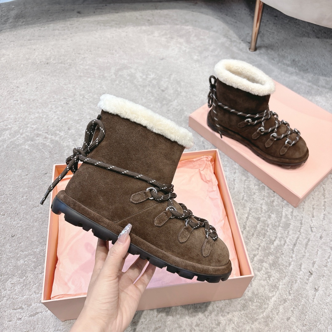 缪缪2024ss秋冬走秀款 绑带羊毛小短靴雪地靴毛毛鞋