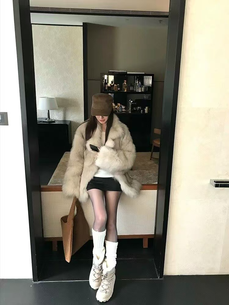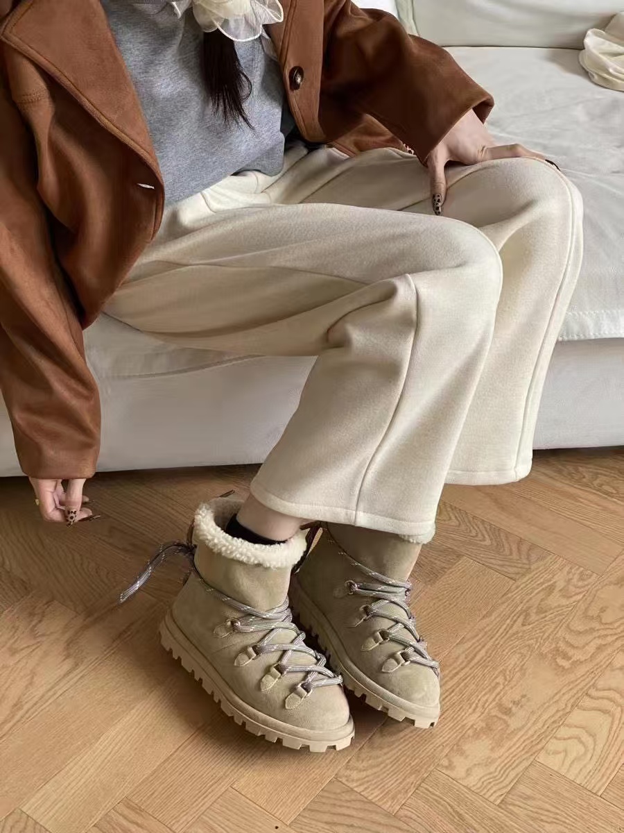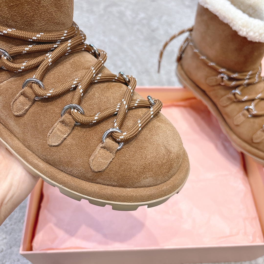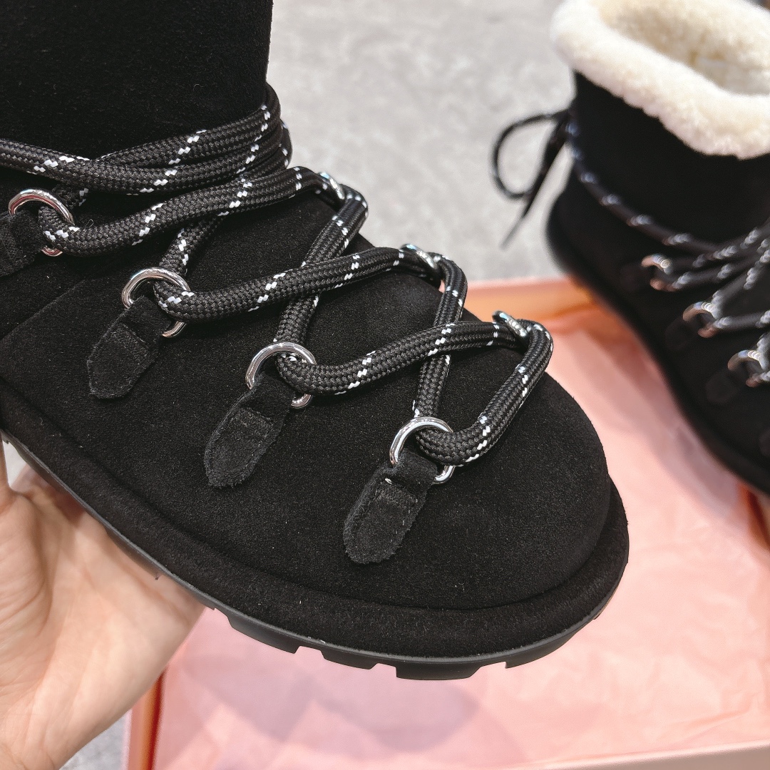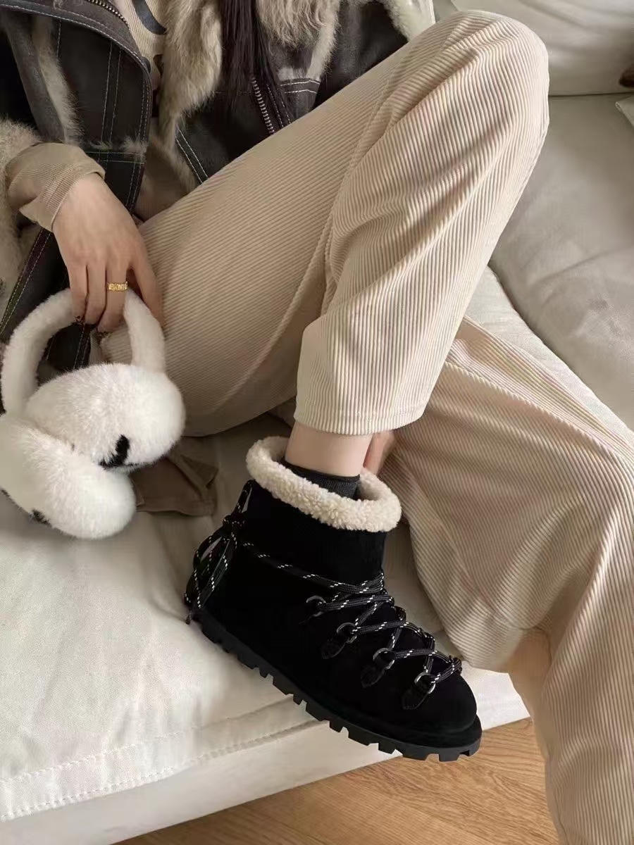 缪缪2024ss秋冬走秀款 绑带羊毛小短靴雪地靴毛毛鞋