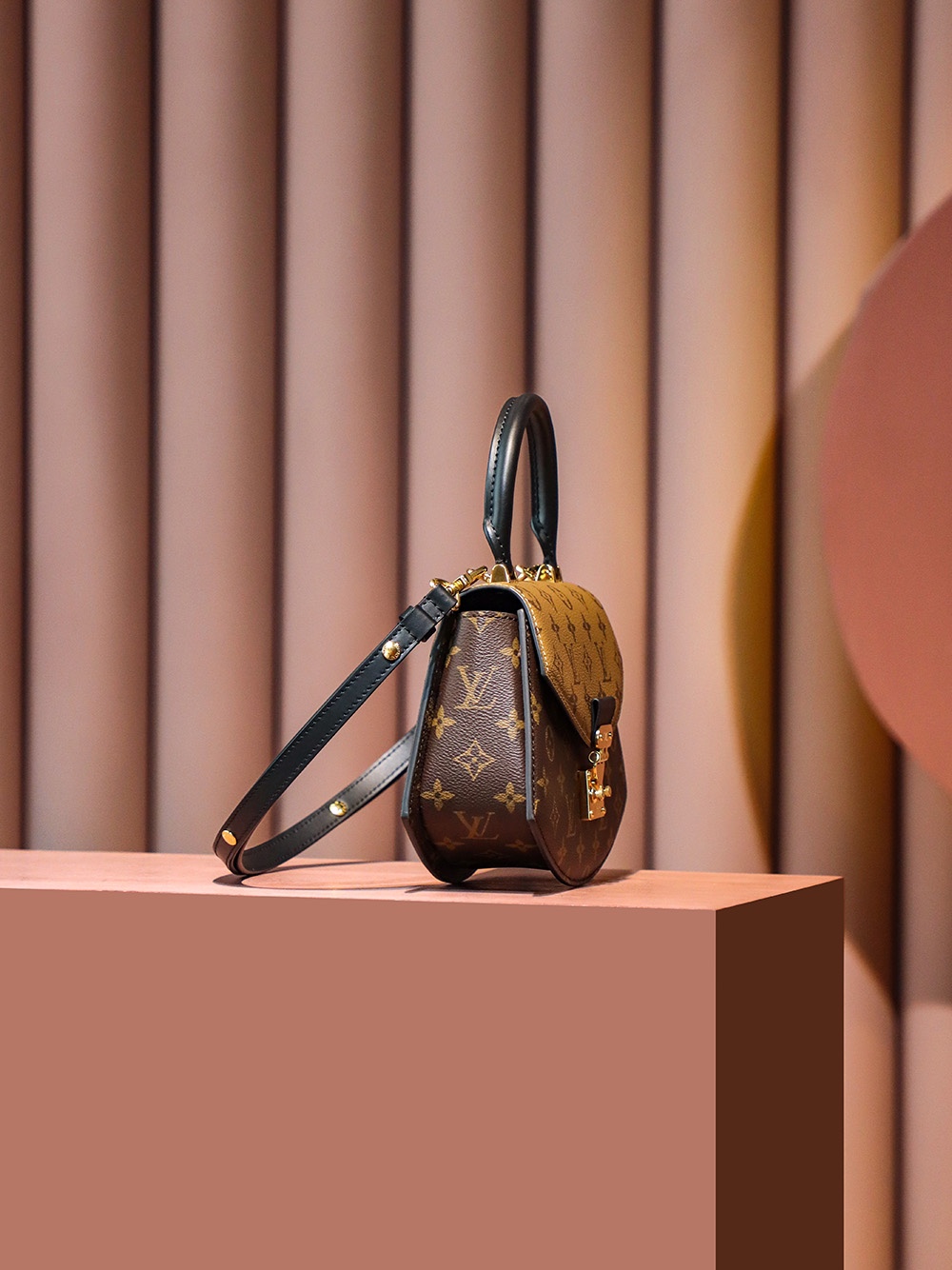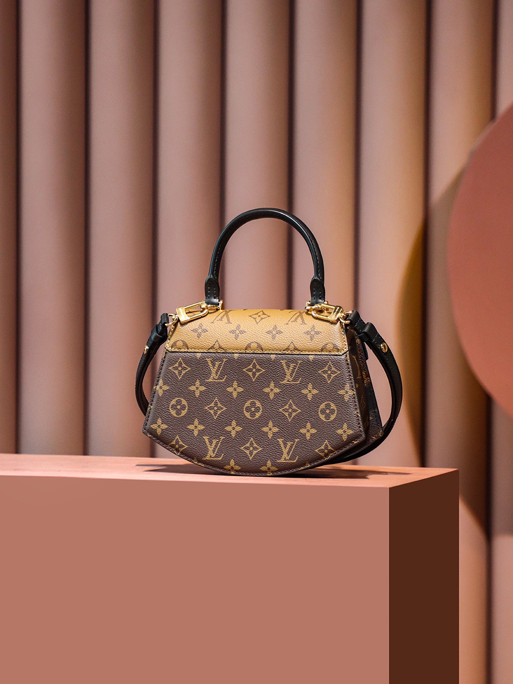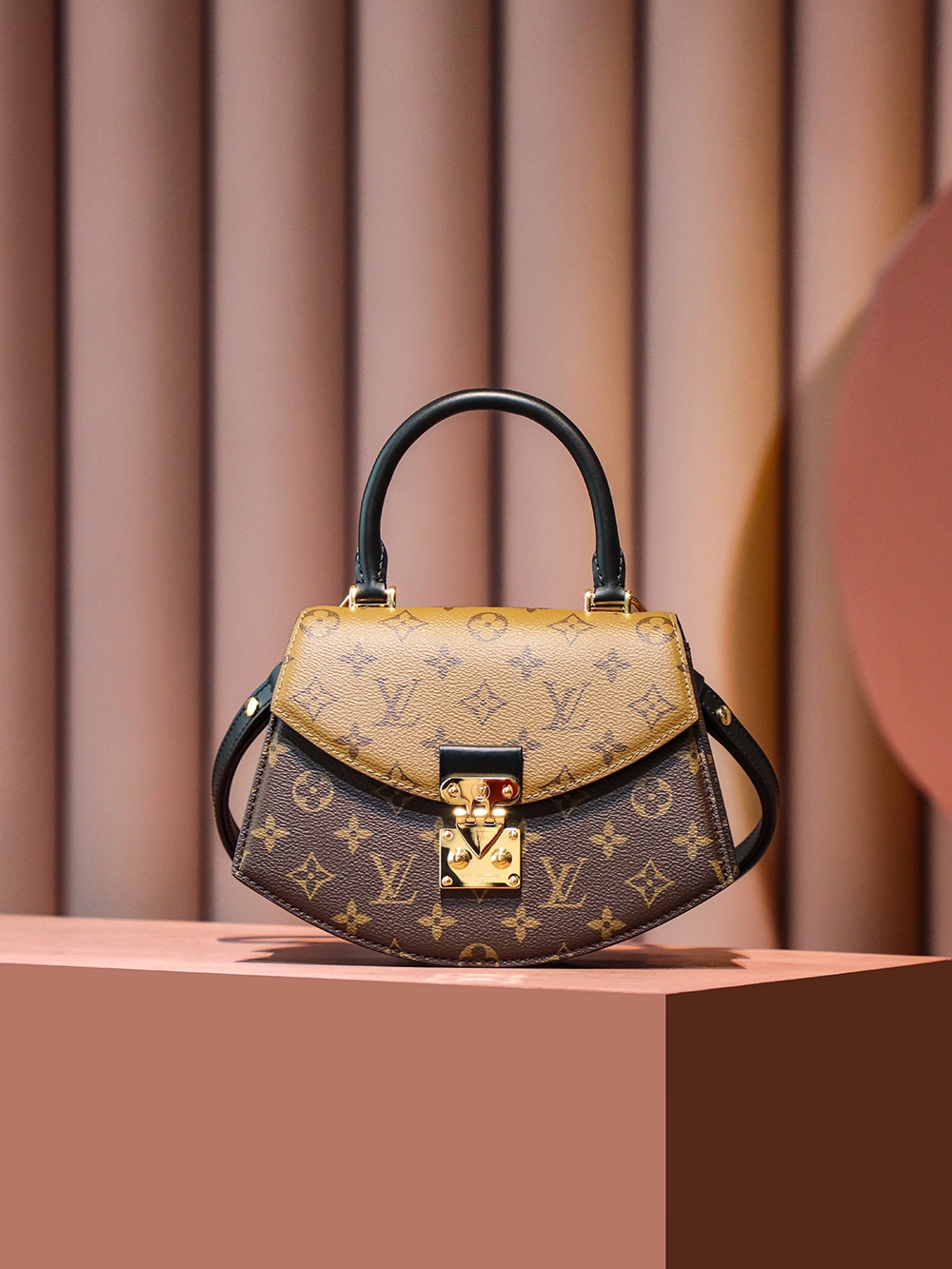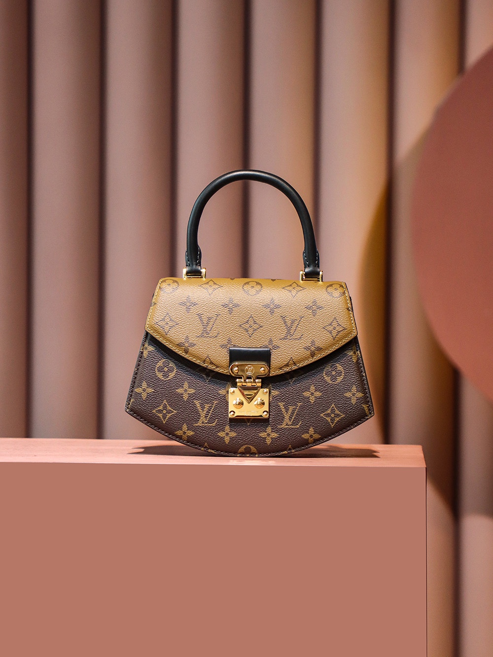 以经典拼色的老花,独特的中古扇形为设计!