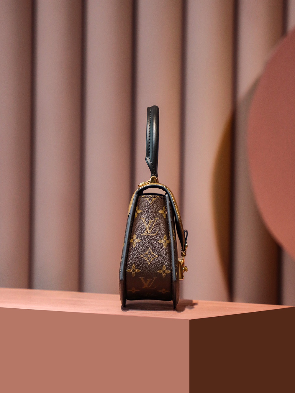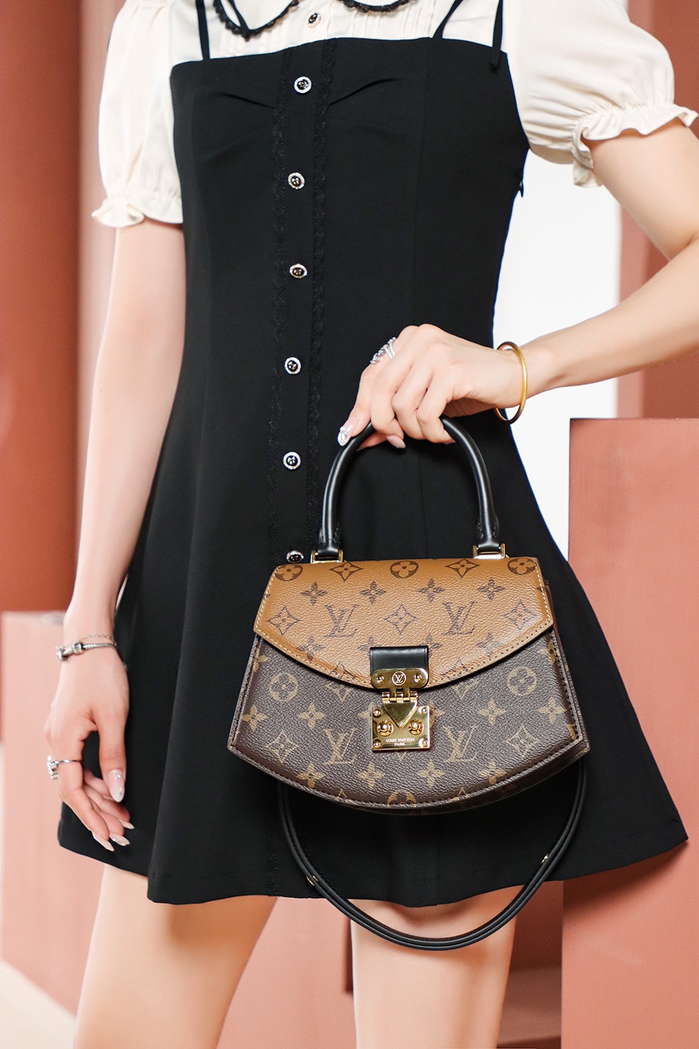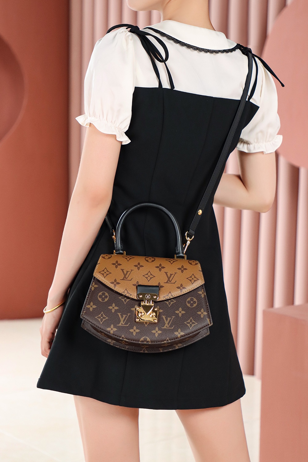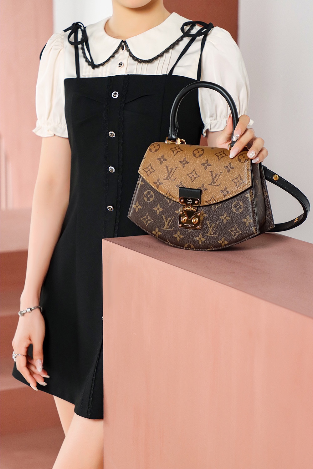 以经典拼色的老花,独特的中古扇形为设计!