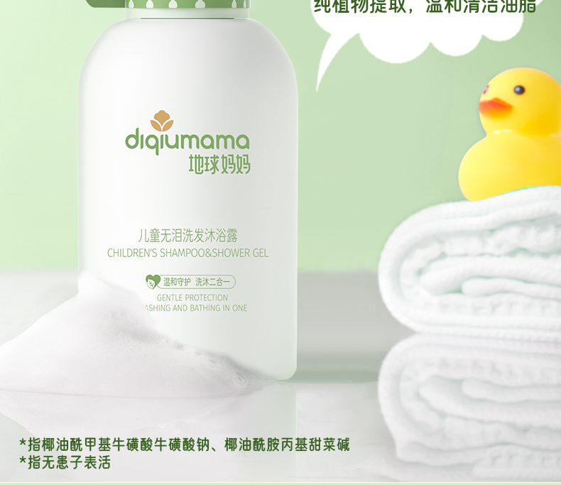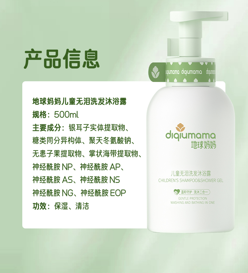 地球妈妈儿童无泪洗发沐浴露二合一宝宝顺滑蓬松无泪温和清洁留香