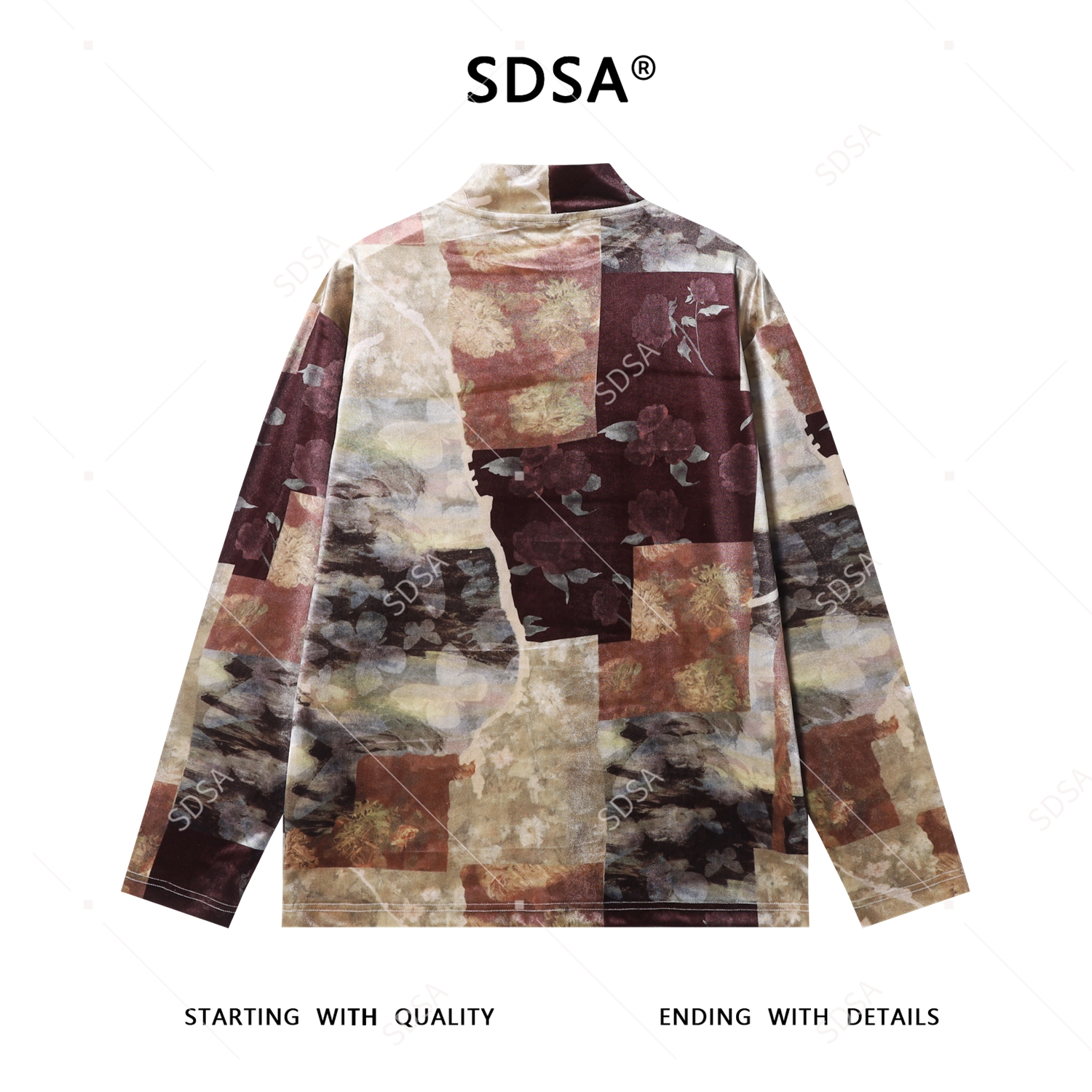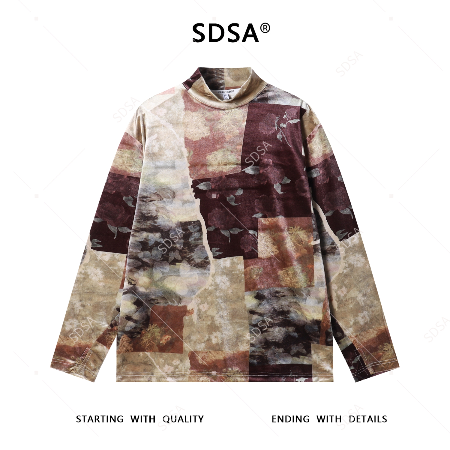 T4892SDSA男士秋冬新款痞帅男装美式撞色植物花卉半高领长袖T恤百搭潮