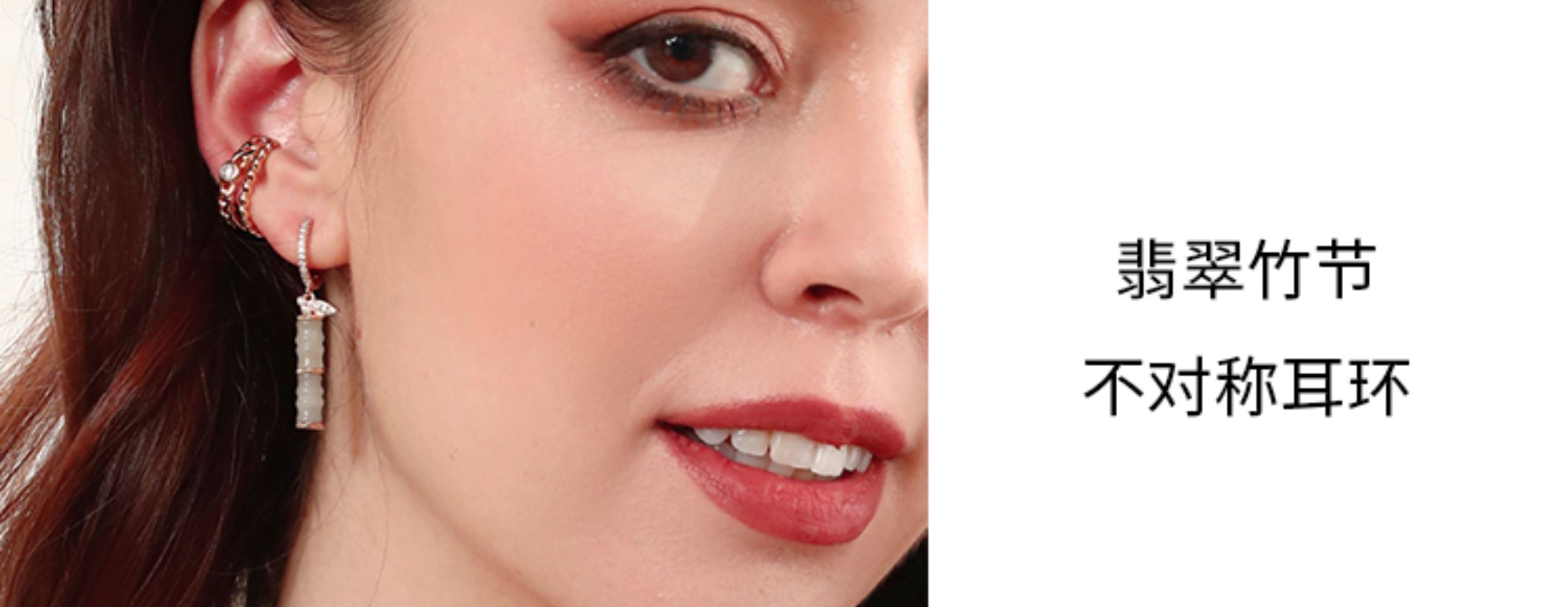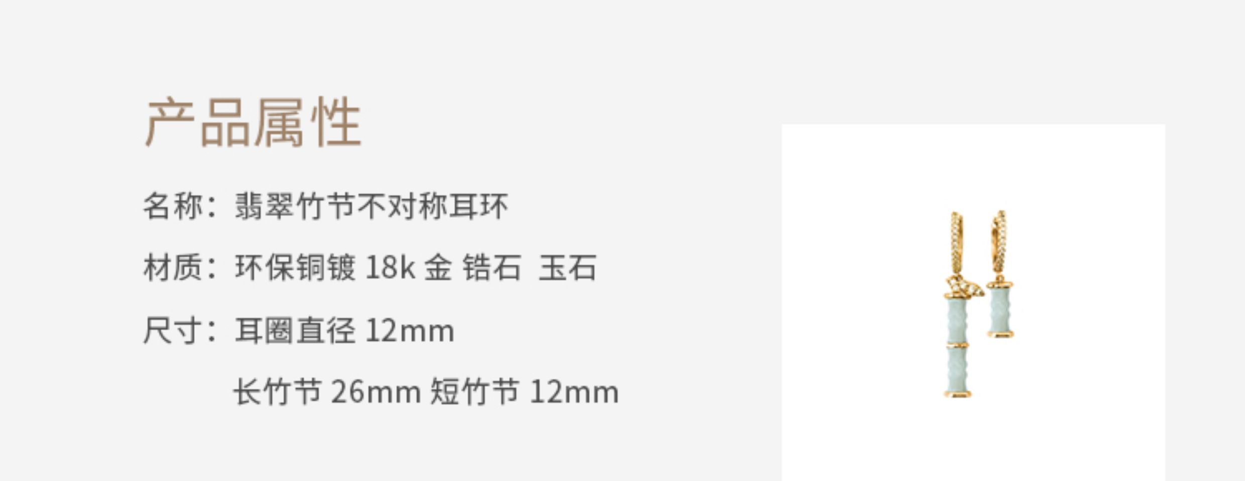 LHWINDSOR 翠色竹节耳环不对称设计感圆圈吊坠新中式耳饰耳钉