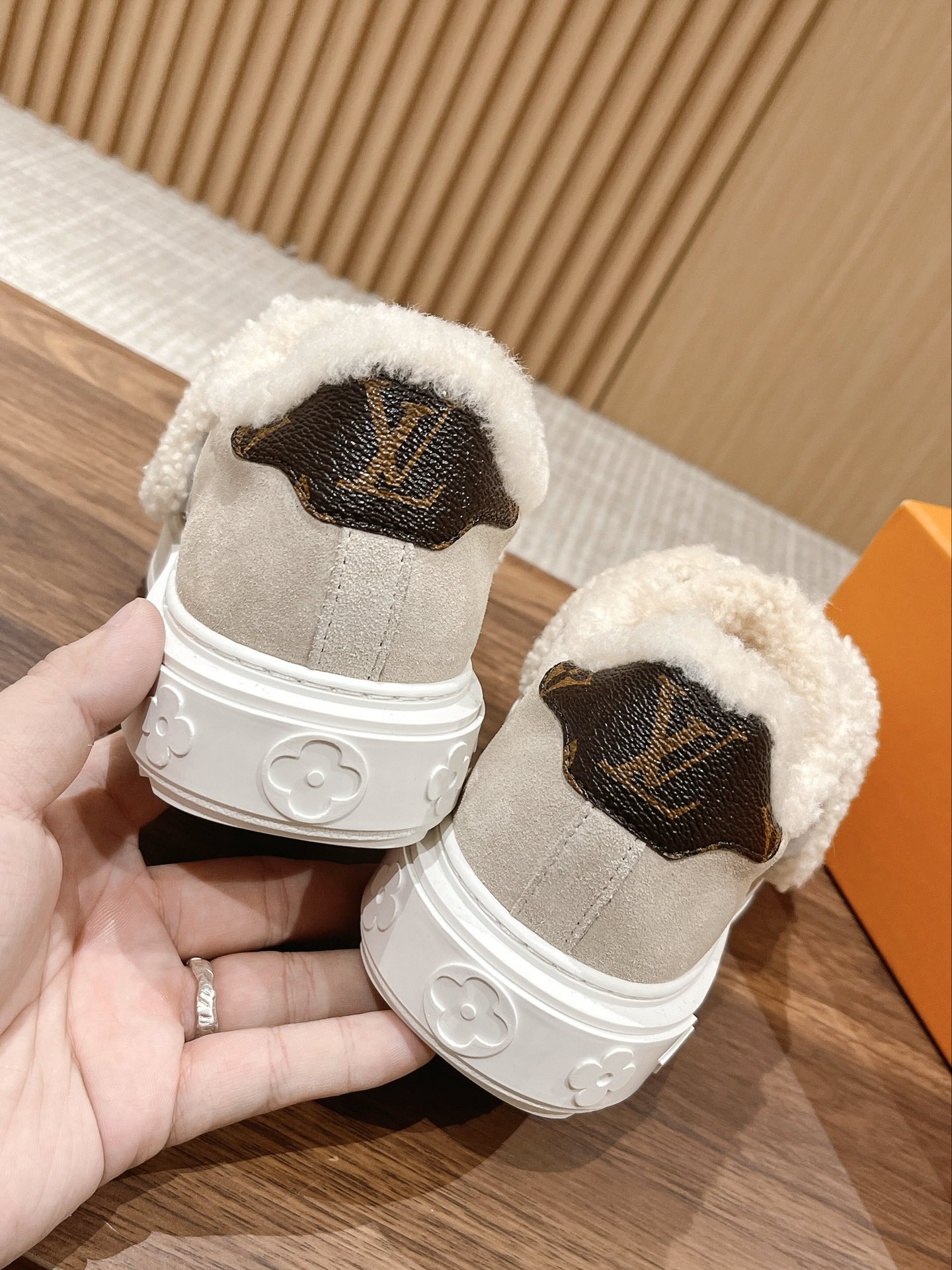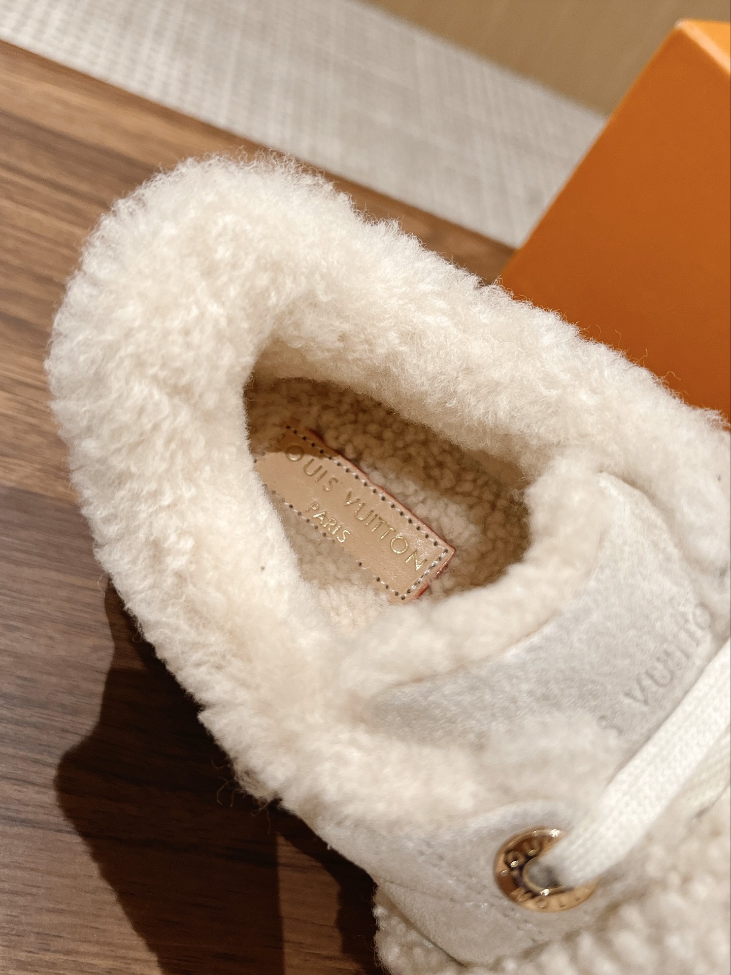羊羔毛里超级保暖,上脚超级洋气,鞋身印花logo低调品味。底厚4cm,瞬间拉长腿型。闭眼入、顶级品质 鞋面真皮毛一体,质感细腻媲美zp!内里垫脚原版一致羊毛。原版开模Tpu大底,品质一如既往,细节无可挑剔。请区分于市面廉价货