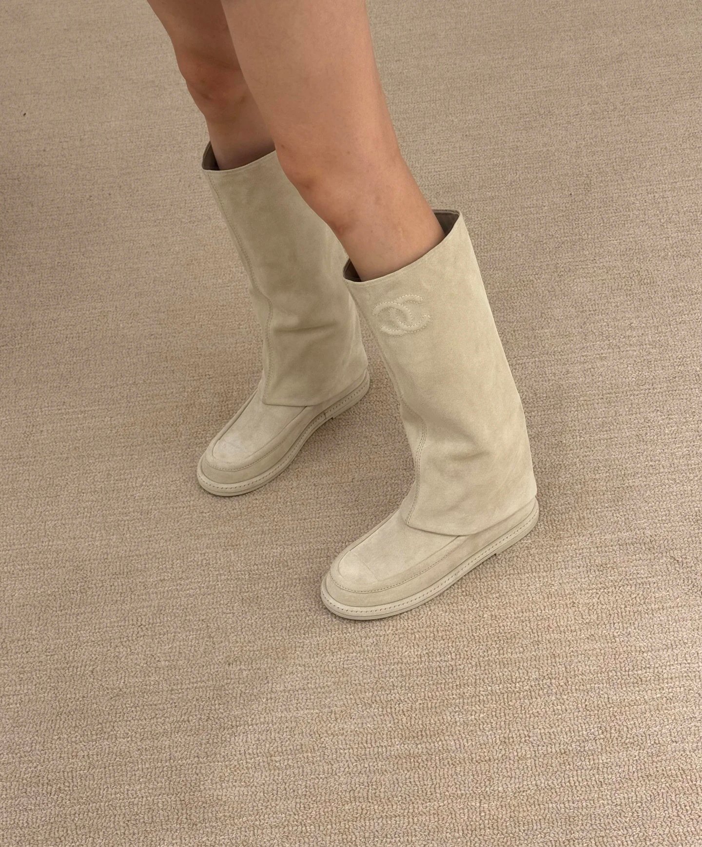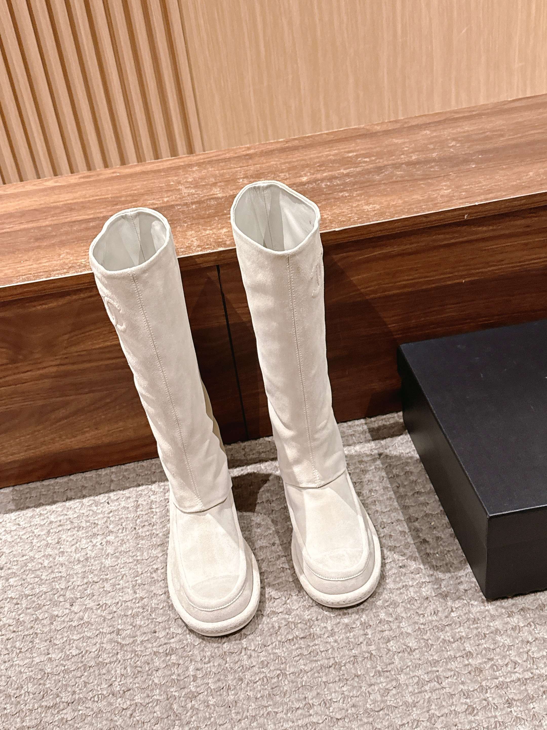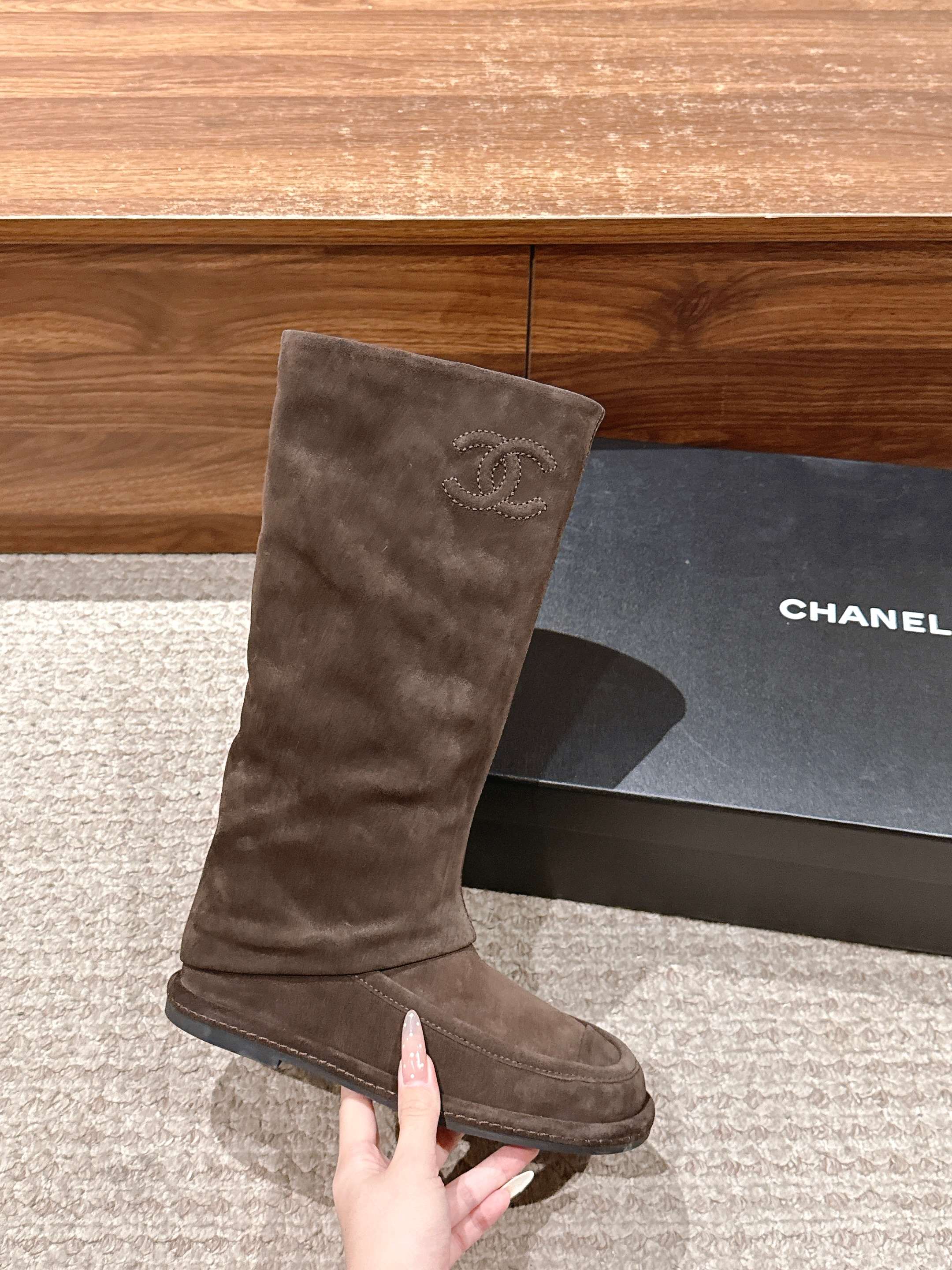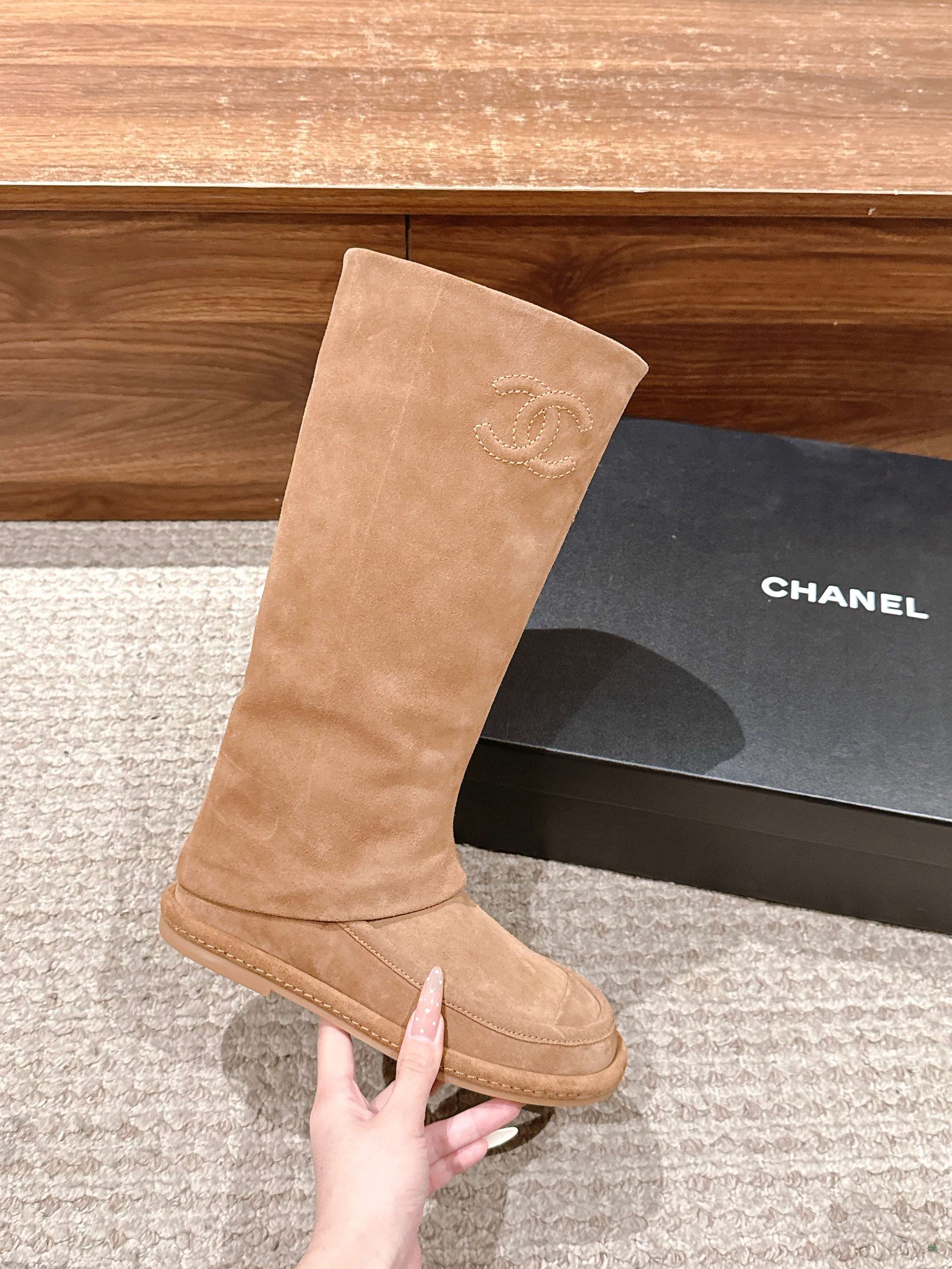 CHANEL 香奈儿新款最美麂皮长靴 小香这个人生靴子 真的美爆 一眼就种草的一款平底女靴 实物相当赞 软乎乎的超好穿 绝美 舒适好走不磨脚 不会撞款的一款靴子 颜色敲适合这个秋冬 个子娇小的宝宝们可以选大一码 悄悄放个内增高 秒变大长腿 鞋面:牛反绒 内里:羊皮 鞋底:意大利真皮底 码数:35-39(40定制不退换)