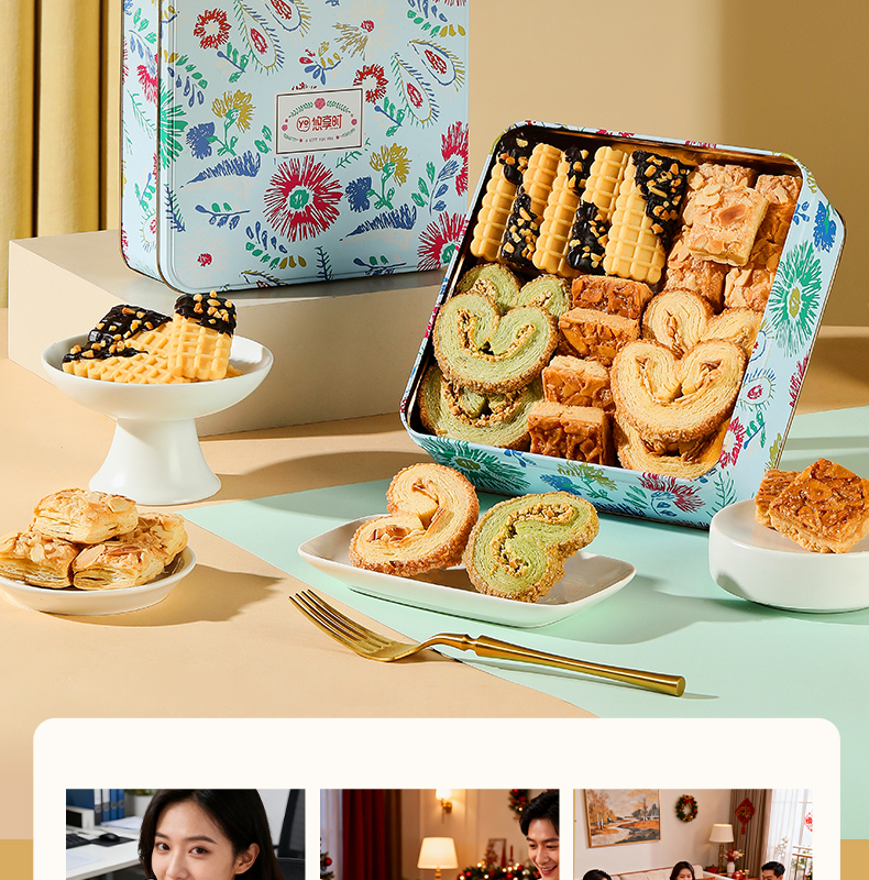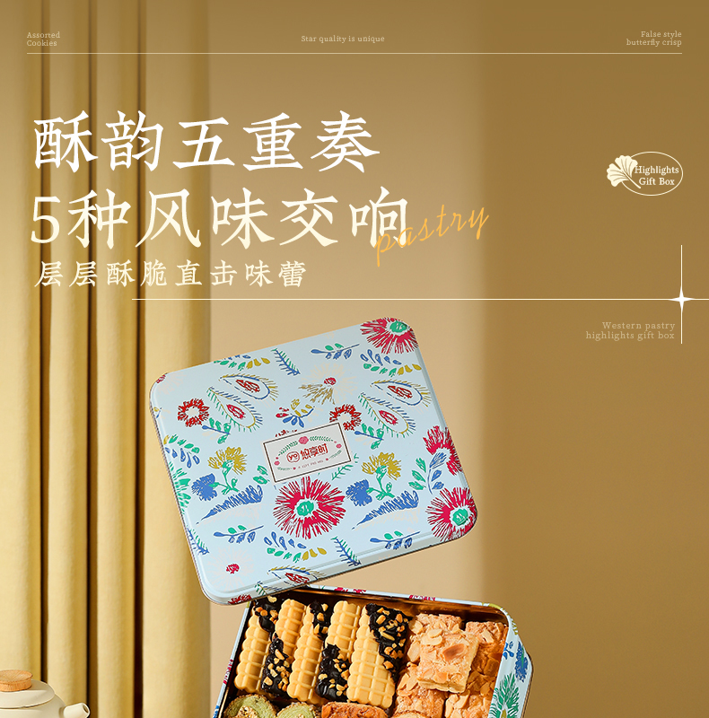 【酥韵五重奏】悠享时牛奶搭档低糖红豆黄油咸蛋黄酥零食办公室休闲下午茶传统糕点饱腹五种口味265g