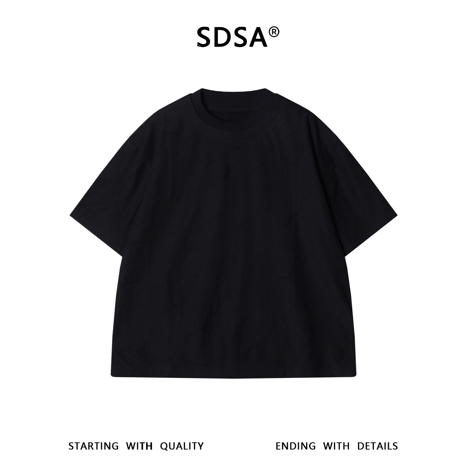 SDSA男装2026新款高贵轻奢简约纯色提花拼接领口短袖T恤百搭时尚