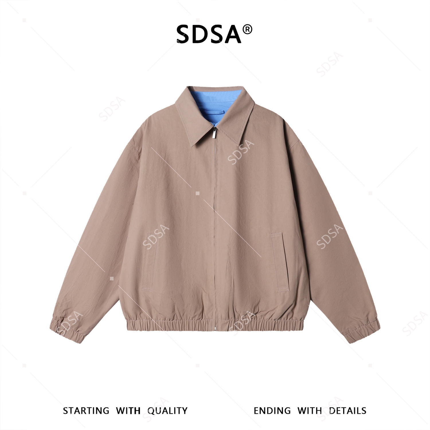 SDSA男士春夏新款痞帅男装老钱风商务百搭拉链翻领夹克外套宽松