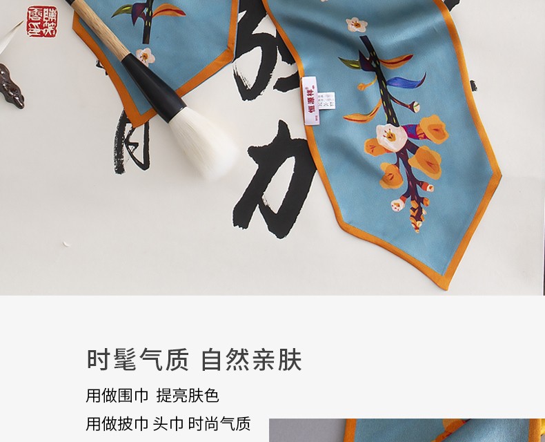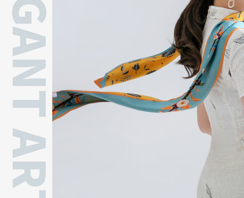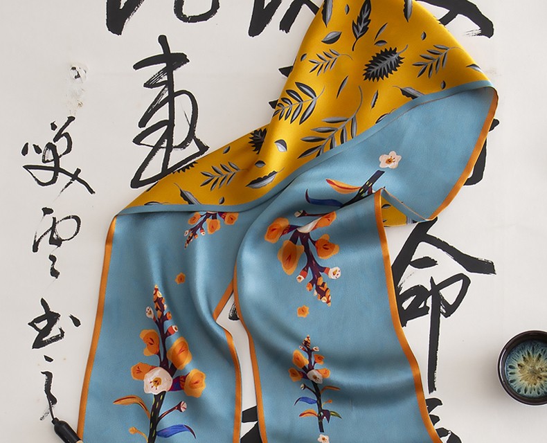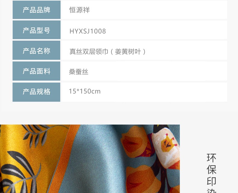 恒源祥礼业HYXSJ1008真丝双层领巾姜黄树叶 15*150