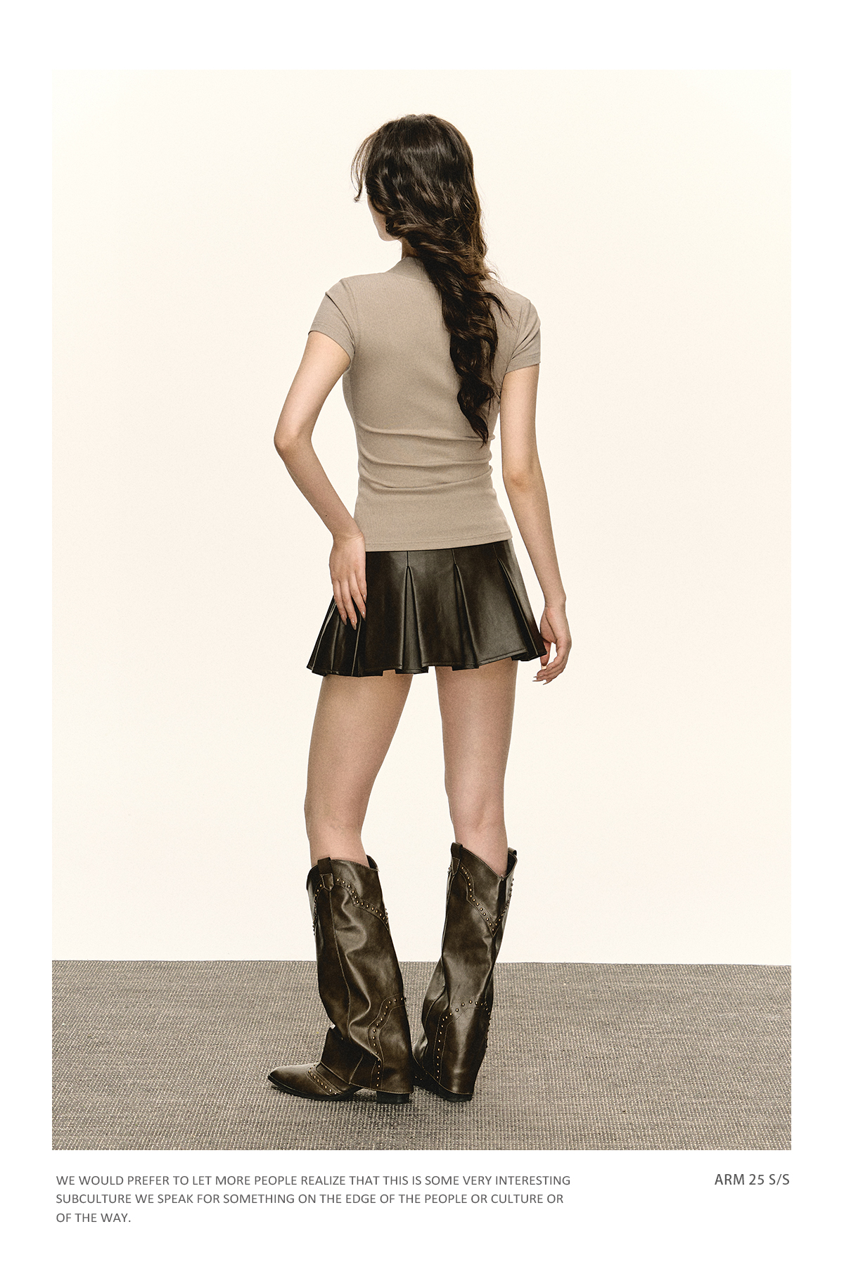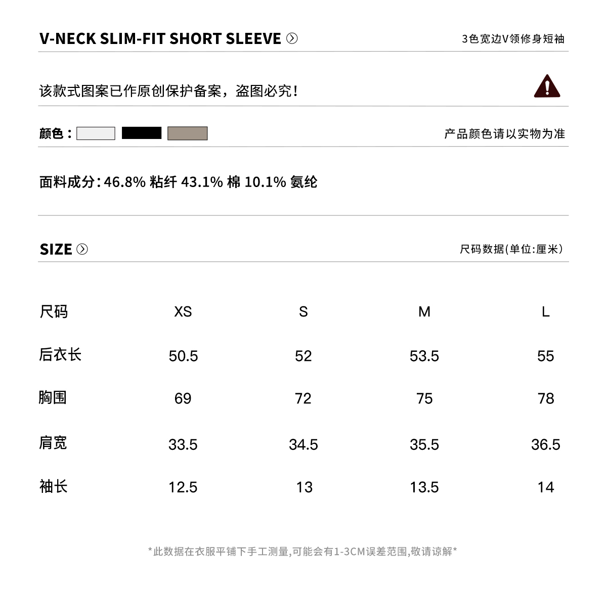 Ariseism 美式复古辣妹修身设计感V领短袖T恤女夏季新款显瘦上衣