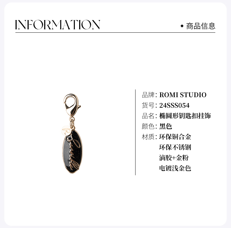 ROMI STUDIO 铜合金吊坠 双面字母浮雕椭圆形钥匙扣挂饰 24SSS054