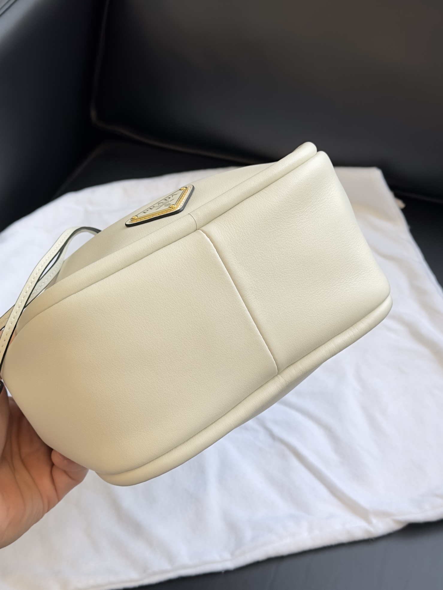 颜值与实用性并存的轻松拿捏高智感。柔软的牛皮材质,流畅极简的线条。标志性珐琅三角Logo~每一处细节,都凝聚非凡工艺。 尺寸:22*21*10.5cm 配防尘袋发货