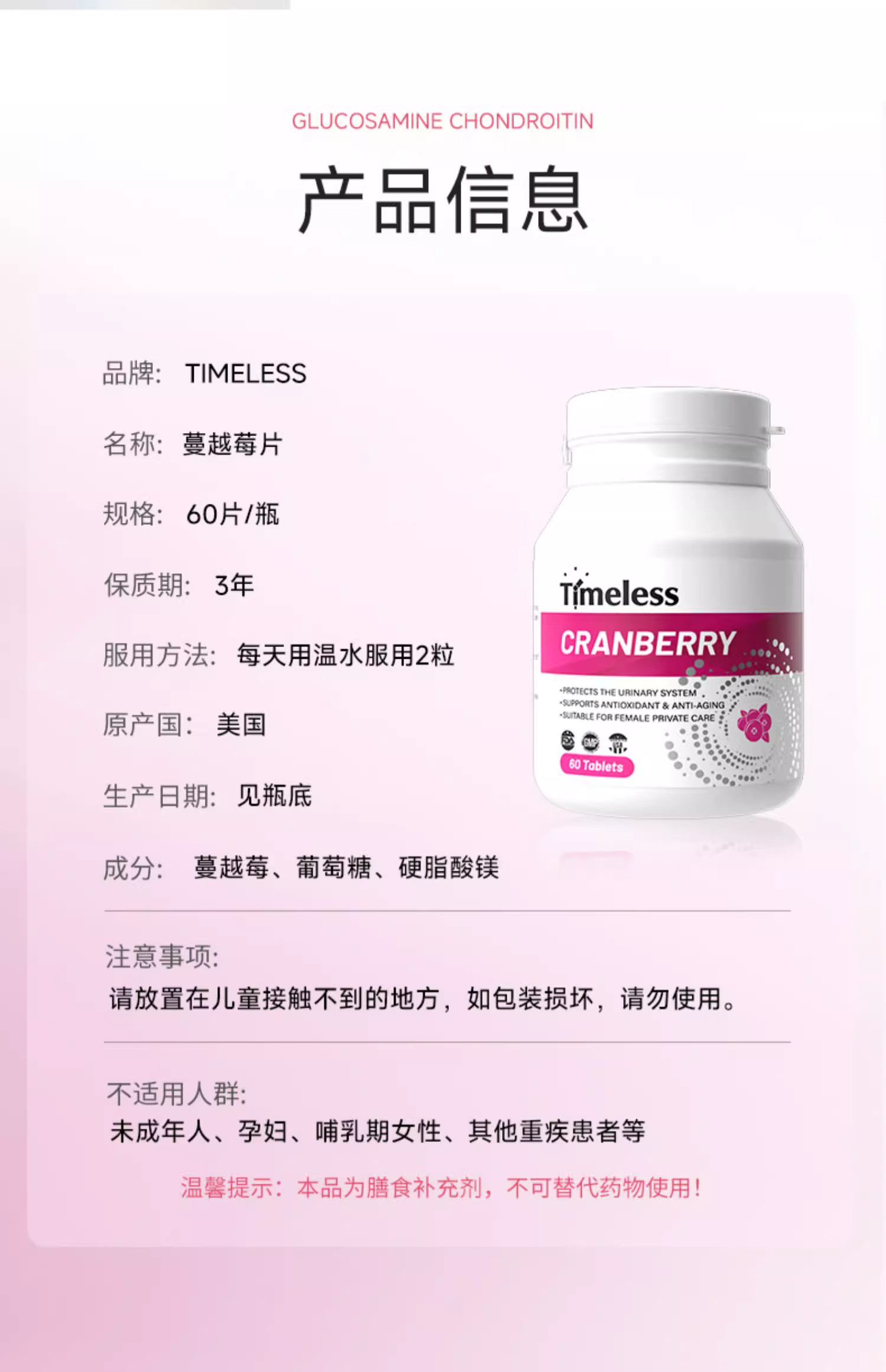 美国原装进口蔓越莓片呵护女性私密调养尿路保健海外旗舰店正品