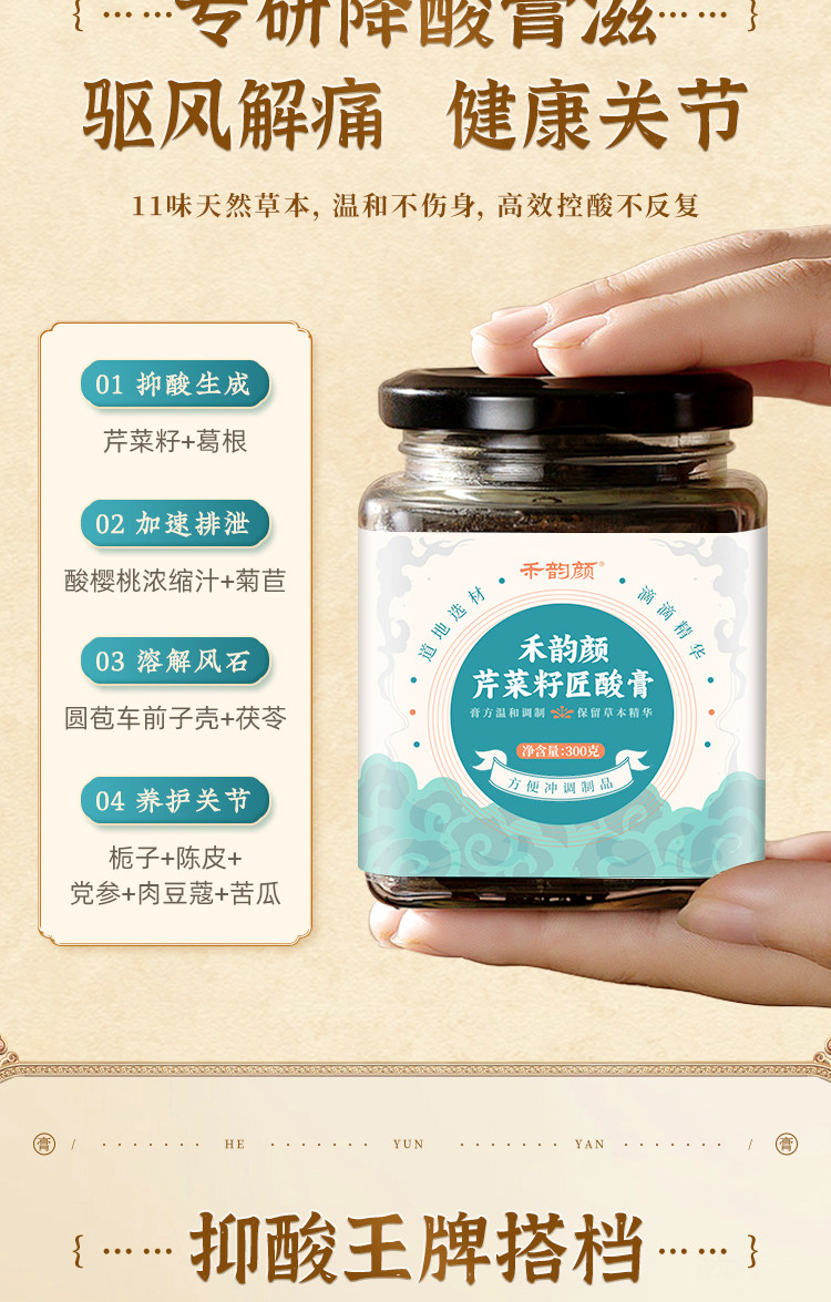 禾韵颜芹菜籽匠酸膏平衡酸值缓解身体不适降低关节平衡嘌呤