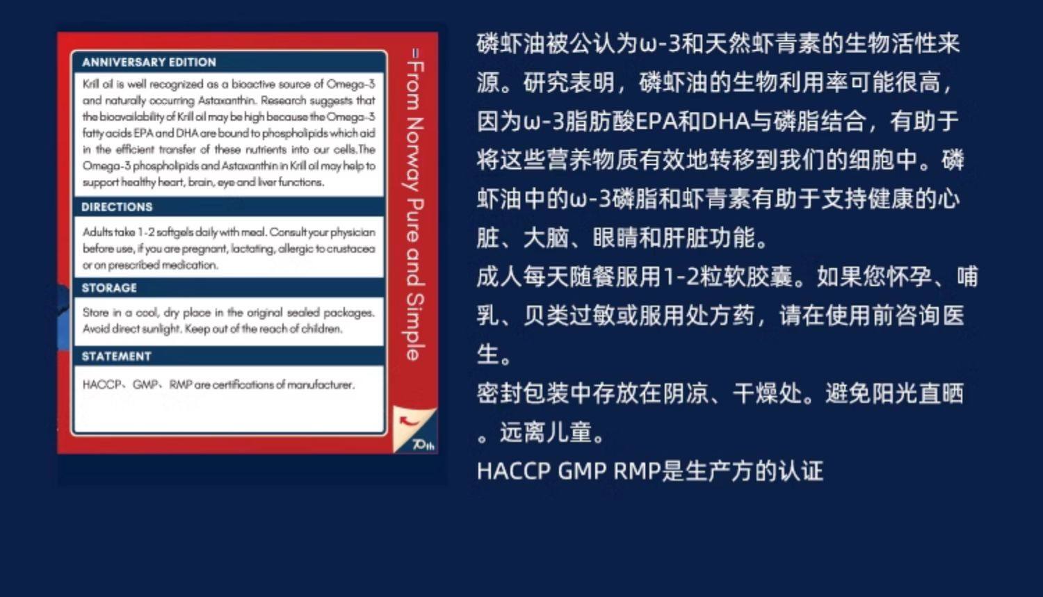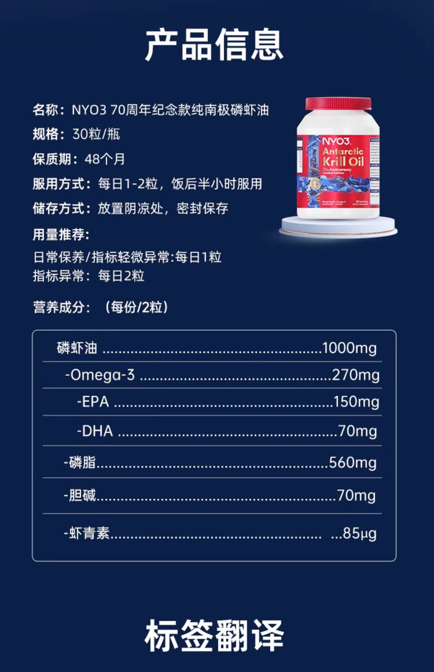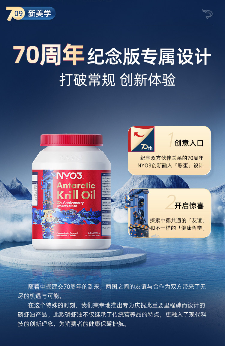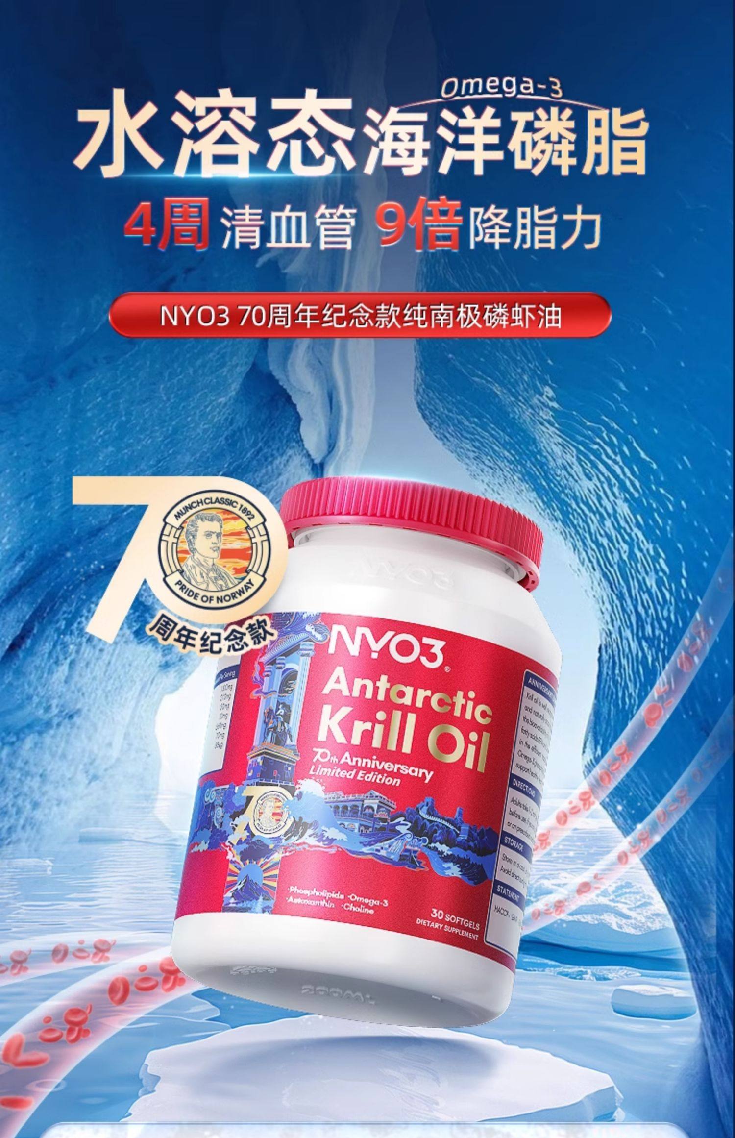 NYO3 挪威进口建交70周年纪念版纯南极磷虾油磷脂鱼油升级Omega-3