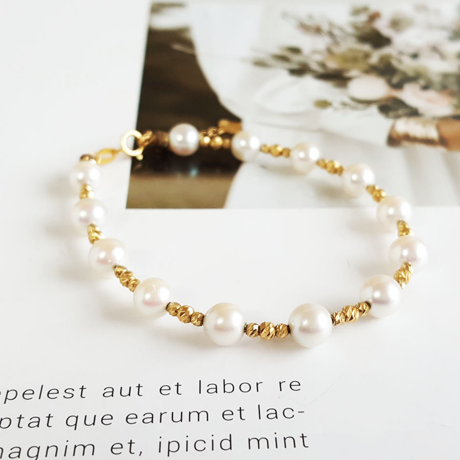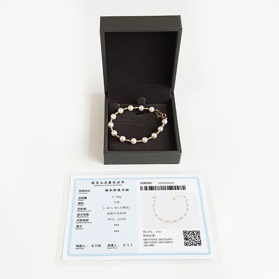 名称 | AU750黄金天然近完美约5.9MM akoya海水珍珠隔珠手链 |