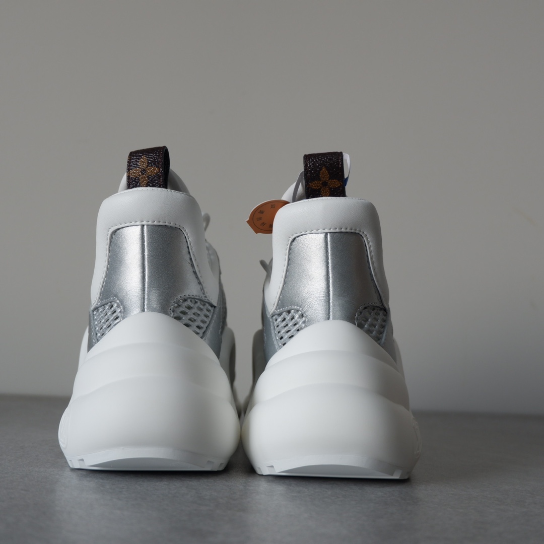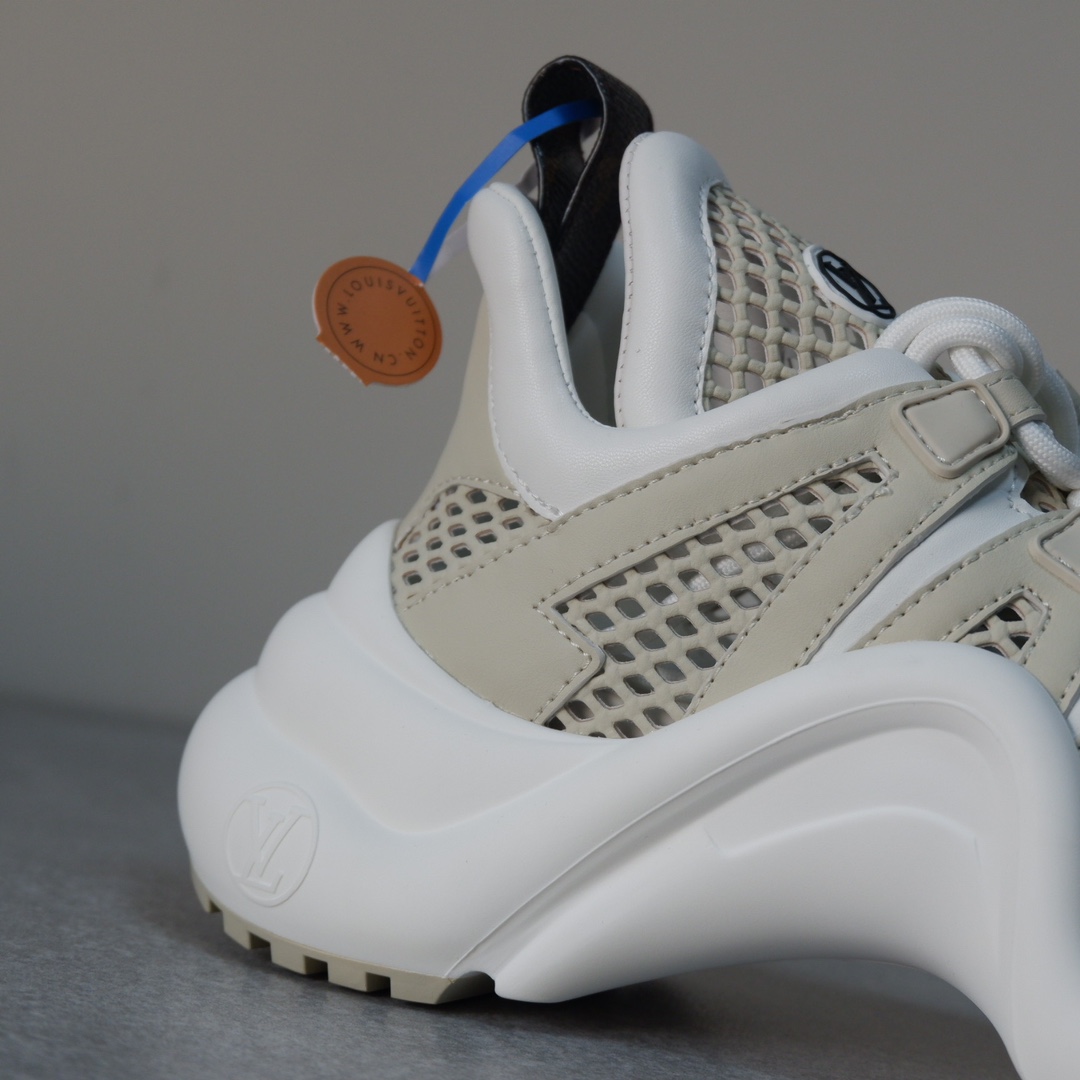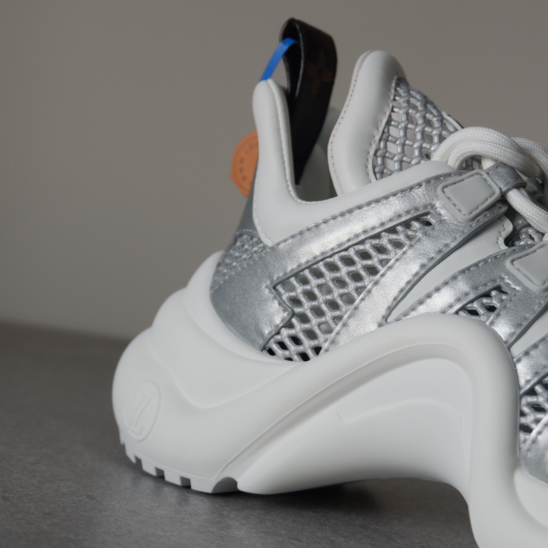 LV路易威登 驴牌L家Archlight系列 经典 老爹鞋 半拖 拱桥 运动鞋 太空鞋 原版购入开发 做货 本款 LV Archlight 露跟运动鞋取材光滑牛皮革,以工致穿孔描摹 Monogram 花卉图案,并以相同元素点缀鞋带圈环。宽大波浪形外底呈现 LV Circle 标识,缓缓流露夏日气息 配送专柜精美包装🛍📦 ▪️面料: 原版进口头层牛皮 ▪️内里:原版定制柔软羊皮里 ▪️鞋底:原版开模正版U型拱桥大底 ▪️底厚:5CM ▪️Size: 女款35-40