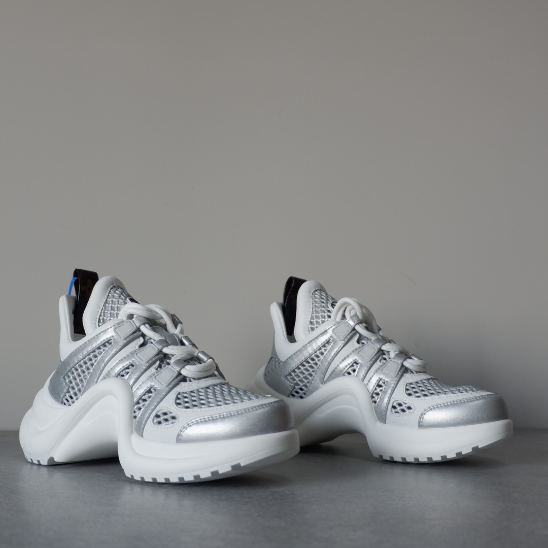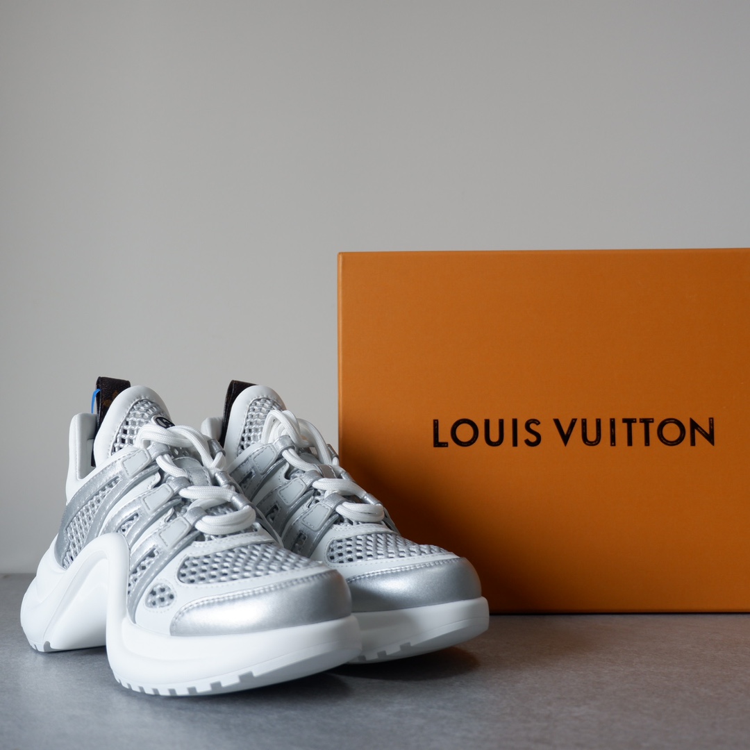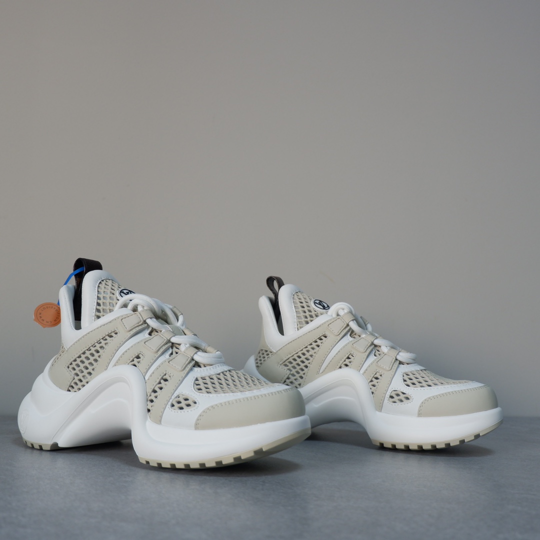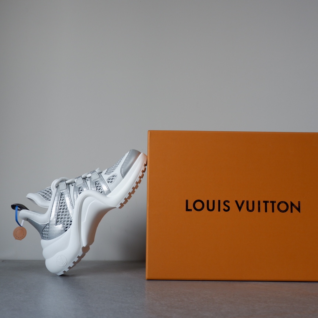 LV路易威登 驴牌L家Archlight系列 经典 老爹鞋 半拖 拱桥 运动鞋 太空鞋 原版购入开发 做货 本款 LV Archlight 露跟运动鞋取材光滑牛皮革,以工致穿孔描摹 Monogram 花卉图案,并以相同元素点缀鞋带圈环。宽大波浪形外底呈现 LV Circle 标识,缓缓流露夏日气息 配送专柜精美包装🛍📦 ▪️面料: 原版进口头层牛皮 ▪️内里:原版定制柔软羊皮里 ▪️鞋底:原版开模正版U型拱桥大底 ▪️底厚:5CM ▪️Size: 女款35-40