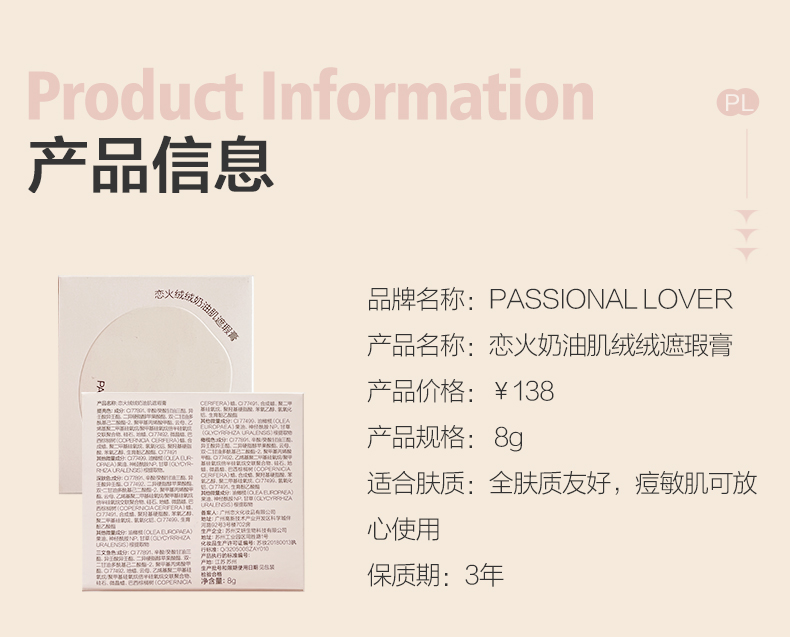 Passional Lover/PL 恋火奶油肌绒绒遮瑕膏7.2g (赠定制调色盘*1+小拖鞋拇指扑*2)