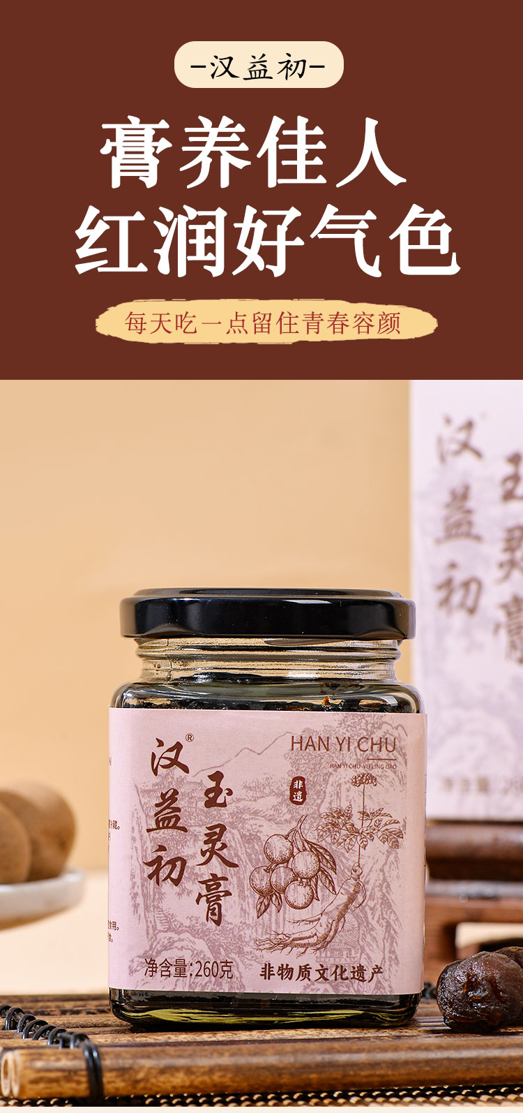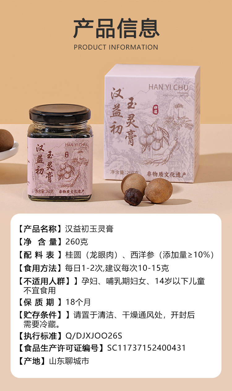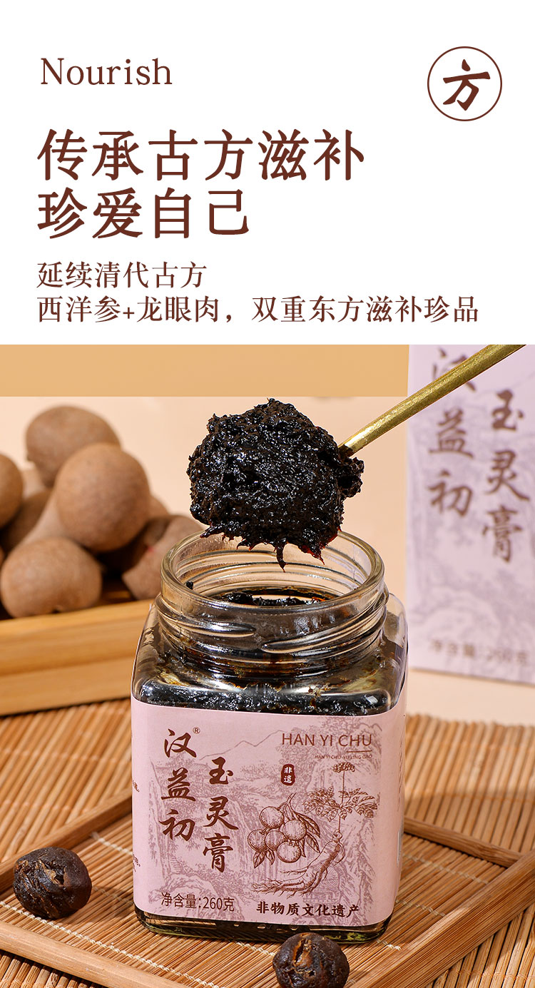 汉益初玉灵膏滋补蒸桂膏蒸桂圆西洋参浓缩玉灵膏汉益初官方旗舰店