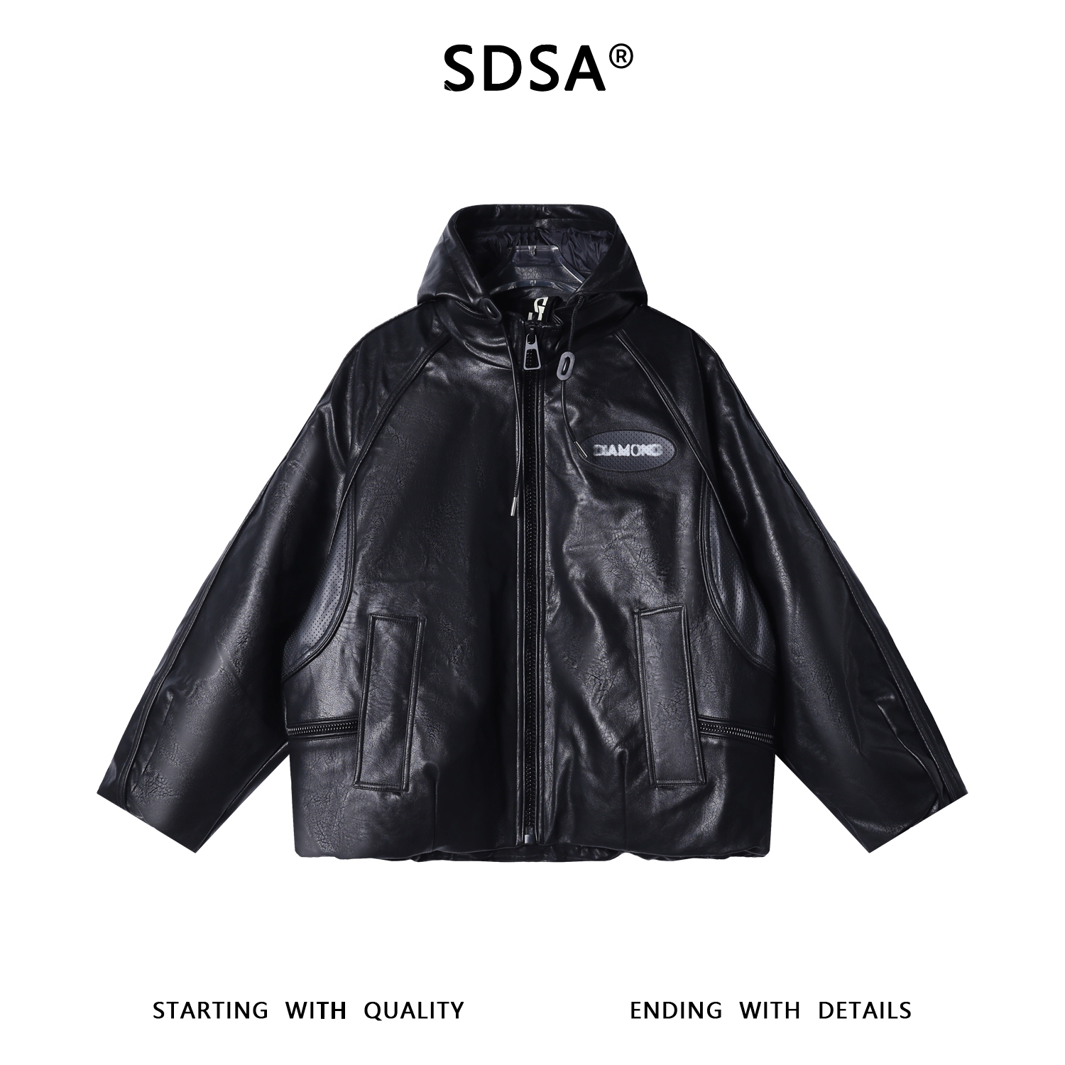 SDSA男士秋冬新款痞帅男装潮牌设计感皮衣连帽羽绒服字母百搭外套