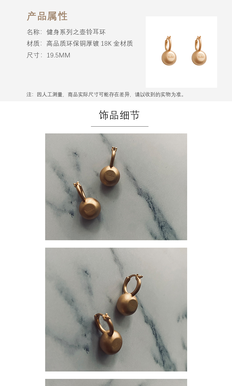 LHWINDSOR 健身系列壶铃耳环别致金属磨砂质感原创设计独特造型耳饰