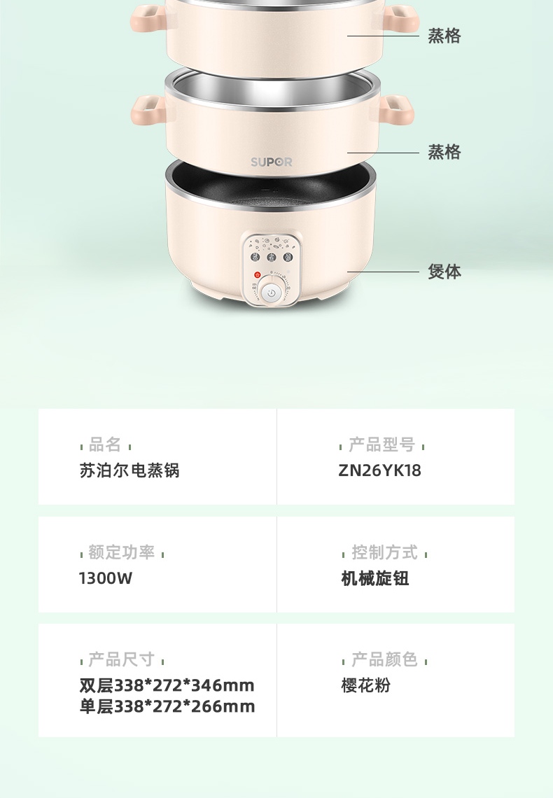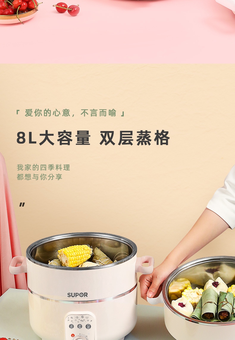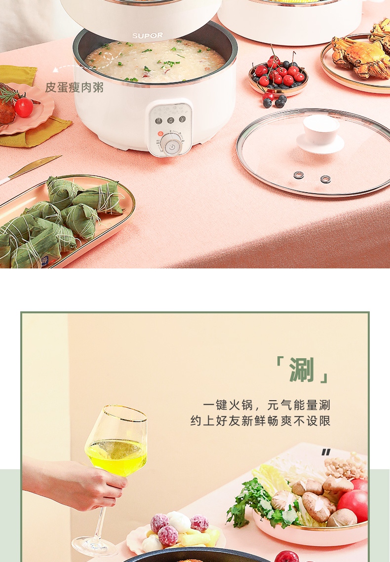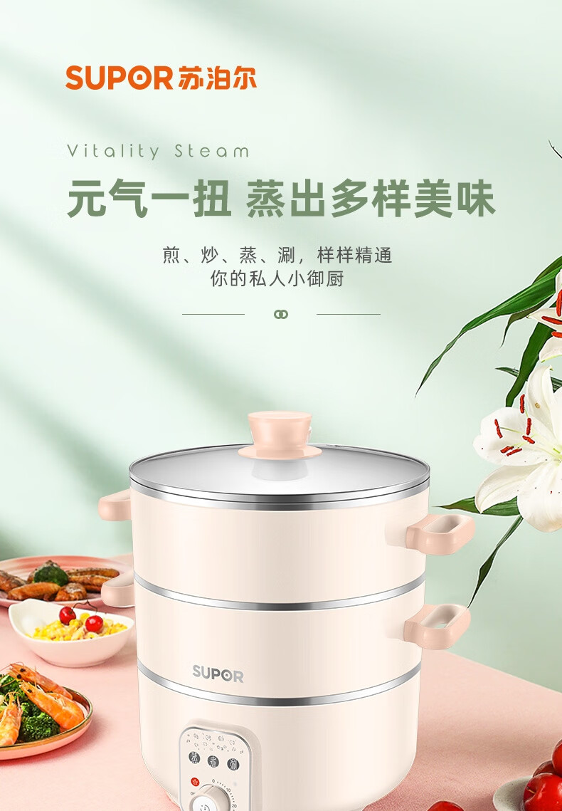 苏泊尔 SUPOR多用途锅 电蒸锅 多功能家用电火锅 大容量不沾锅电煮锅 11L蒸煮涮多功能锅 ZN26YK18