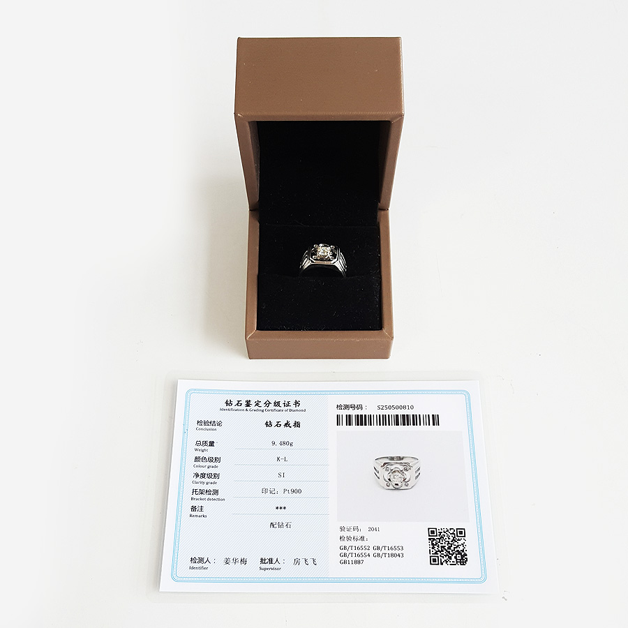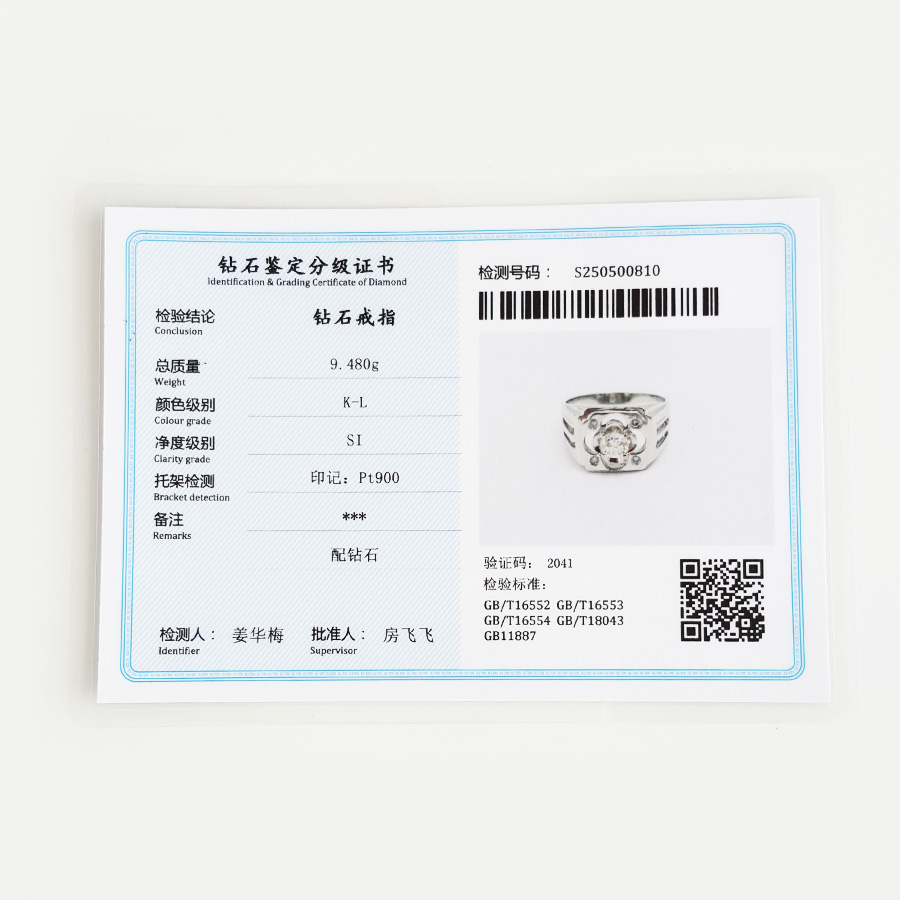 【天然正品】PT900铂金时尚设计款0.41克拉宽版钻石戒指K-L-SI17号(戒圈可改)中性款现售价:4680!160525NJM11