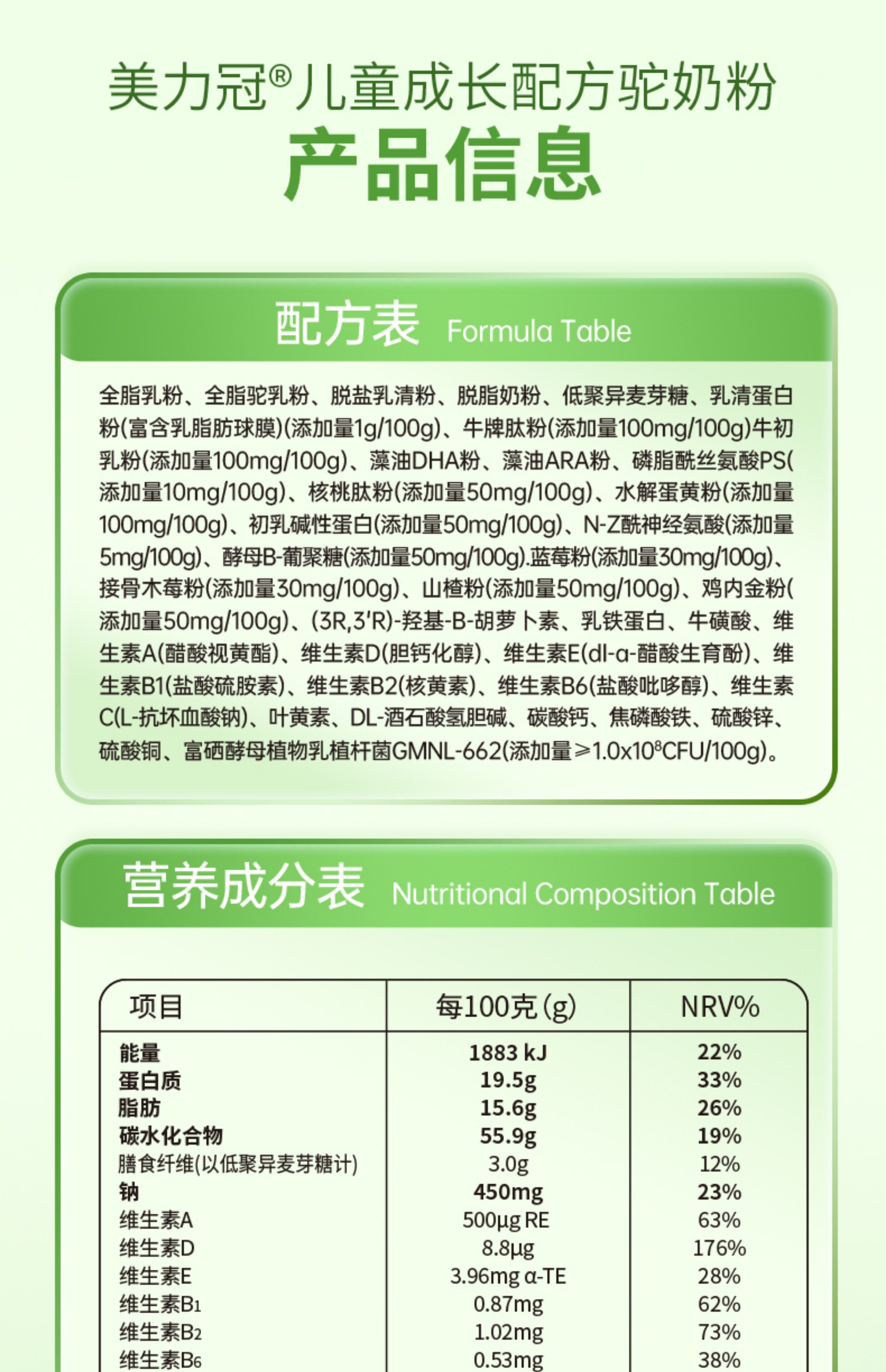 美力冠驼奶粉美丽冠驼奶粉 儿童成长配方驼奶粉 官方正品