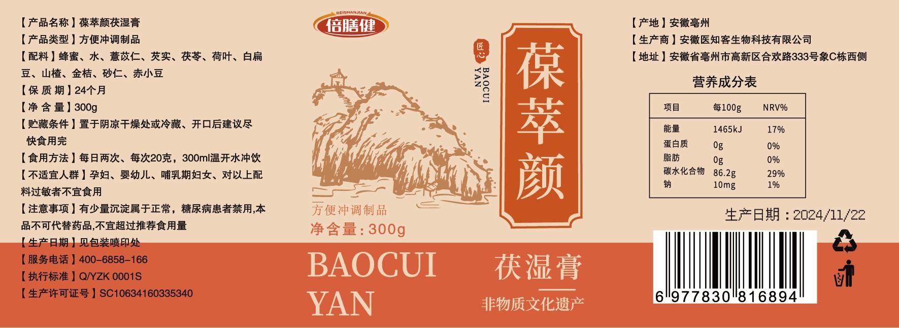 【旗舰正品】葆萃颜茯湿膏薏苡仁茯苓芡实甄选原料方便冲饮300g/瓶