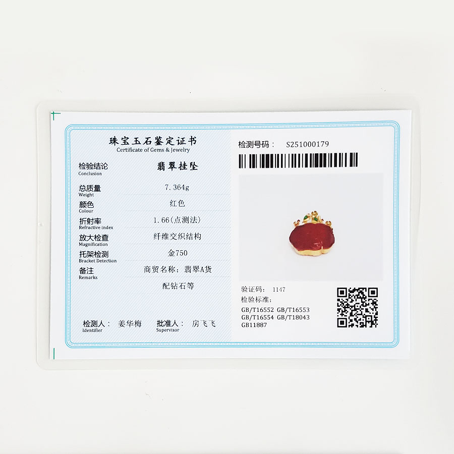 【天然正品】A货翡翠AU750精品黄金镶钻天然细腻花朵造型冰种红翡吊坠项链 链长:45CM(长度可调节)女士051025NJ24现售价:7880