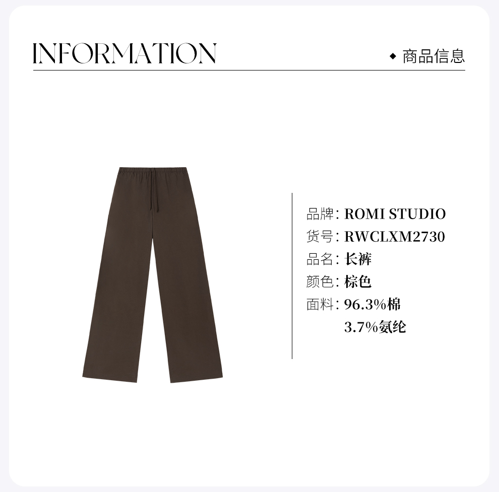 ROMI STUDIO“简约随性”轻薄干爽棉质松紧腰直筒休闲裤 RWCLXM2730