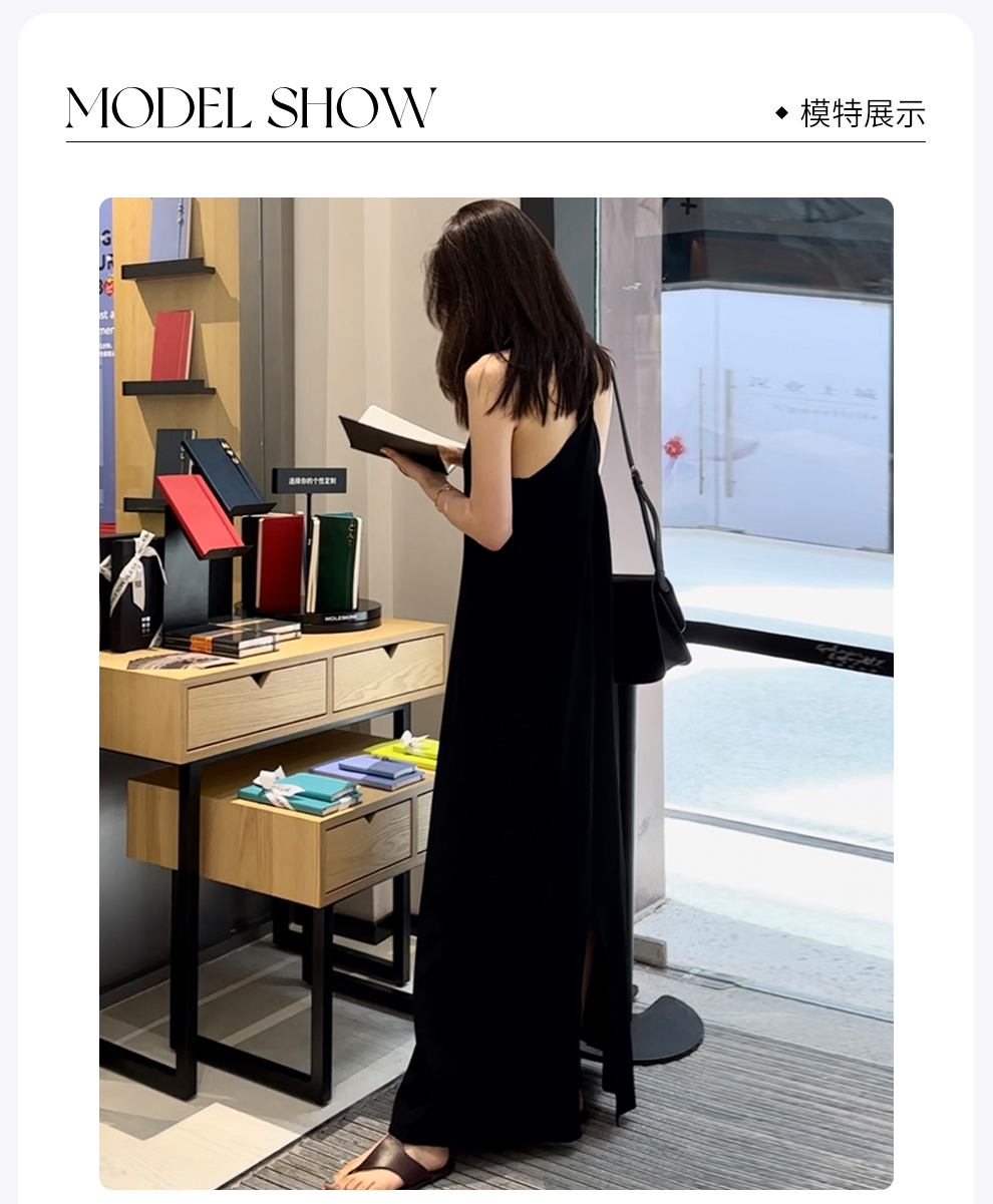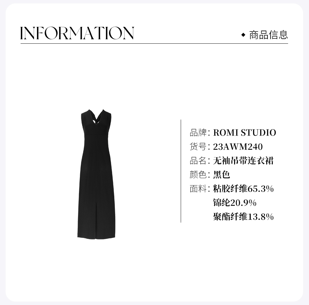 ROMI STUDIO“轻礼服”法式V领三穿款无袖吊带开叉连衣裙 23AWM240