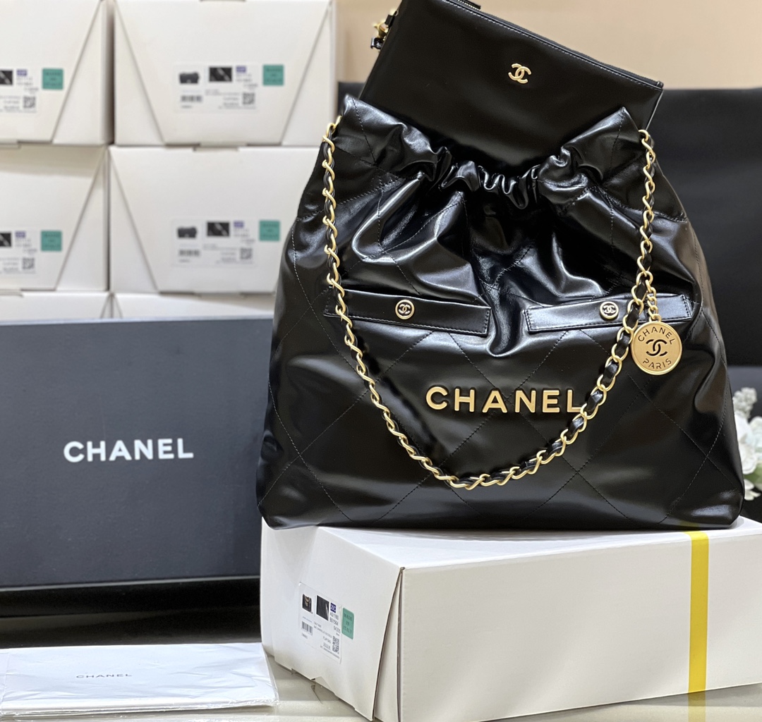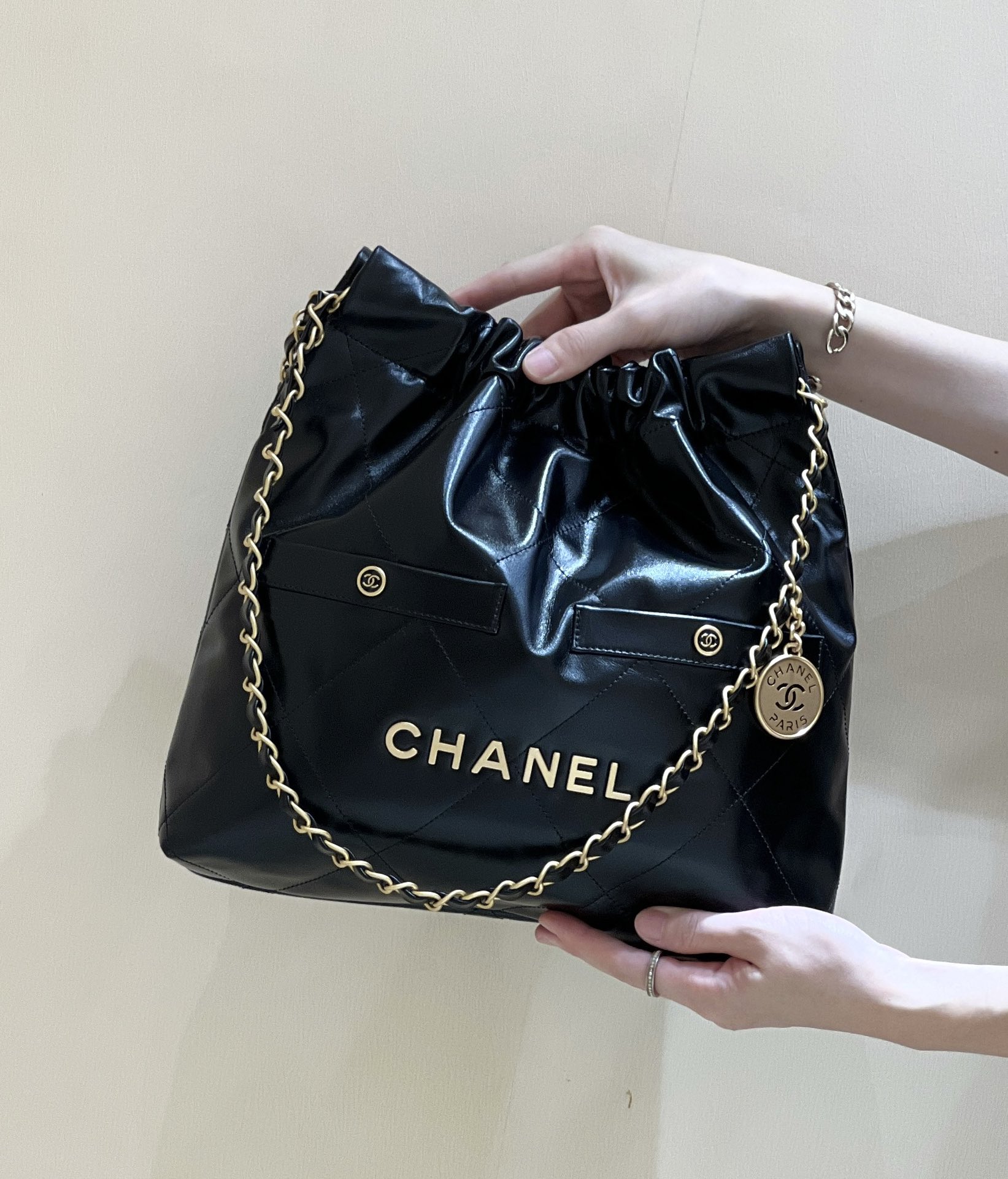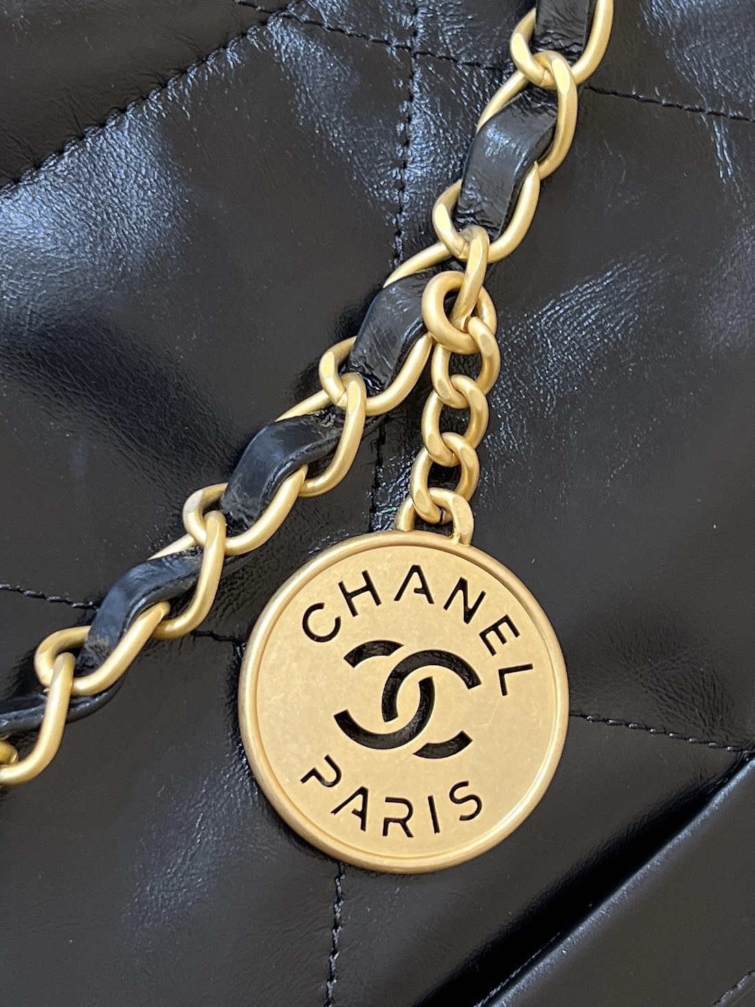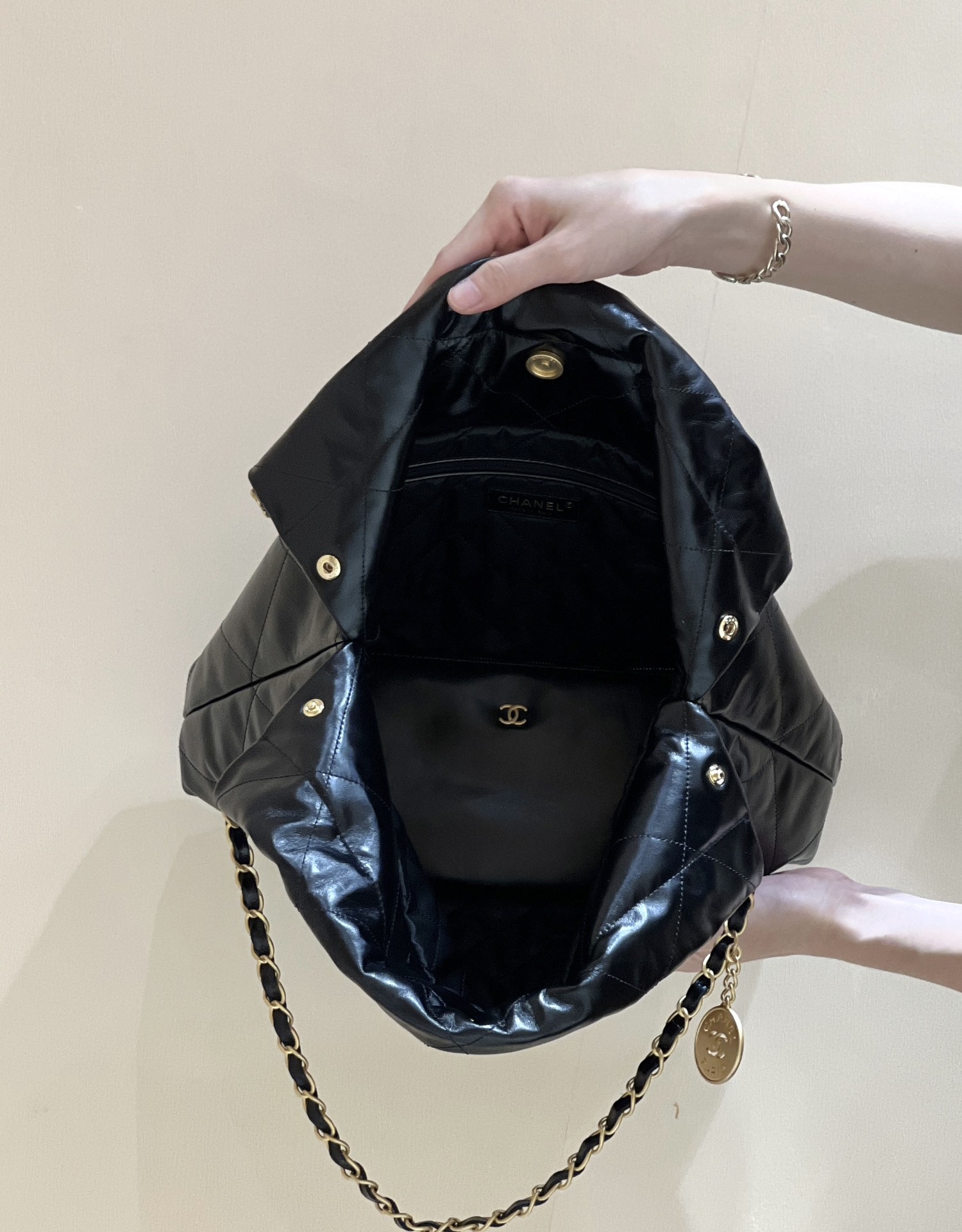 当时图出来我就知道这只“垃圾袋”有着不一样的含义,毕竟它是有纯数字命名的贵族!这只22的材质是牛皮做的,用牛皮做出这种慵懒的感觉是最适合的,而且也非常好打理不像大家一开始以为的那样是羊皮娇气~外形上:没有人能逃出黑金的香奶奶logo,经典的皮穿链点缀着一枚复古的金色钱币更加体现乖巧!里面有一个可拆卸的小包袋可以用来装一些零散的小物件,两侧有磁吸将包口吸上~容量超大超实用!这只包算是香奶奶包里巨百搭的款,一定要入手哈[愉快][愉快]