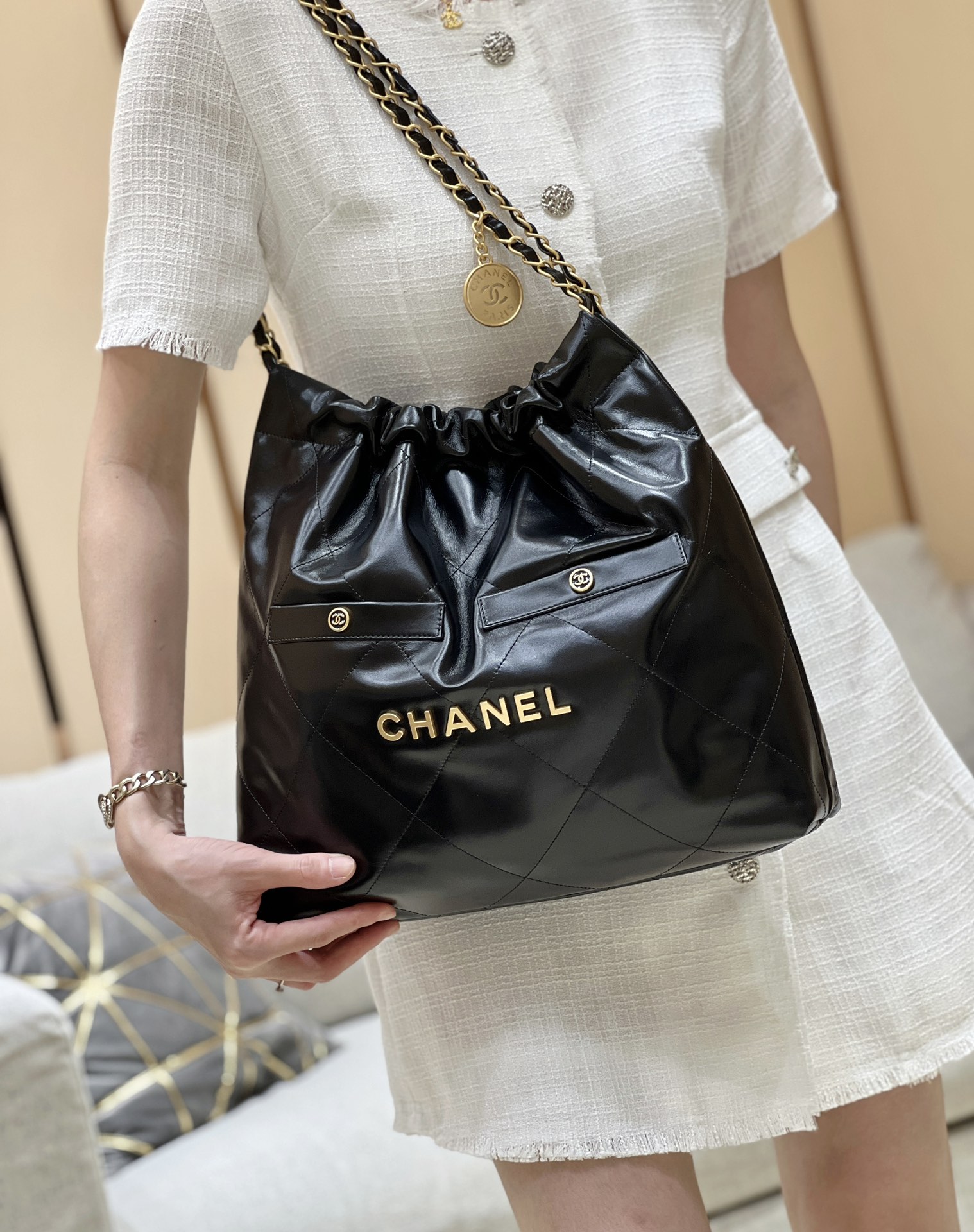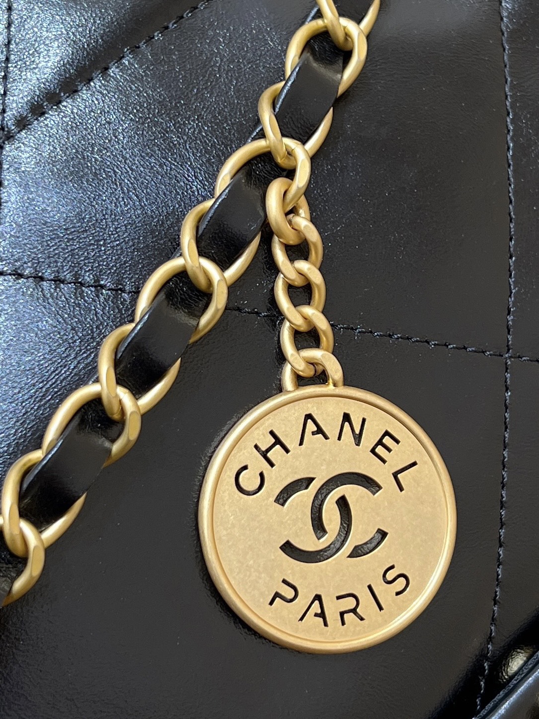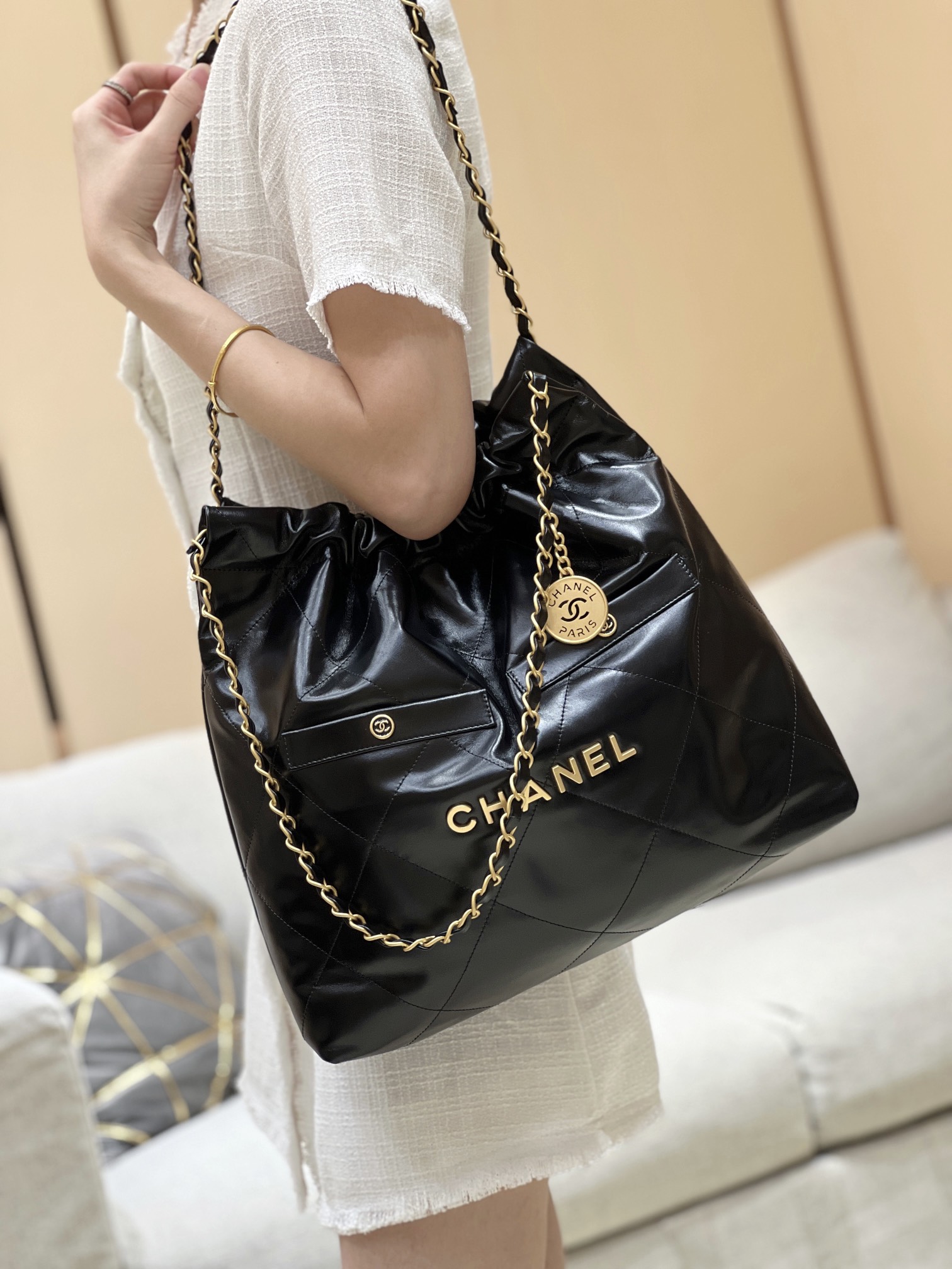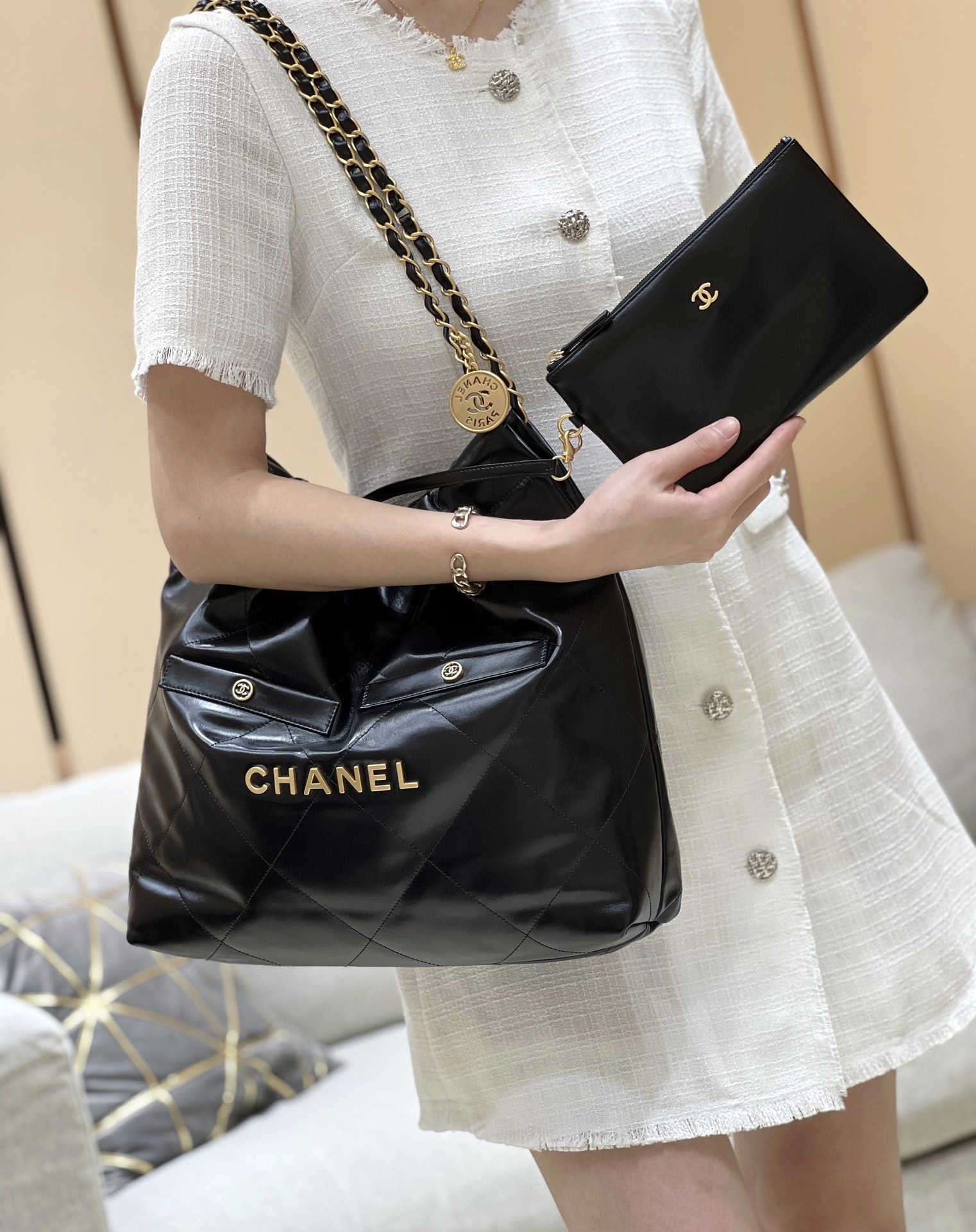 当时图出来我就知道这只“垃圾袋”有着不一样的含义,毕竟它是有纯数字命名的贵族!这只22的材质是牛皮做的,用牛皮做出这种慵懒的感觉是最适合的,而且也非常好打理不像大家一开始以为的那样是羊皮娇气~外形上:没有人能逃出黑金的香奶奶logo,经典的皮穿链点缀着一枚复古的金色钱币更加体现乖巧!里面有一个可拆卸的小包袋可以用来装一些零散的小物件,两侧有磁吸将包口吸上~容量超大超实用!这只包算是香奶奶包里巨百搭的款,一定要入手哈[愉快][愉快]
