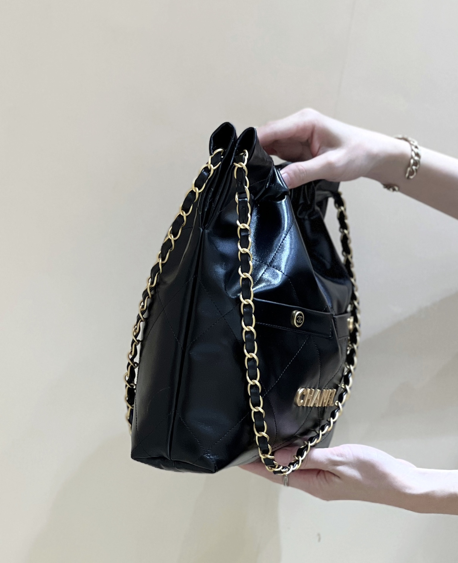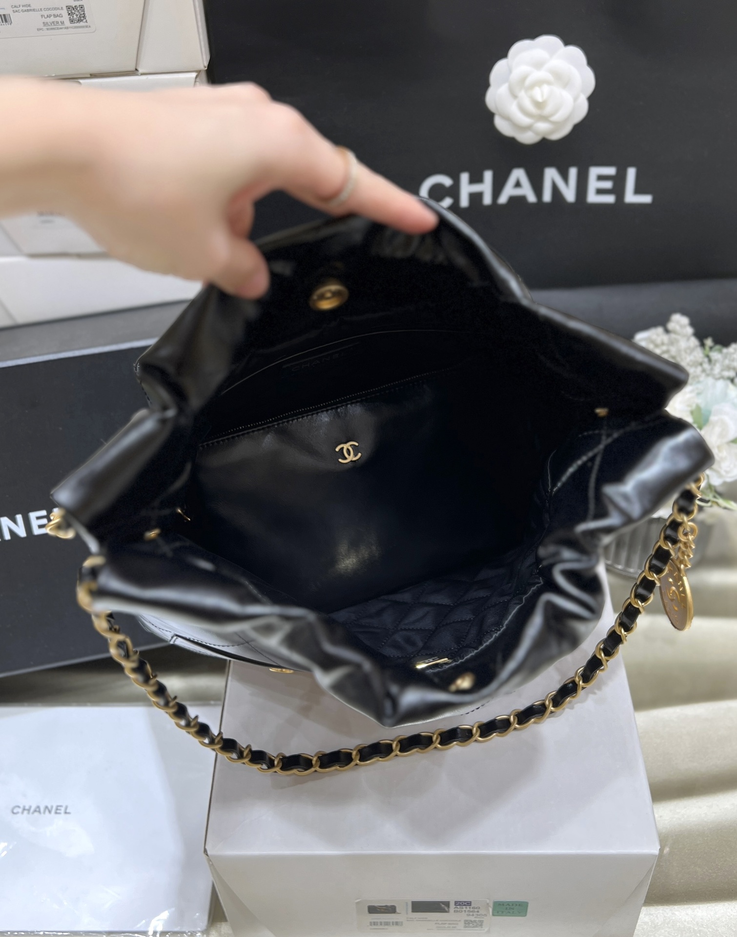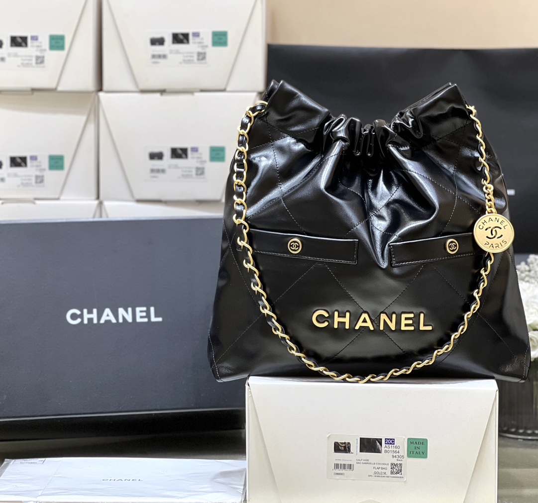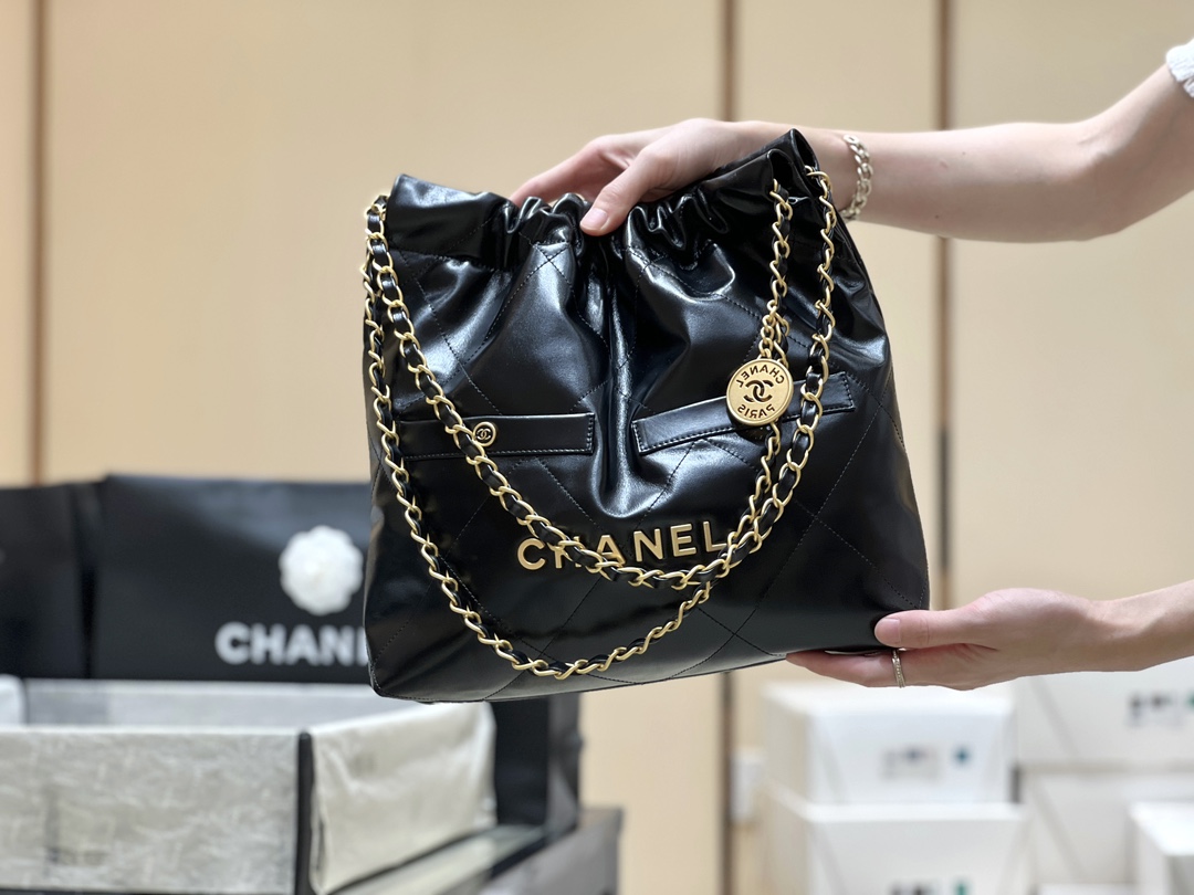 当时图出来我就知道这只“垃圾袋”有着不一样的含义,毕竟它是有纯数字命名的贵族!这只22的材质是牛皮做的,用牛皮做出这种慵懒的感觉是最适合的,而且也非常好打理不像大家一开始以为的那样是羊皮娇气~外形上:没有人能逃出黑金的香奶奶logo,经典的皮穿链点缀着一枚复古的金色钱币更加体现乖巧!里面有一个可拆卸的小包袋可以用来装一些零散的小物件,两侧有磁吸将包口吸上~容量超大超实用!这只包算是香奶奶包里巨百搭的款,一定要入手哈[愉快][愉快]