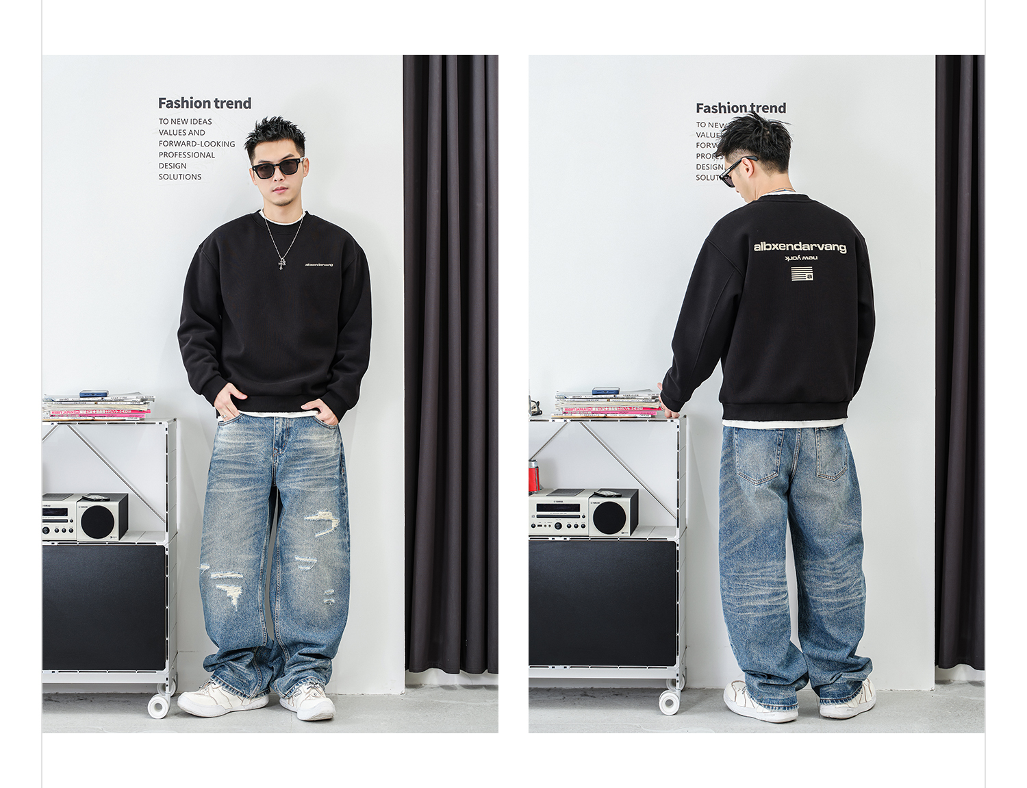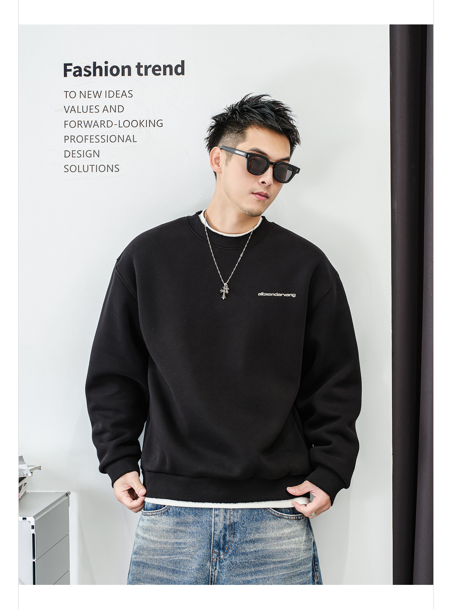 徐太浪【时尚帅气 字母印花】加绒卫衣男秋冬2025新款打底衫上衣